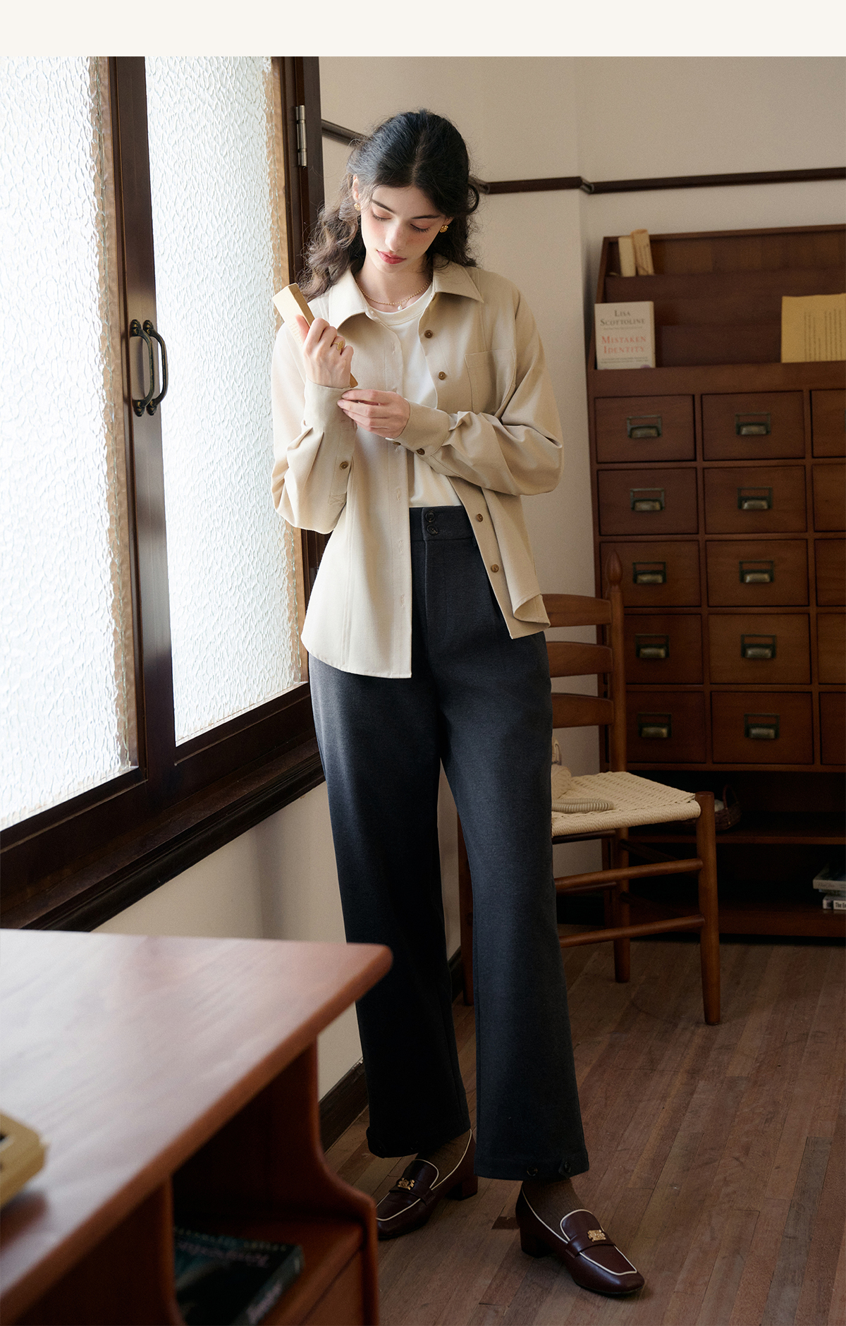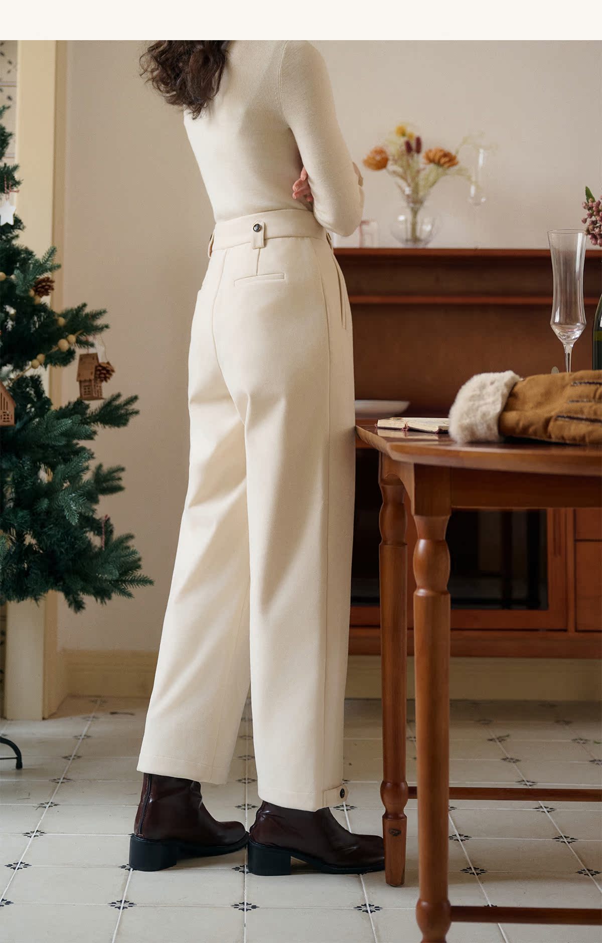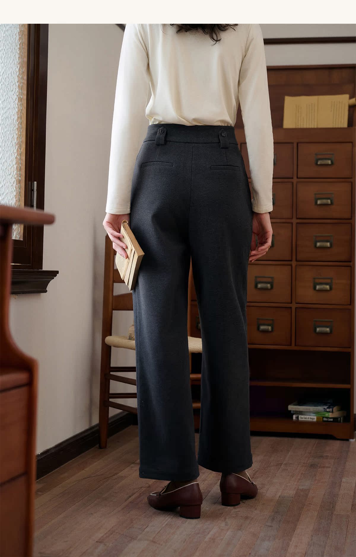 Simpleretro Classic Versatile Straight-Leg Cropped Casual Pants for Women Thick Trousers
