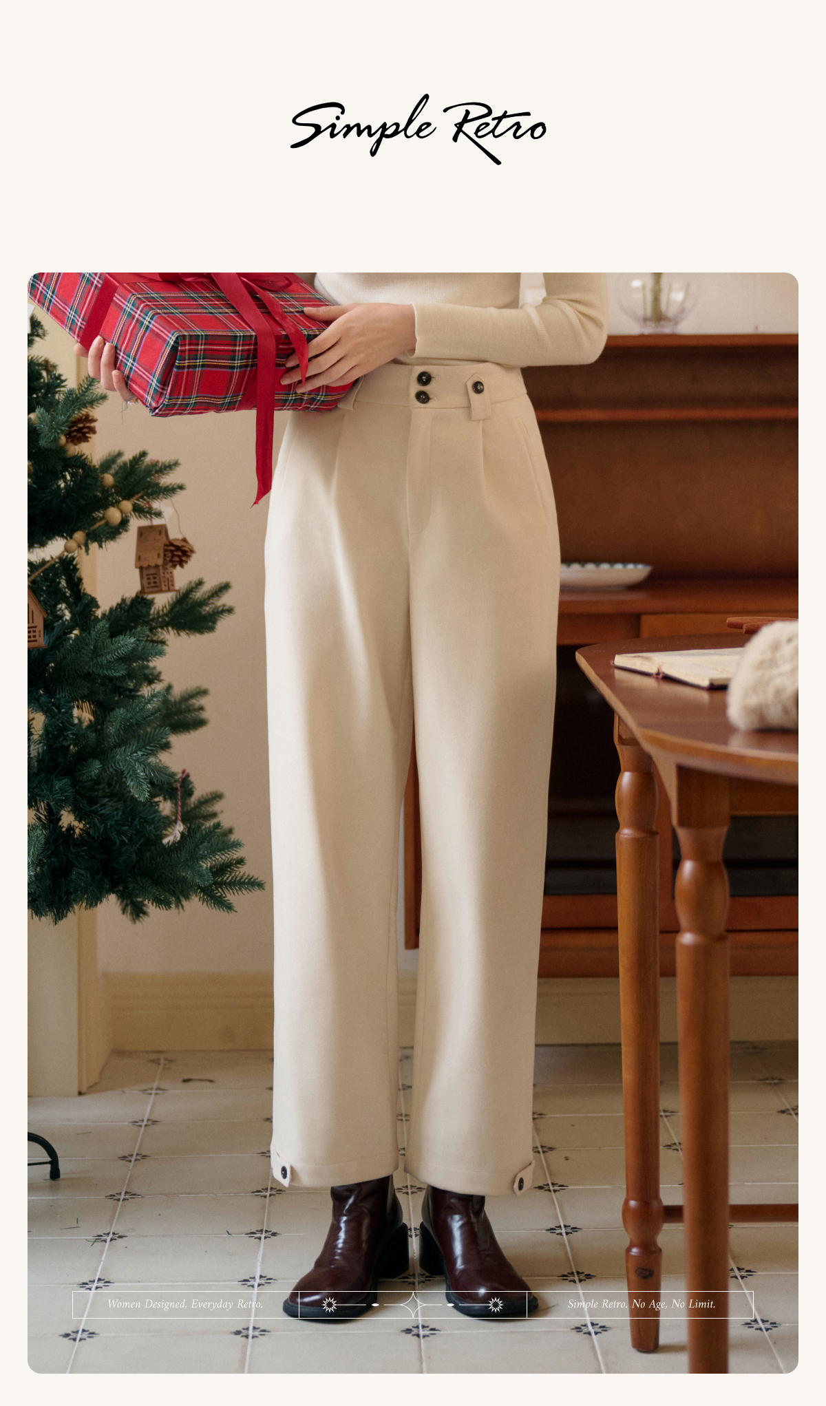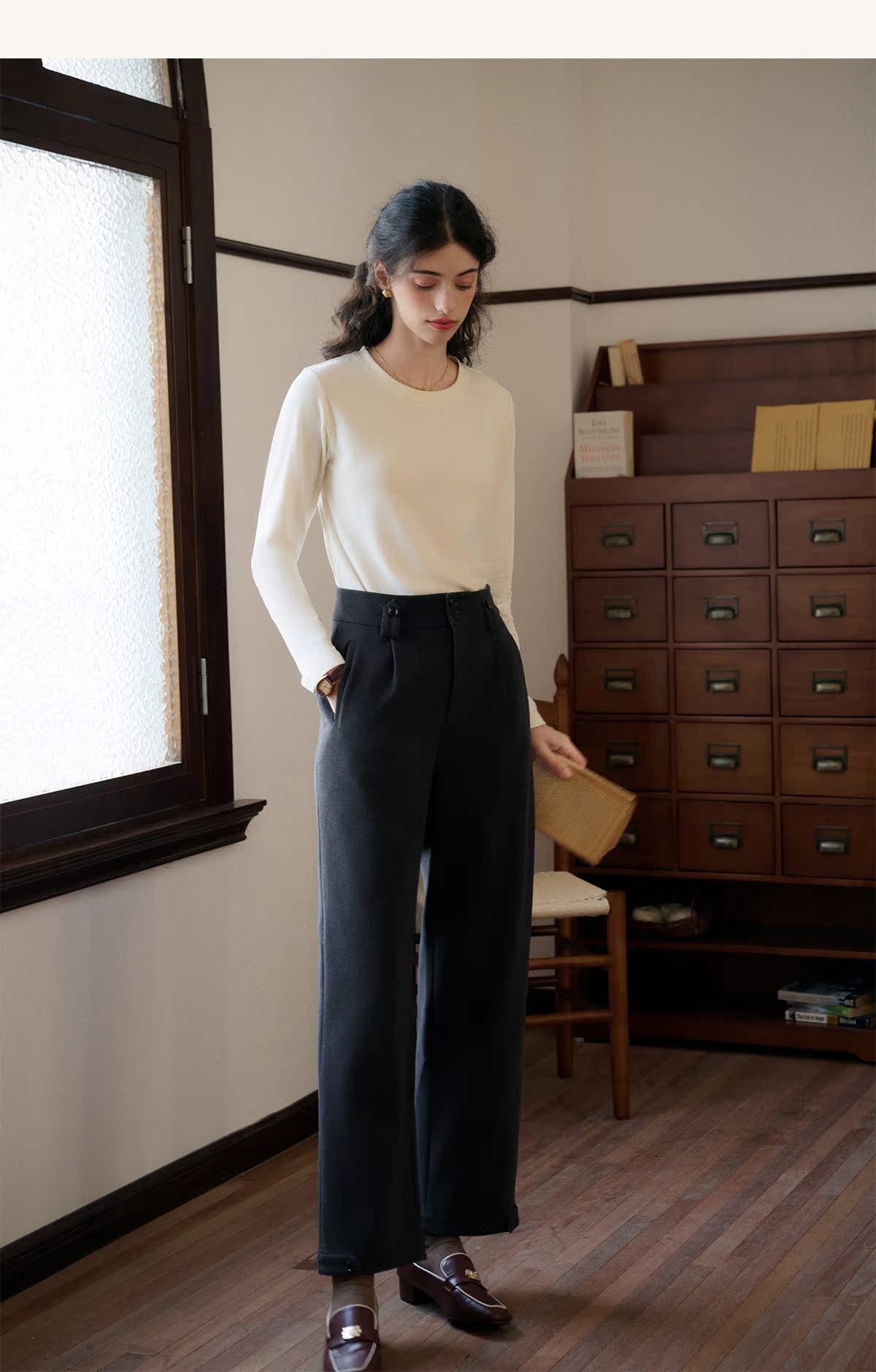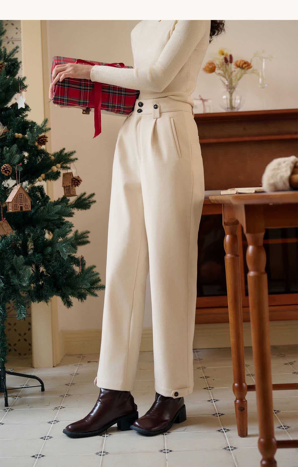 Simpleretro Classic Versatile Straight-Leg Cropped Casual Pants for Women Thick Trousers
