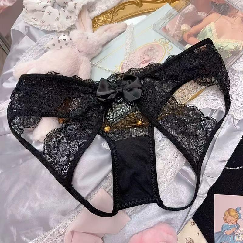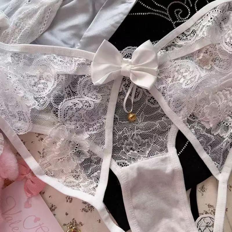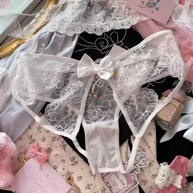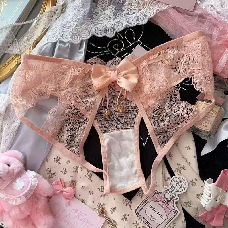 Japanese Style Pure and Sexy Hot Lace Hollow-Out Panties for Women with Unique Bell Design, Open Crotch, No Need to Take Off, Erotic Toy, Short and Breathable