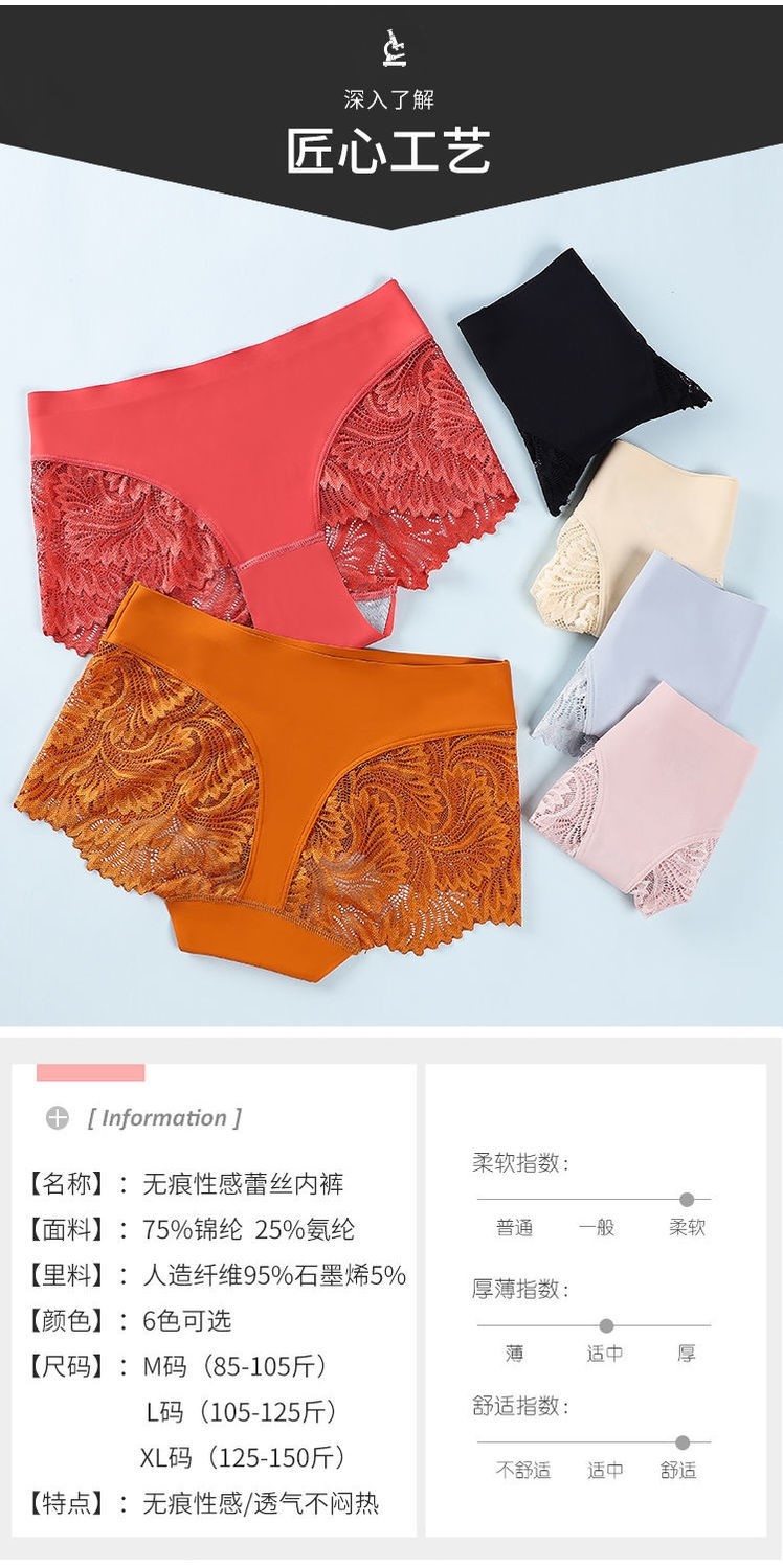 Lace Panties for Women, Pure Cotton, Seamless, Ice Silk, All-Cotton, Summer Thin Style, Sexy, Plus Size, Fat mm Panties