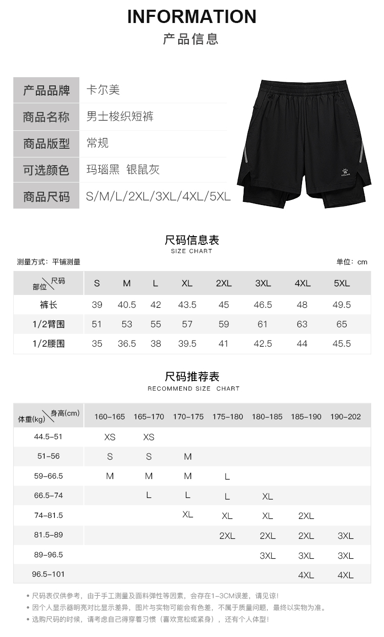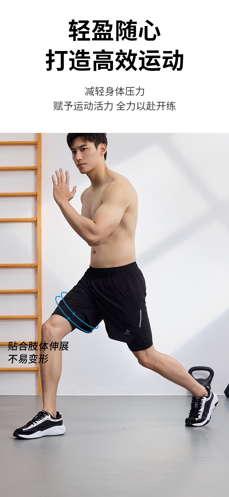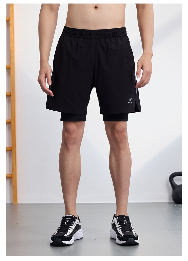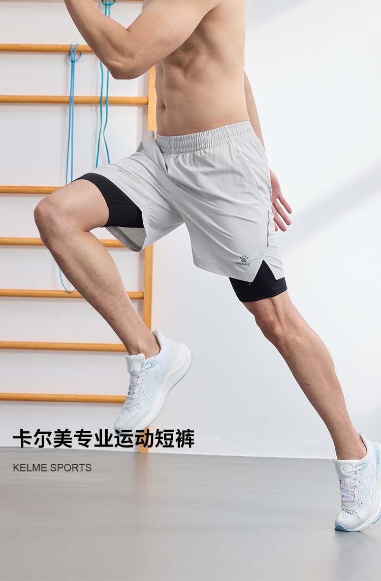 Kelme Fitness Training Sports Pants for Men 2025 Summer Quick-Drying Woven Running Fake Two-Piece Five-Point Shorts