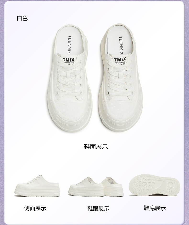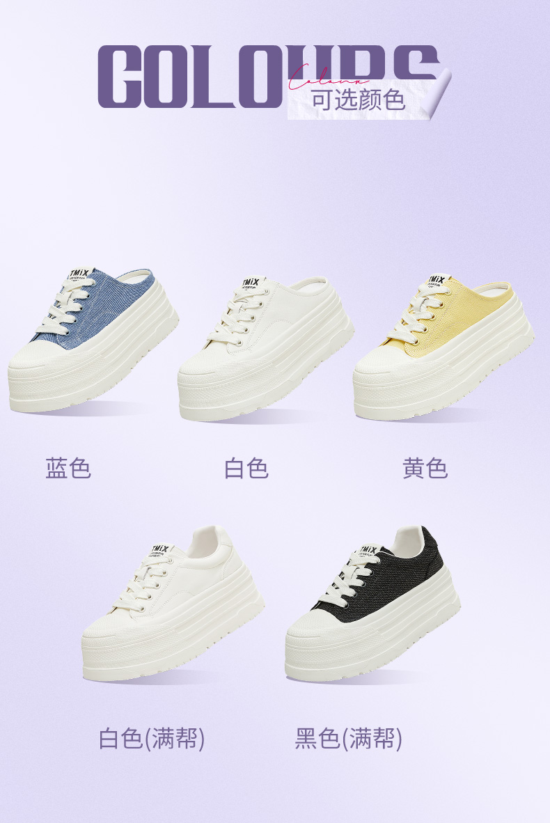 Tianmeiyi Thousand-Layer Cake Thick-Soled Canvas Closed-Toe Half-Slippers for Women, Outdoor Wear, Sandals, White Shoes, 2025 New Model