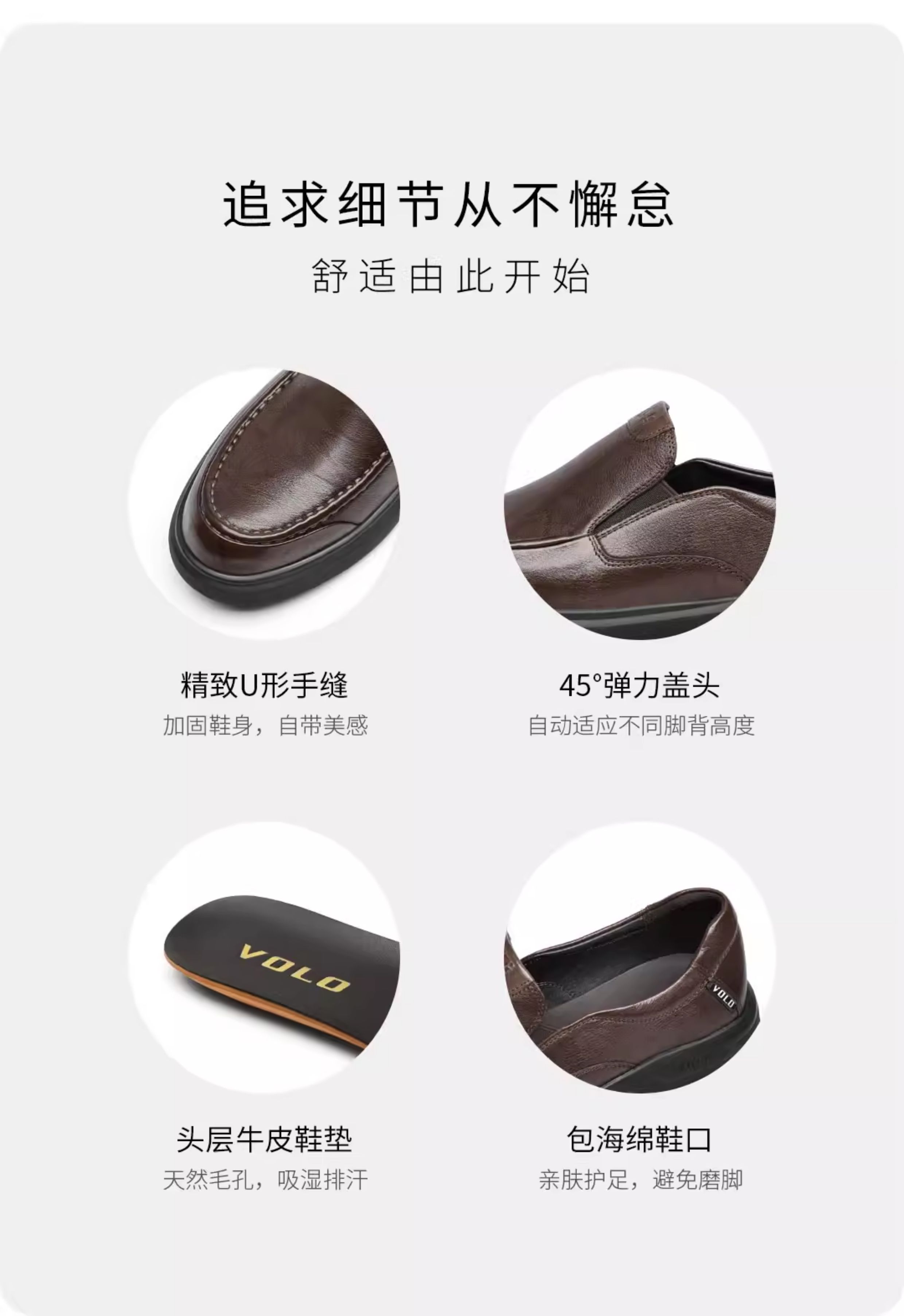 Volo Rhino Men's Casual Leather Shoes, Men's Leather Shoes, Dad Shoes, Autumn Genuine Leather Men's Shoes, Breathable Slip-On Soft Sole