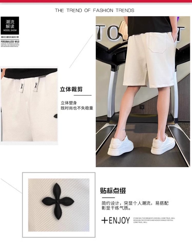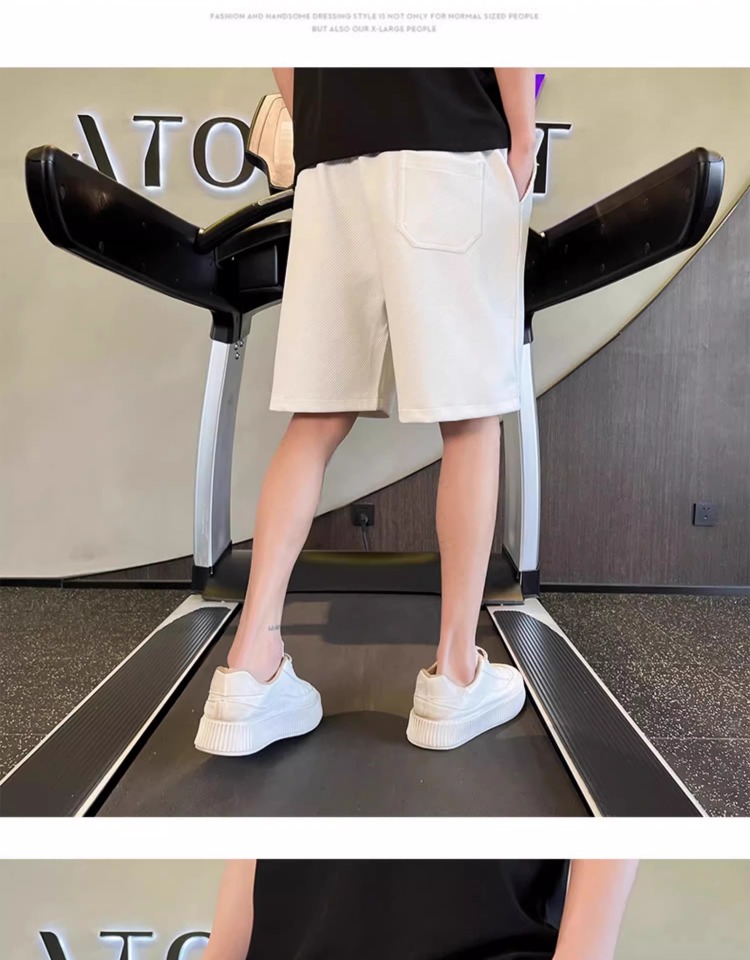Ice Silk Waffle Shorts for Men, 2025 Summer New Style, Casual Straight-Leg Sports Shorts, Men's Five-Point Pants