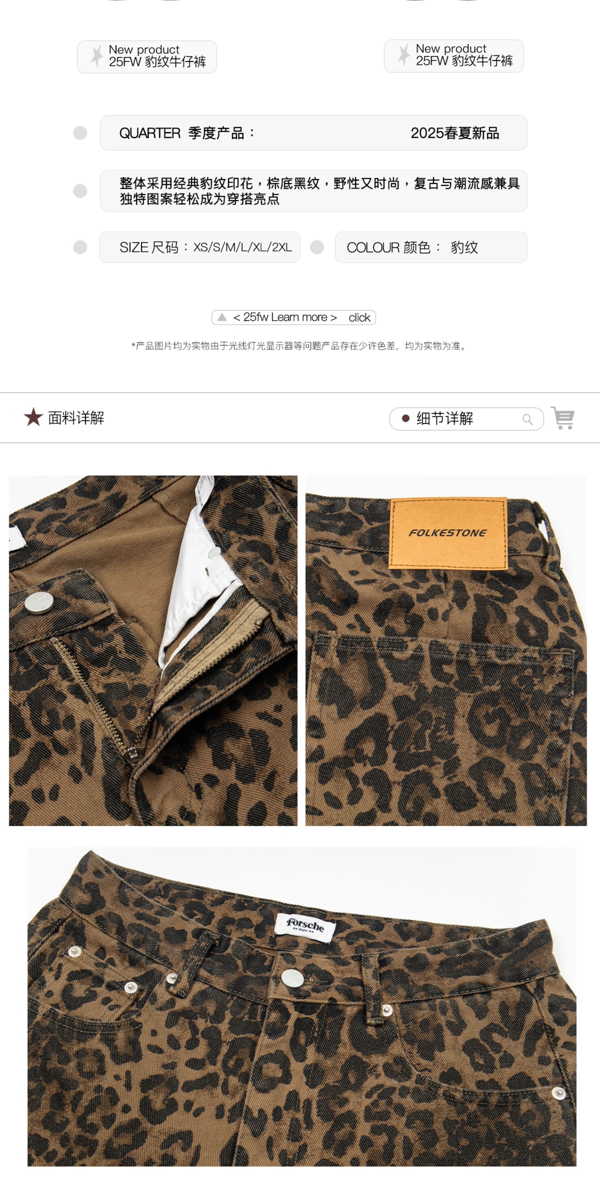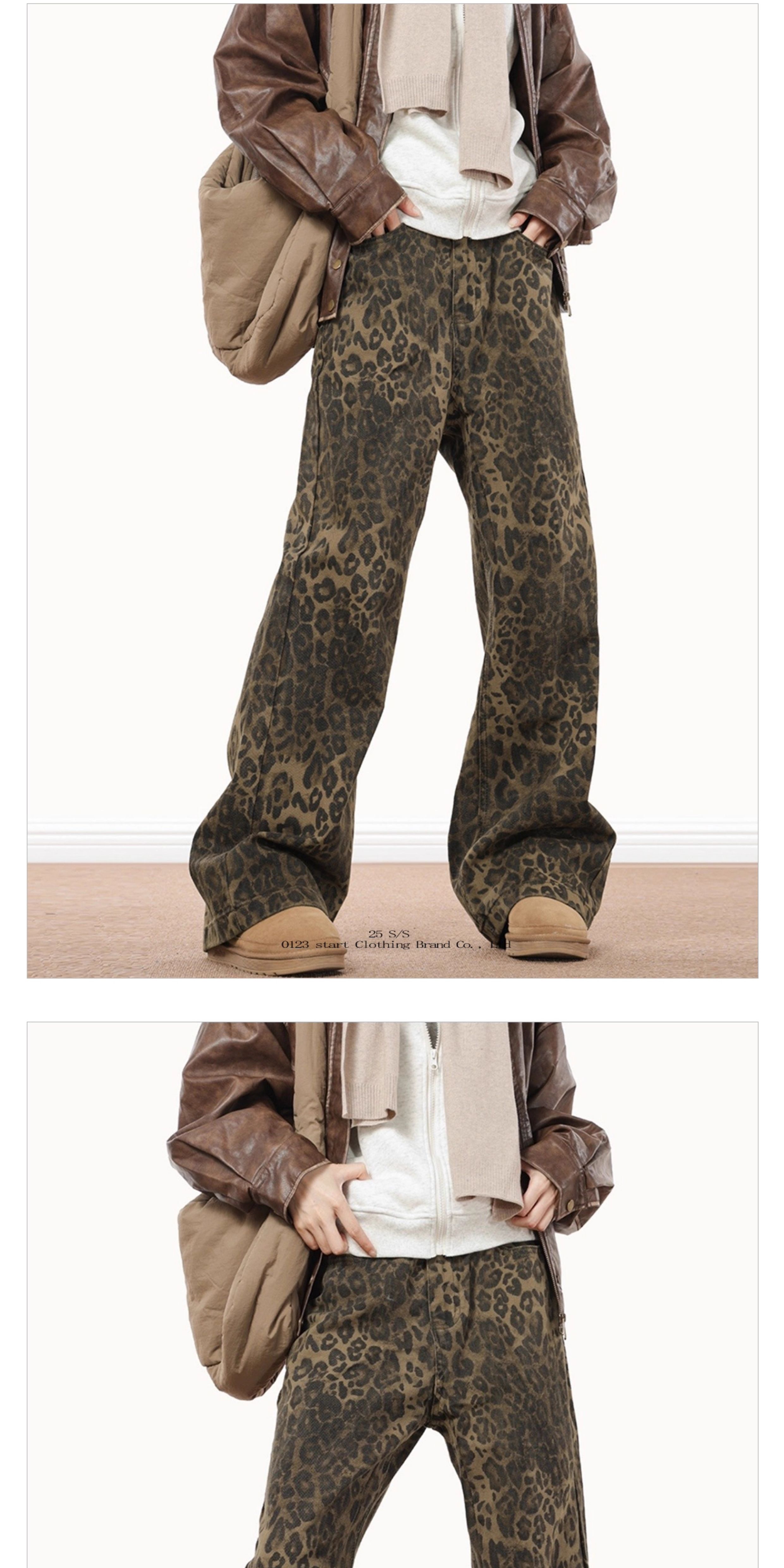 0123Start American Retro Niche Leopard Print Jeans Unisex Loose Trendy Hip-Hop Street Dance Straight-Leg Pants
