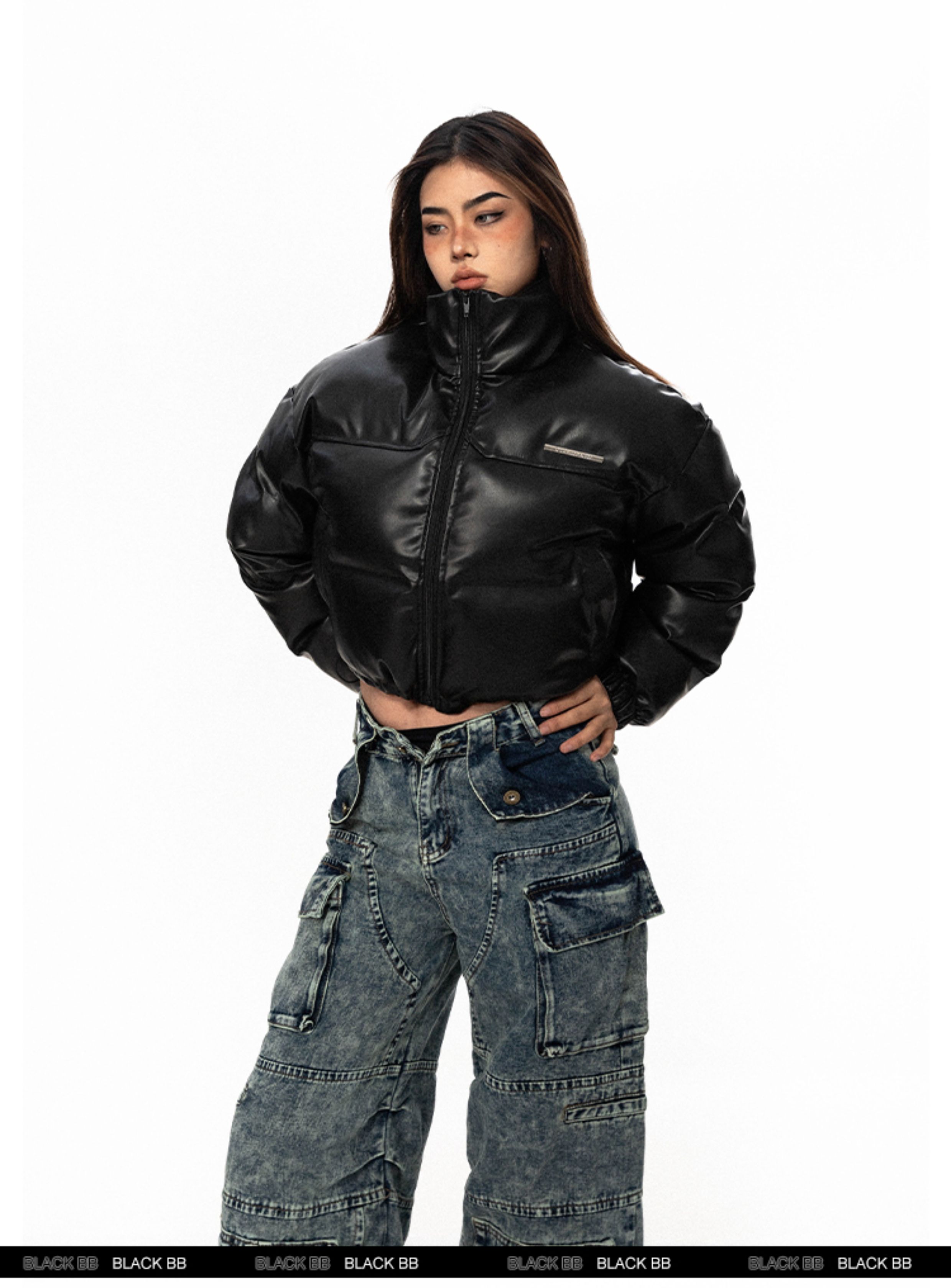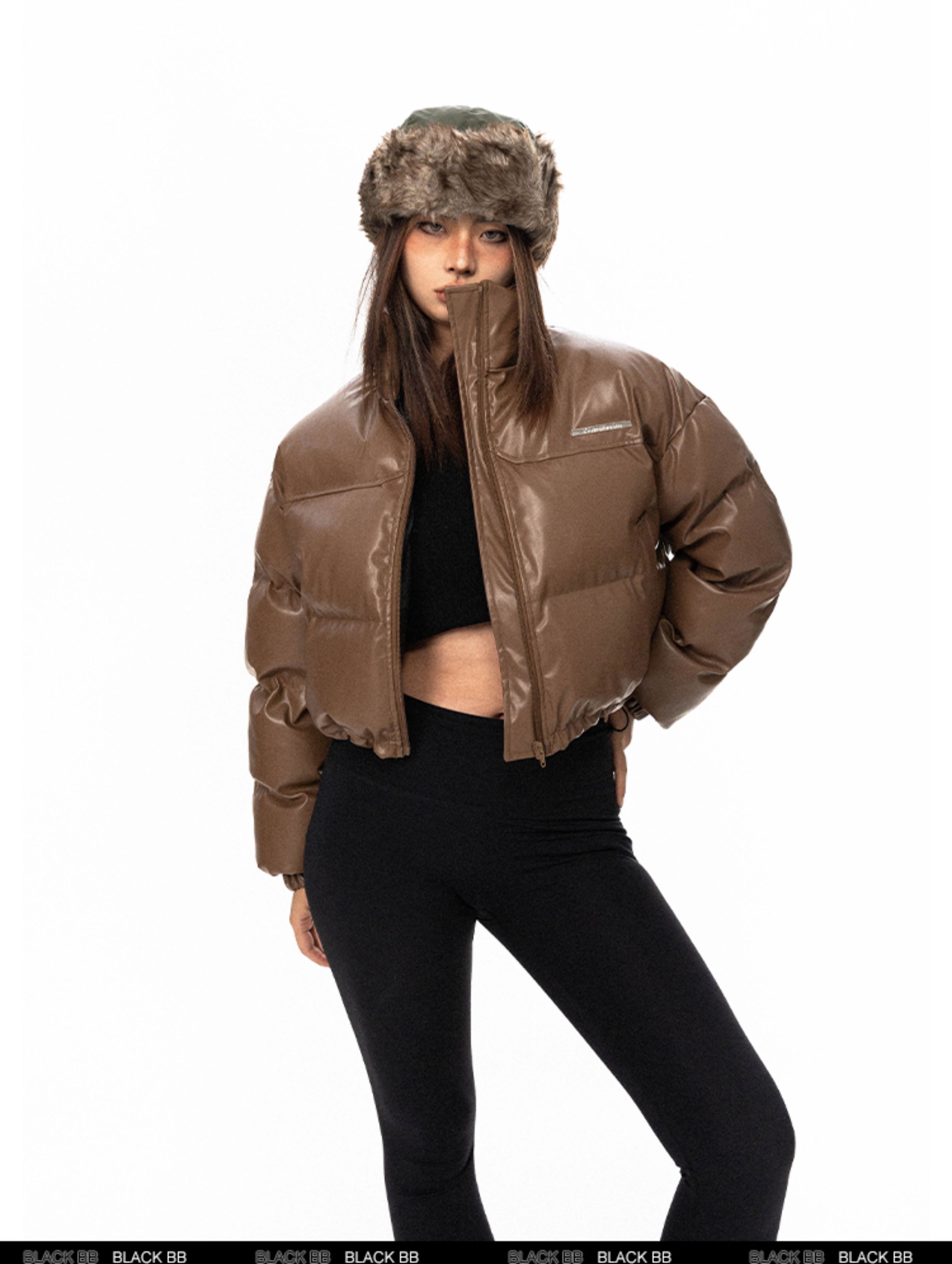 Blackbb/Original Kendall Jenner Style Short Leather Cotton Jacket Winter Warm Thick Stand Collar Trendy Brand Pu Leather Cotton Coat