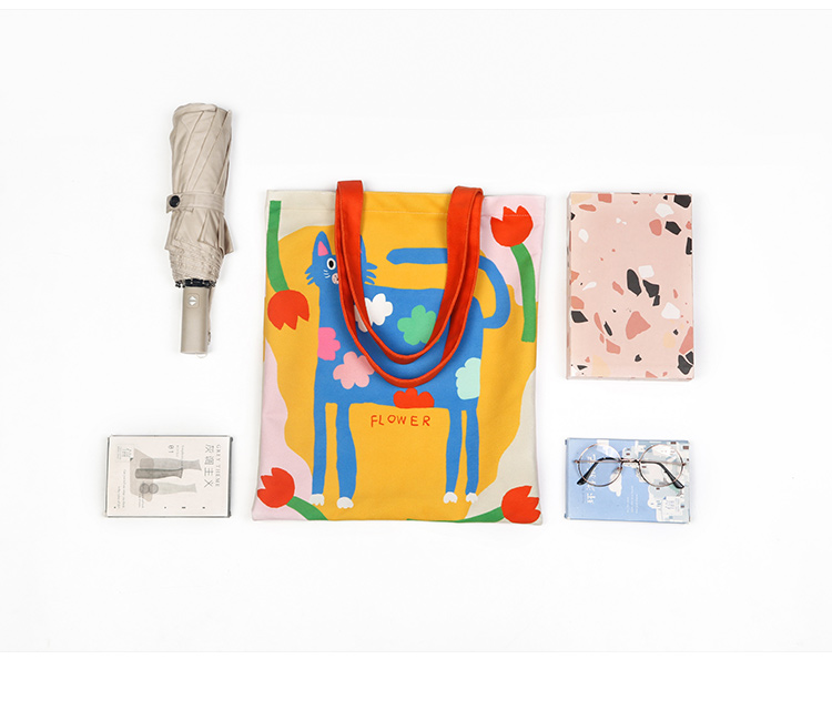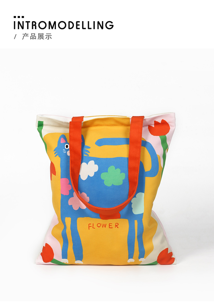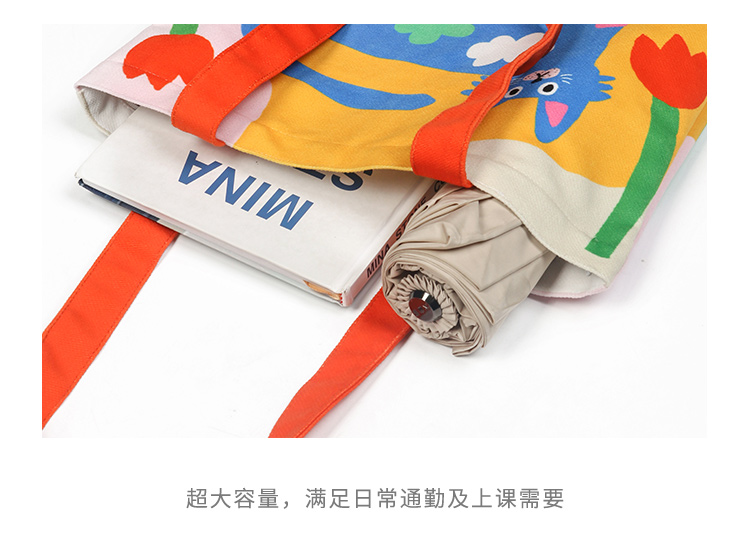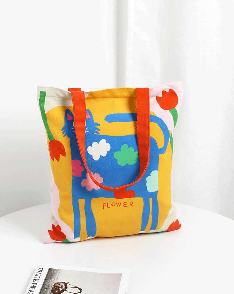 Nirui X Baolu Original Canvas Bag Cute Cat Shoulder Bag Women's Large Capacity Zipper Shopping Bag Handbag