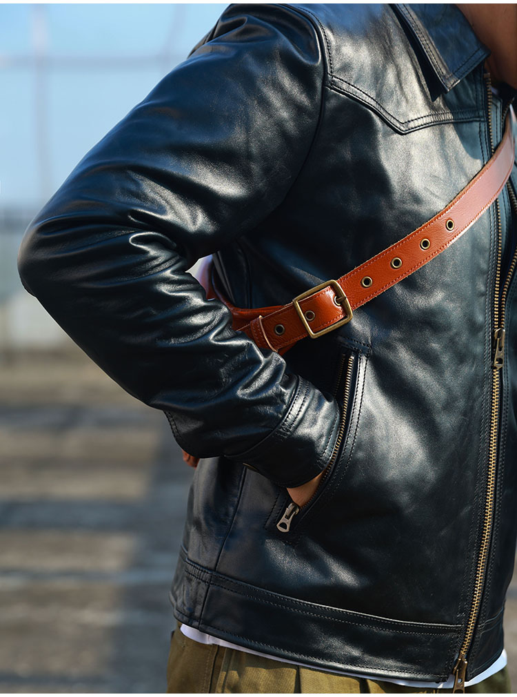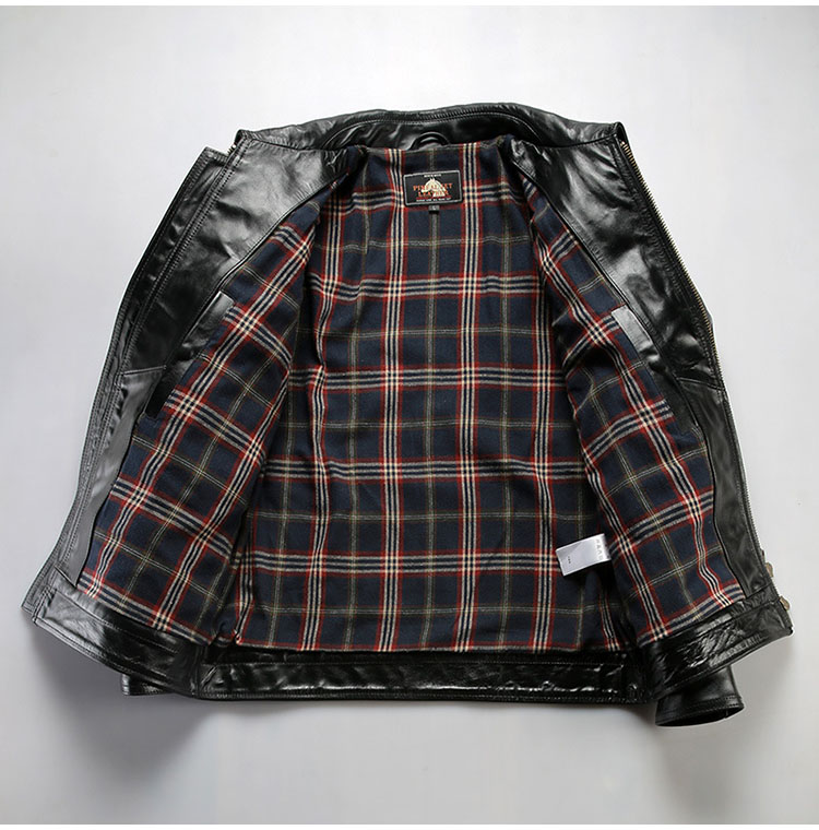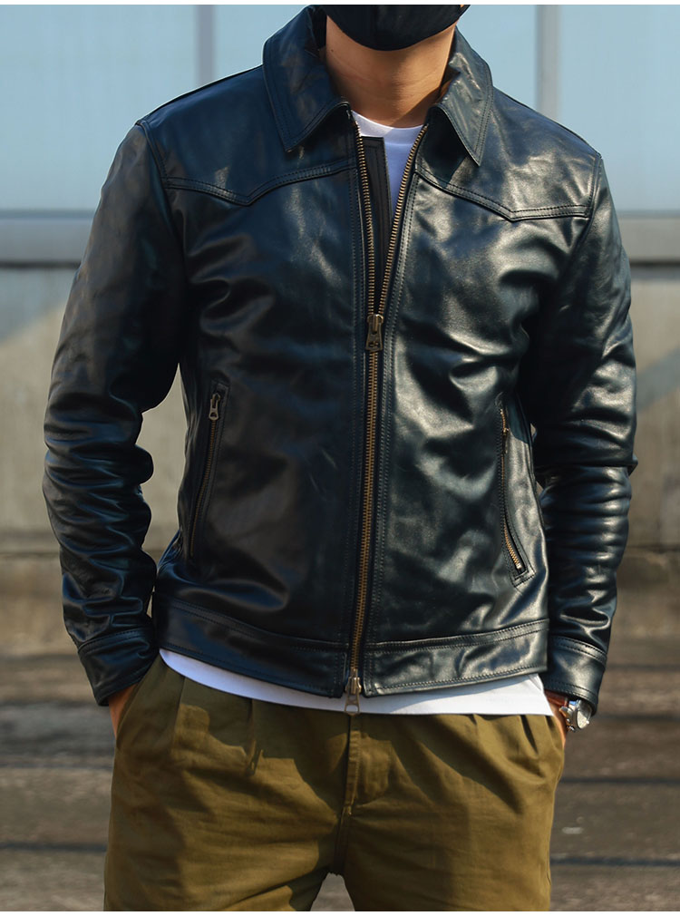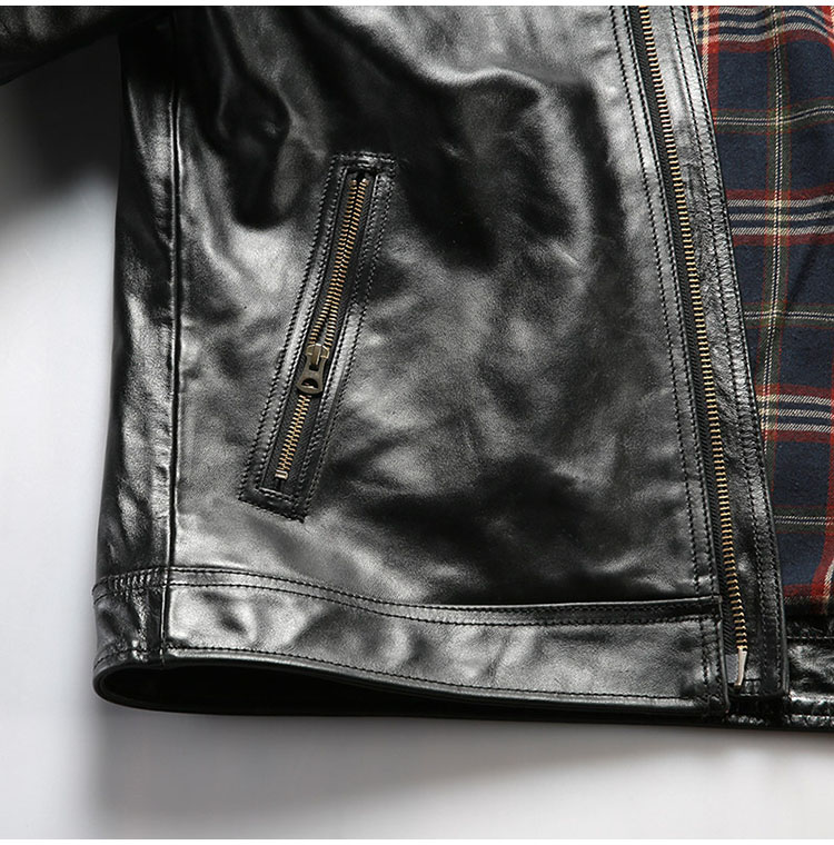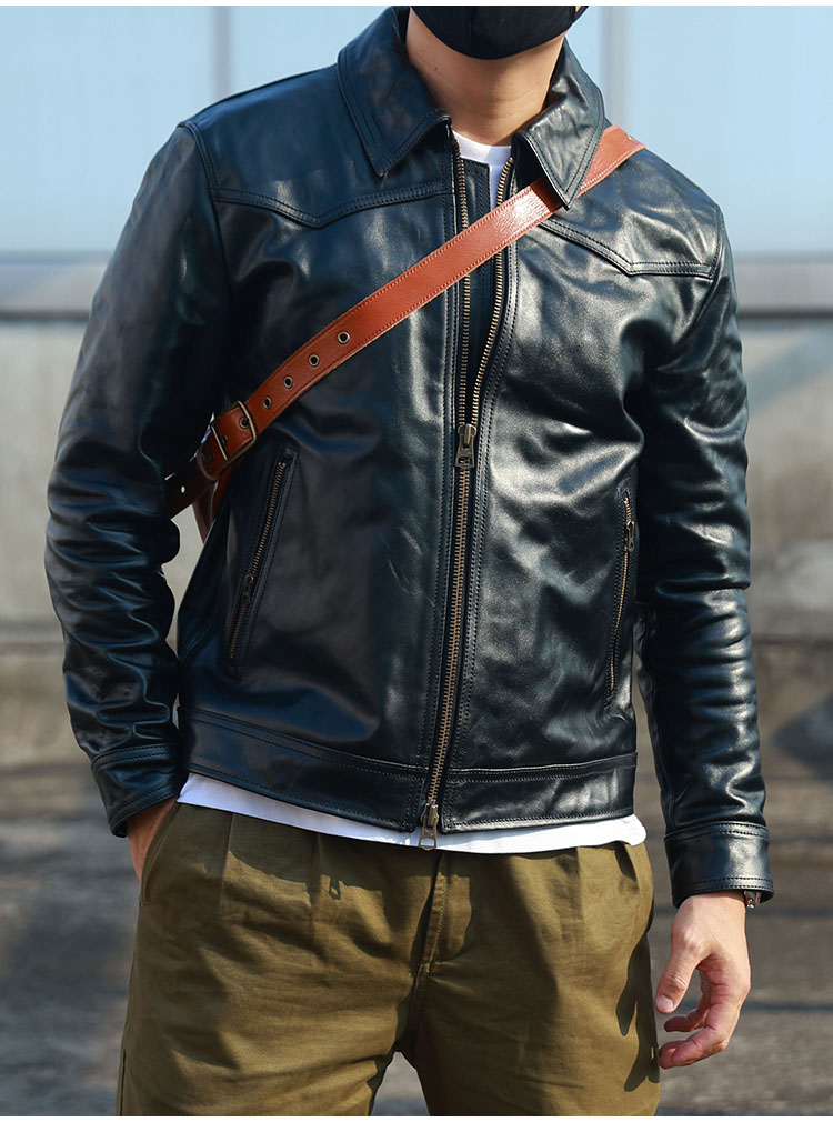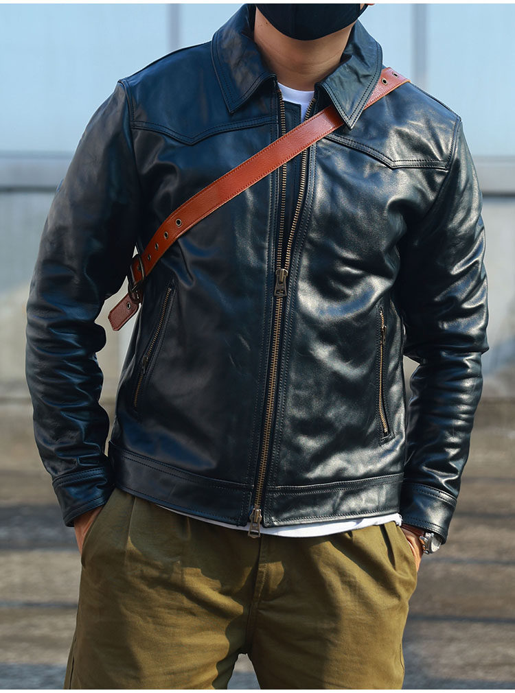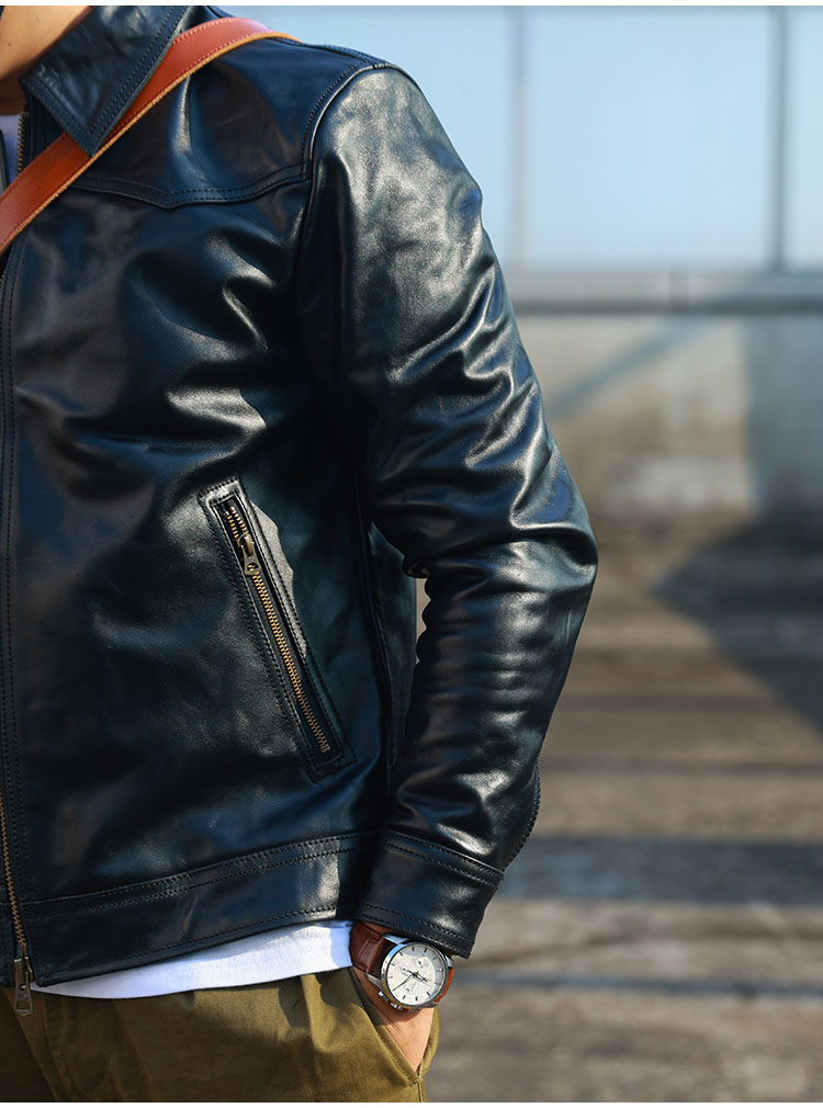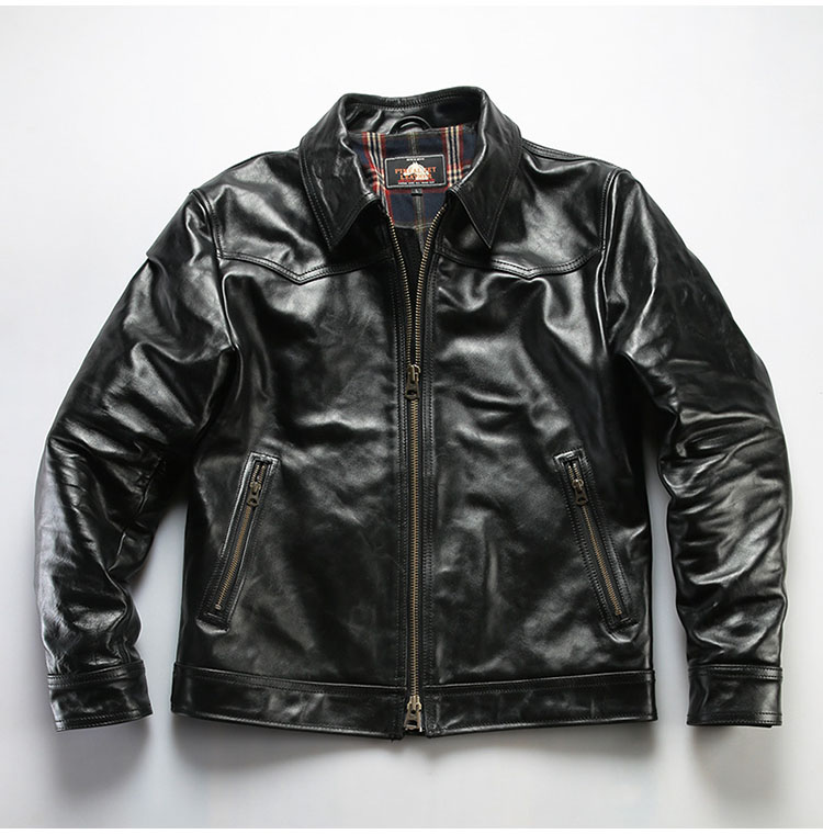 Retro Rrl 1.2mm Oil Wax Tea Core Horse Leather Lapel Slim Short Motorcycle Leather Jacket Men's Genuine Leather Jacket