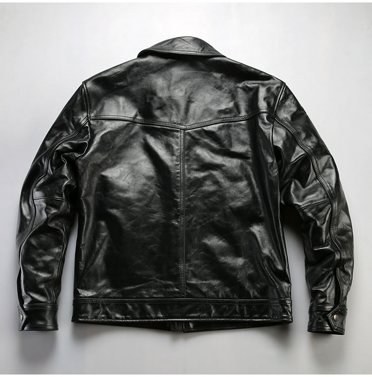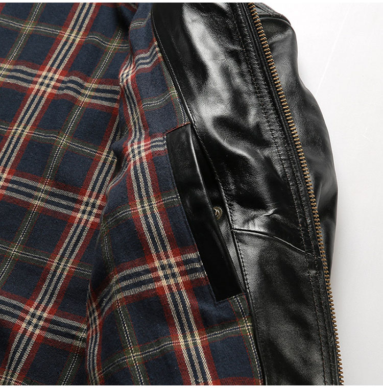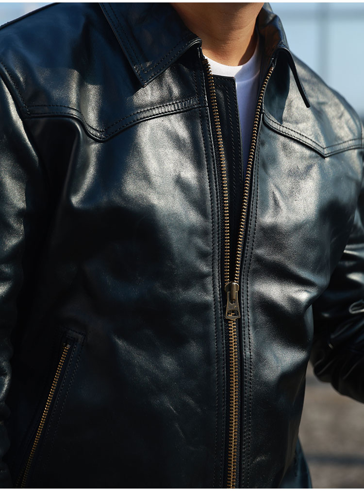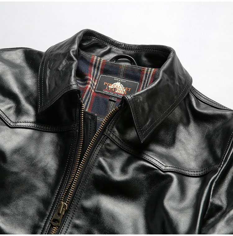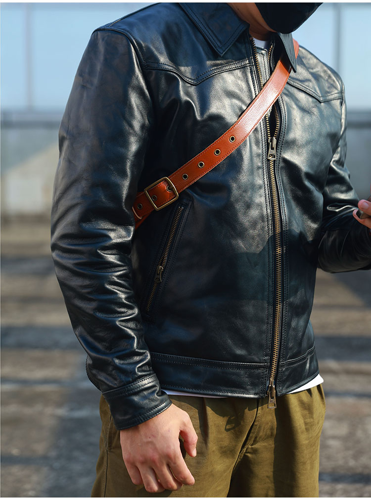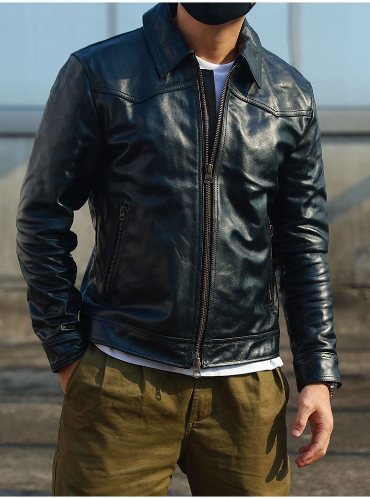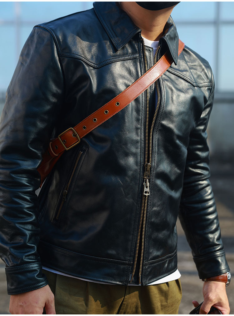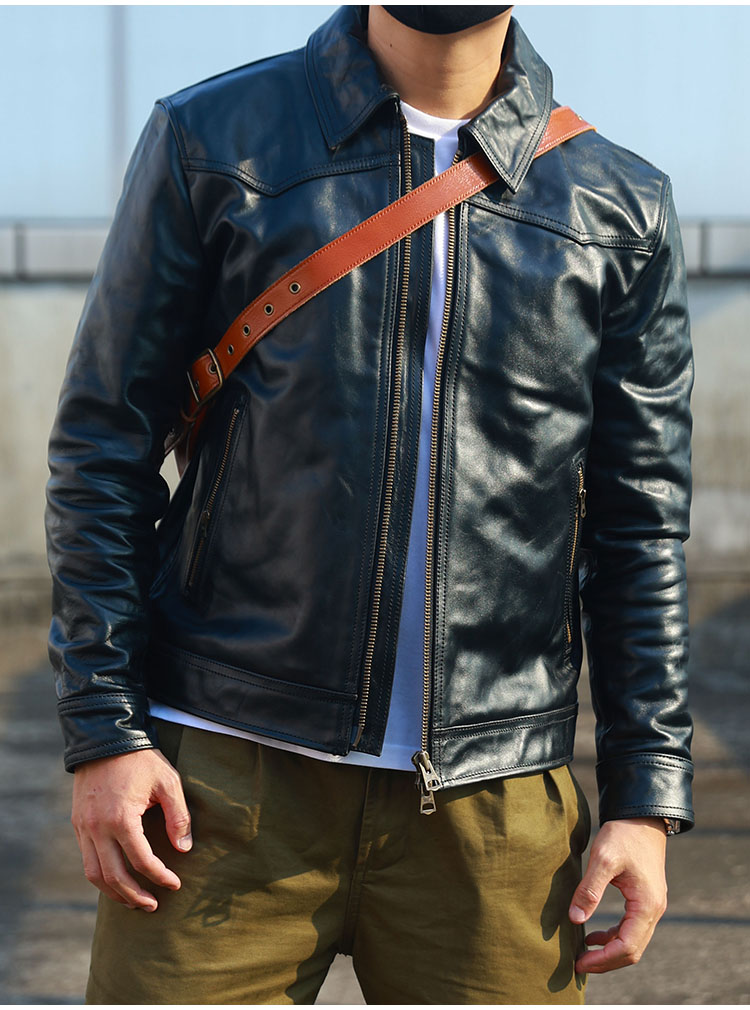 Retro Rrl 1.2mm Oil Wax Tea Core Horse Leather Lapel Slim Short Motorcycle Leather Jacket Men's Genuine Leather Jacket
