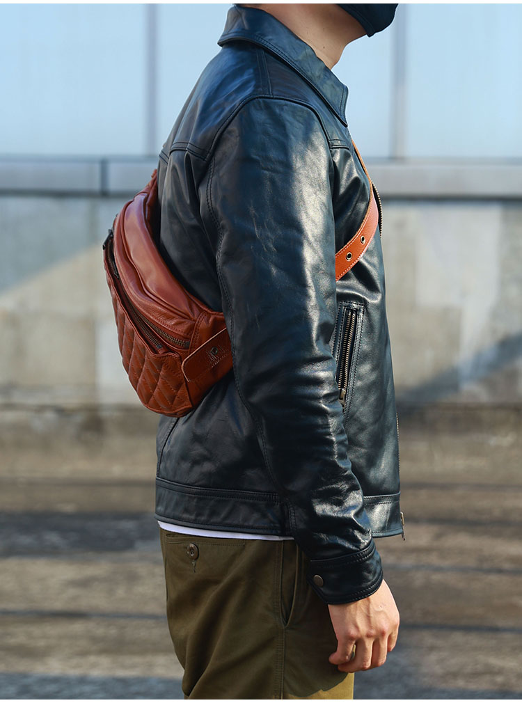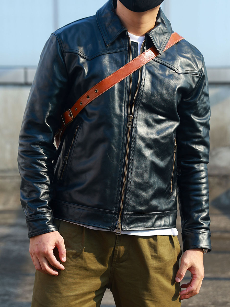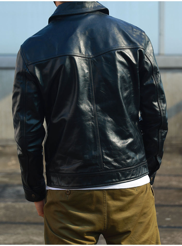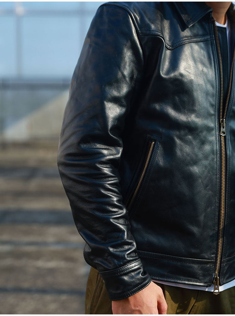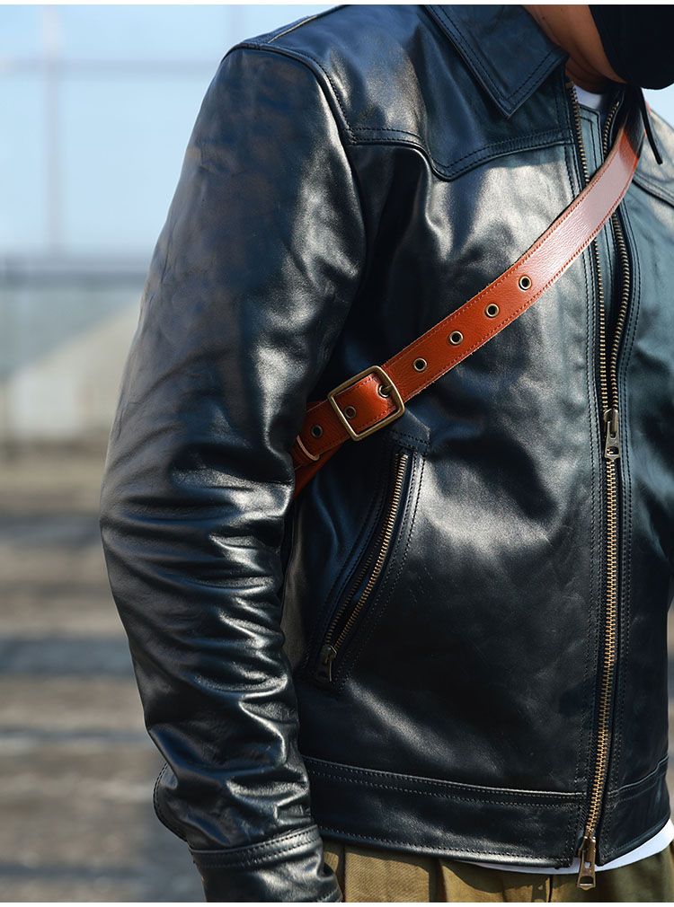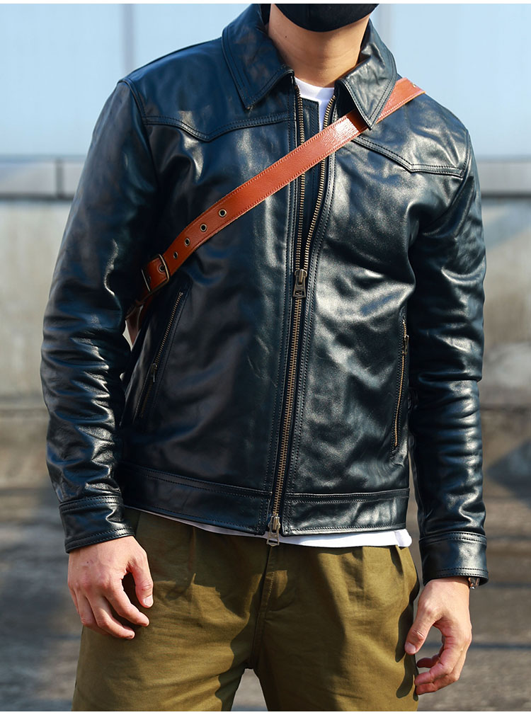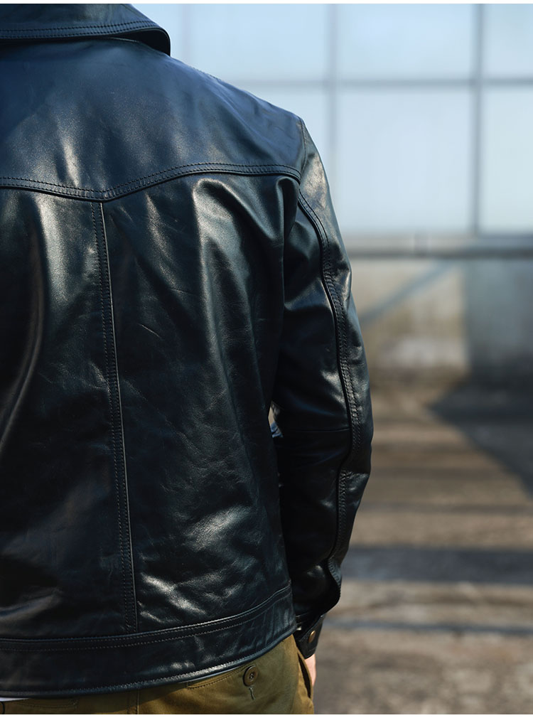 Retro Rrl 1.2mm Oil Wax Tea Core Horse Leather Lapel Slim Short Motorcycle Leather Jacket Men's Genuine Leather Jacket