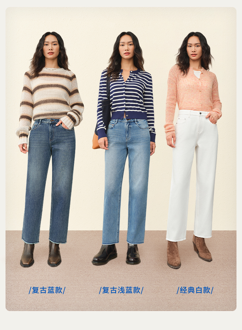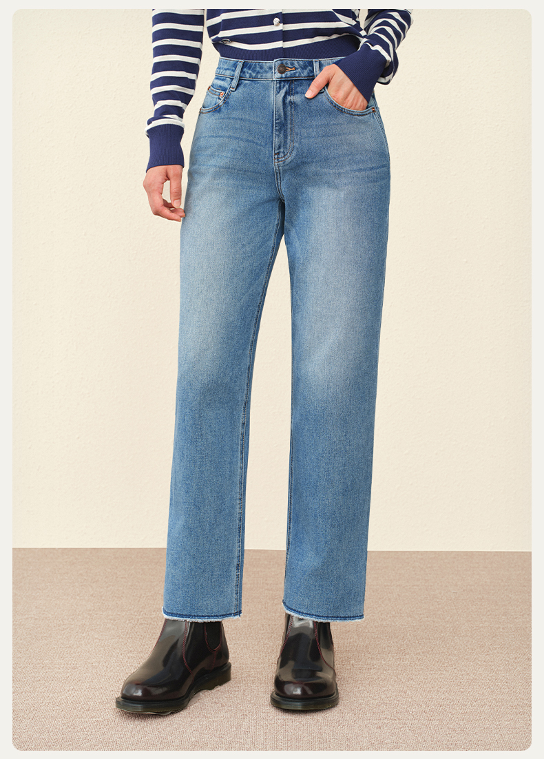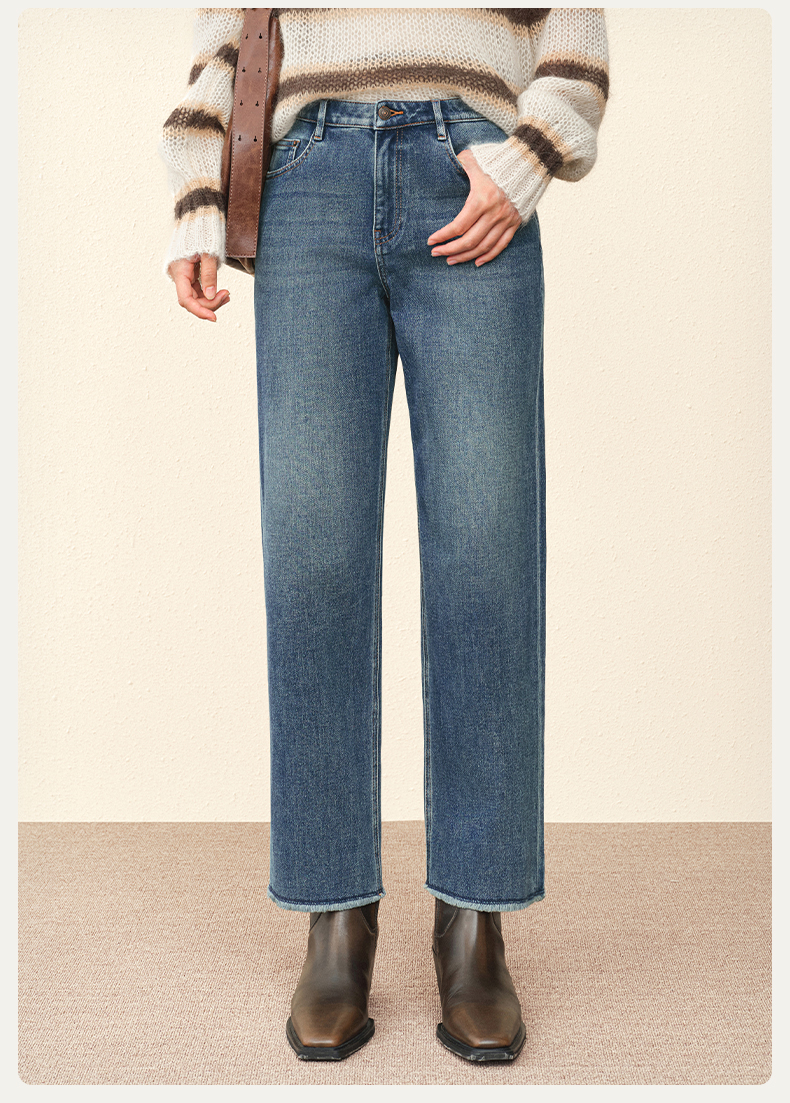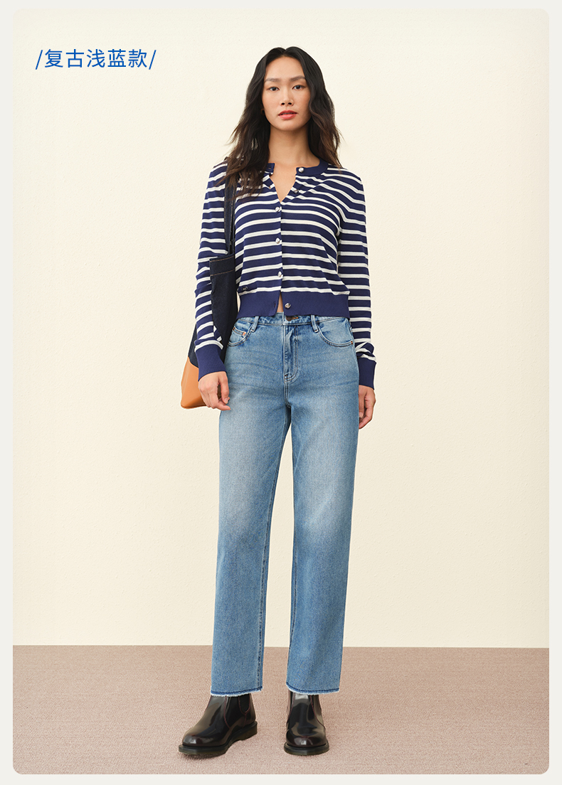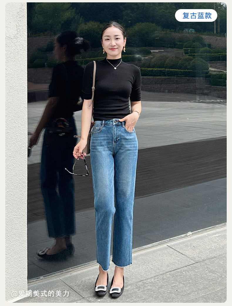 [Classic Baguette Pants] Simplepieces Autumn New Sps Denim Women's Petite Nine-Point Straight Pants
