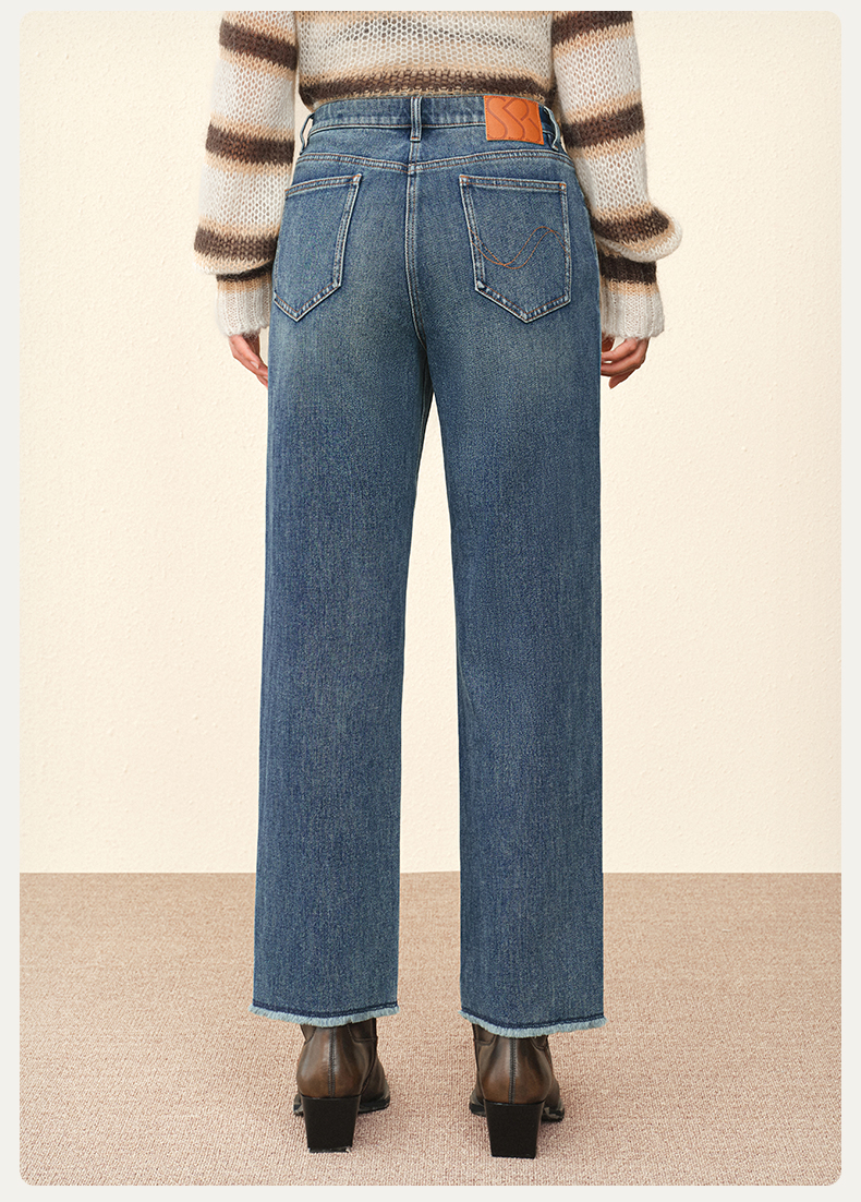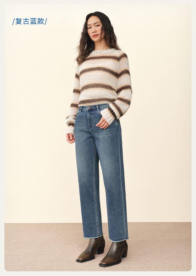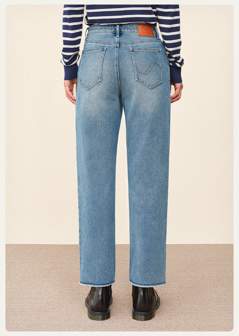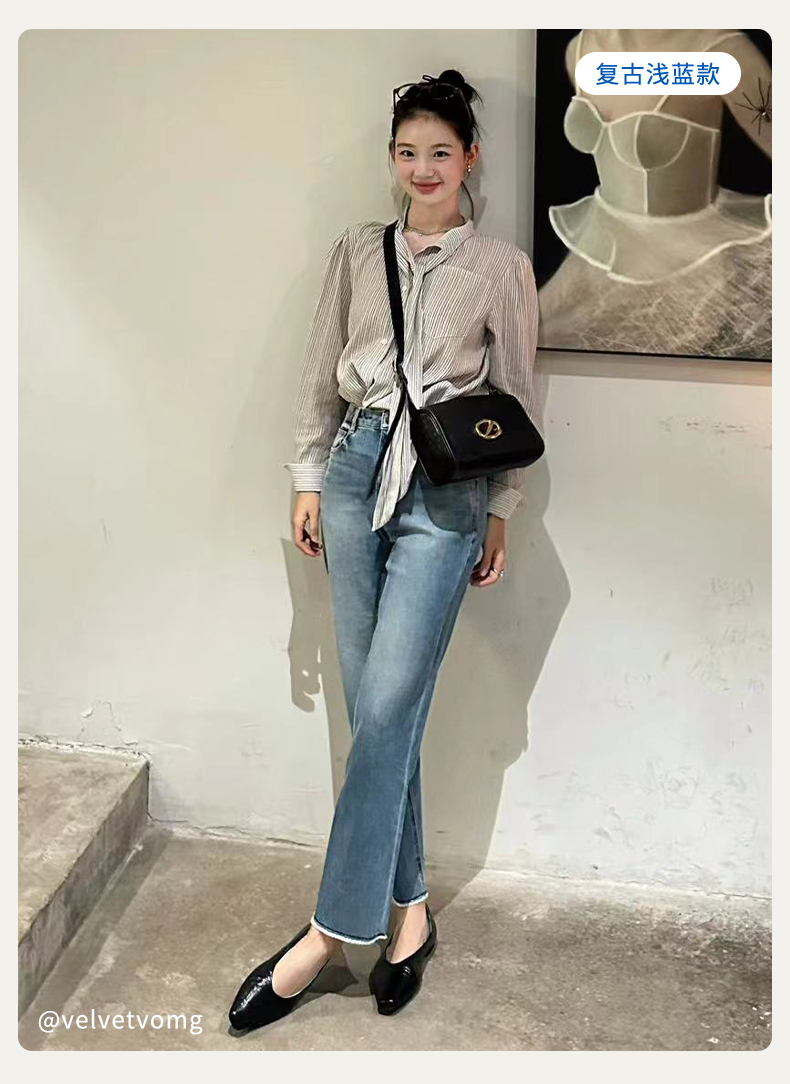 [Classic Baguette Pants] Simplepieces Autumn New Sps Denim Women's Petite Nine-Point Straight Pants