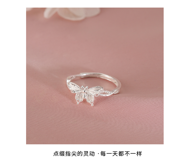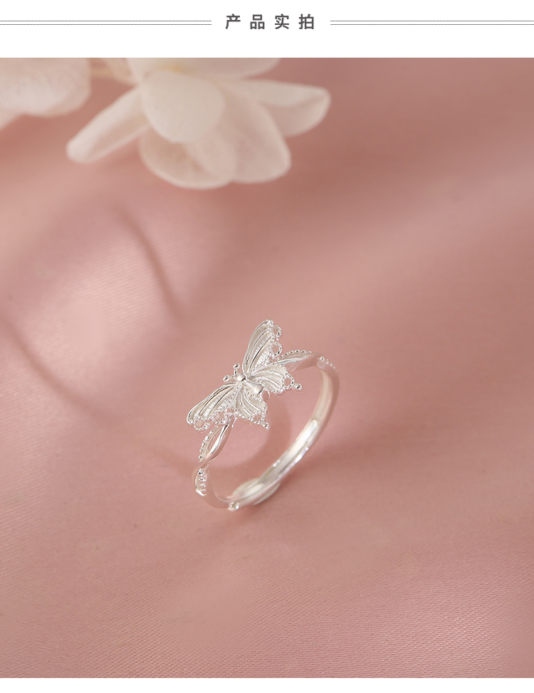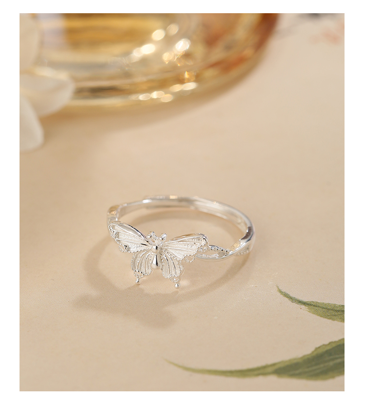 Yandai 999 Pure Silver Butterfly Ring for Women, Niche Design, Versatile Index Finger Ring, Pure Silver Adjustable Open Ring