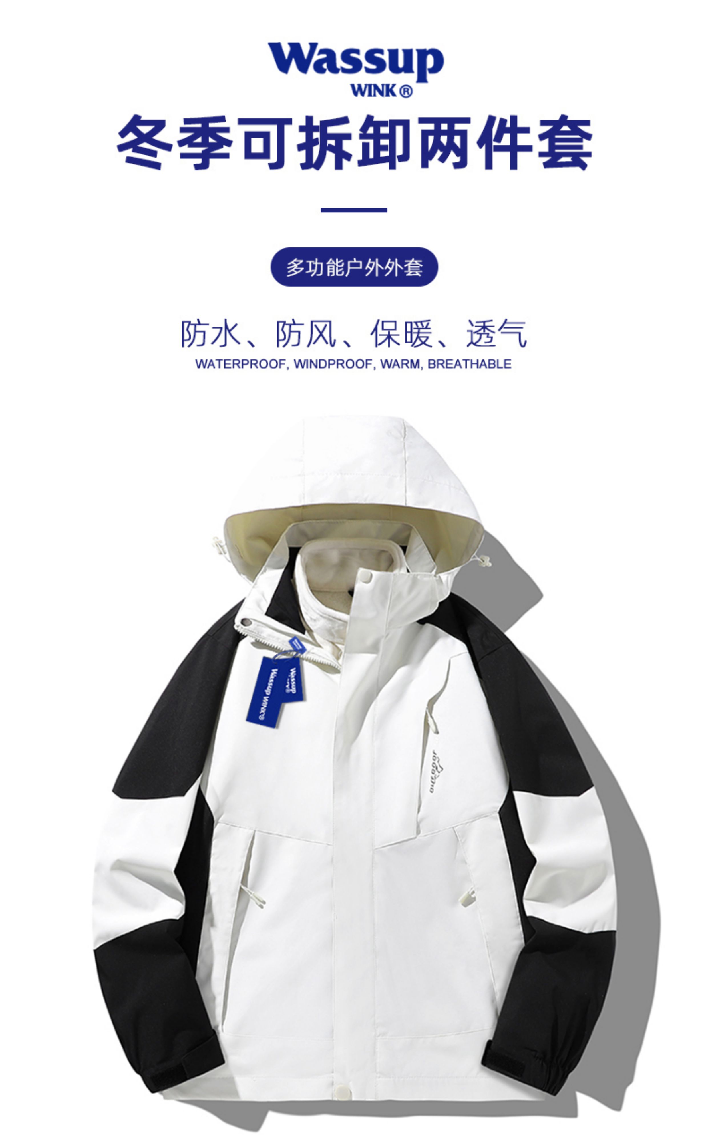 Wassup Wink Jacket for Men and Women 2025 New Three-In-One Outdoor Autumn and Winter Waterproof Mountaineering Jacket