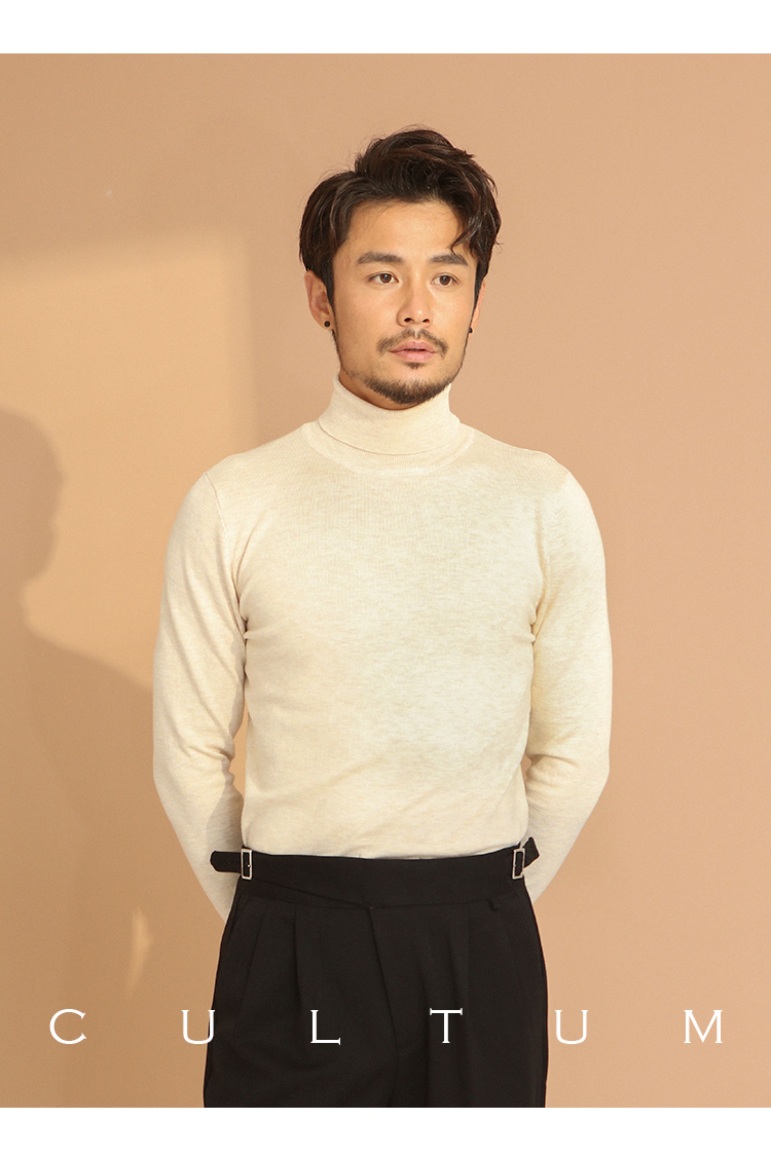 Cultum Turtleneck Sweater for Men, High-End Pullover Knitwear, Slim-Fit Wool Sweater, Thin Base Layer