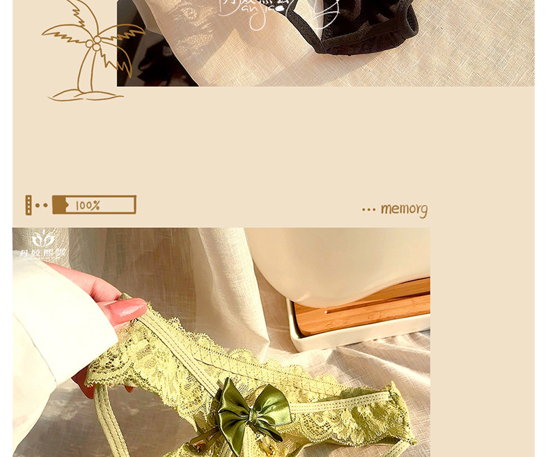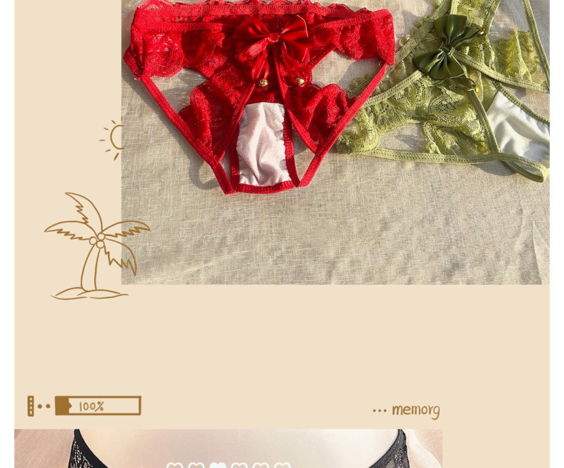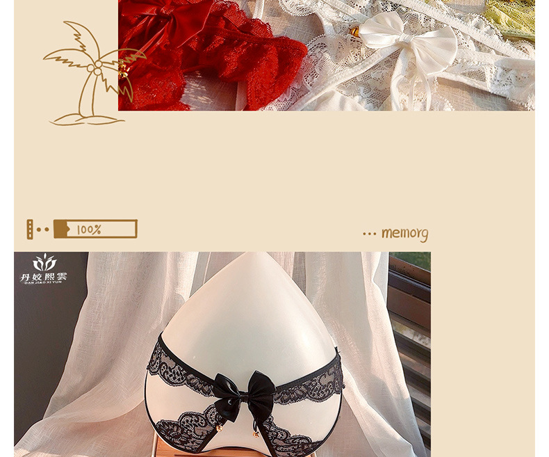 The Bell Will Ring, Hurry Up! Sexy Lace Hollow-Out No-Take-Off Temptation Thong with Bow and Open Crotch