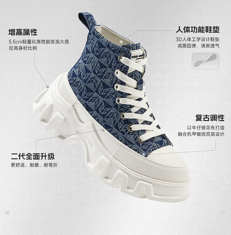 Ogr老花2.0 Canvas Shoes Men's High-Top Shoes Height-Increasing Thick-Soled Shoes for Men and Women Couple Fashion Casual Trendy Versatile