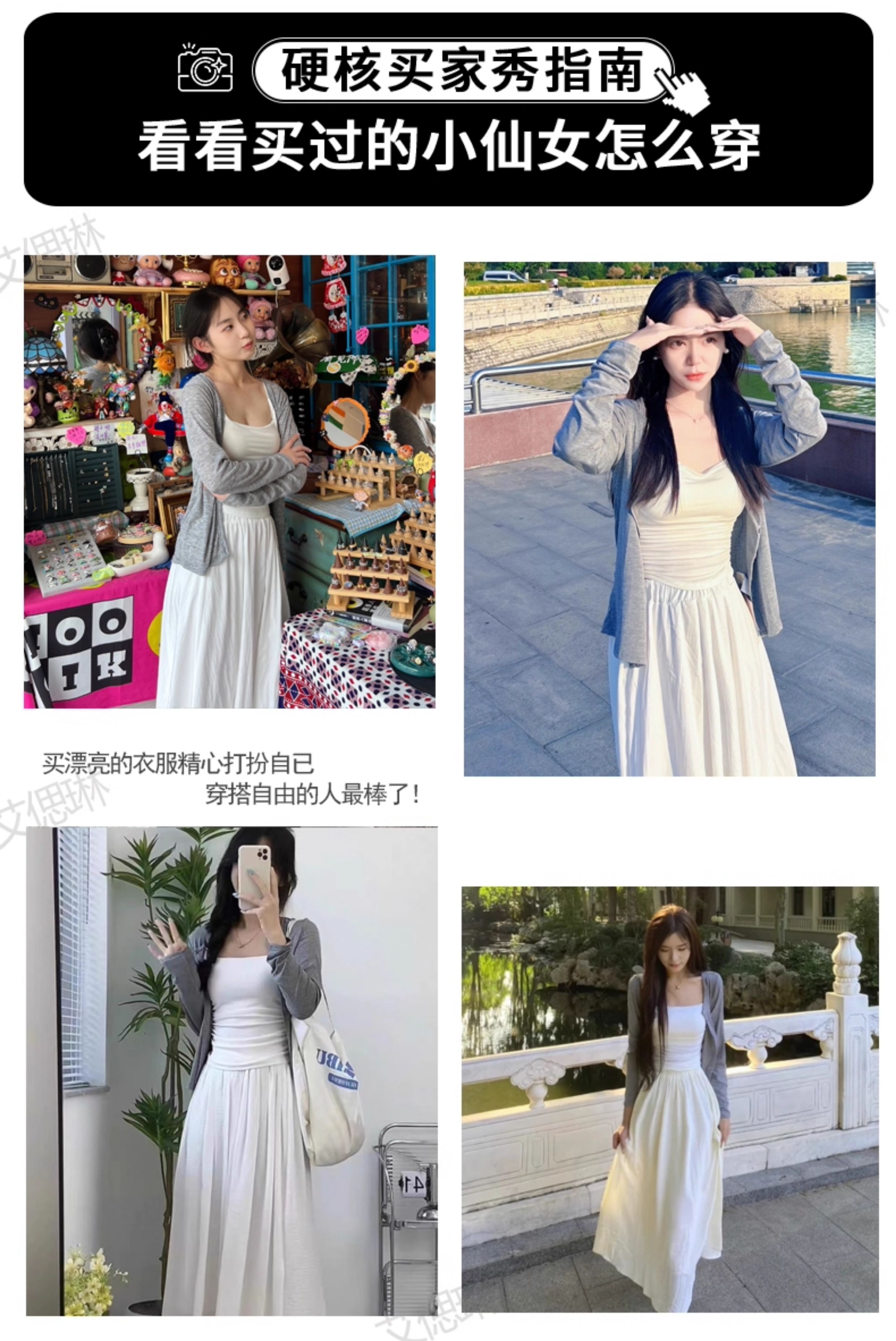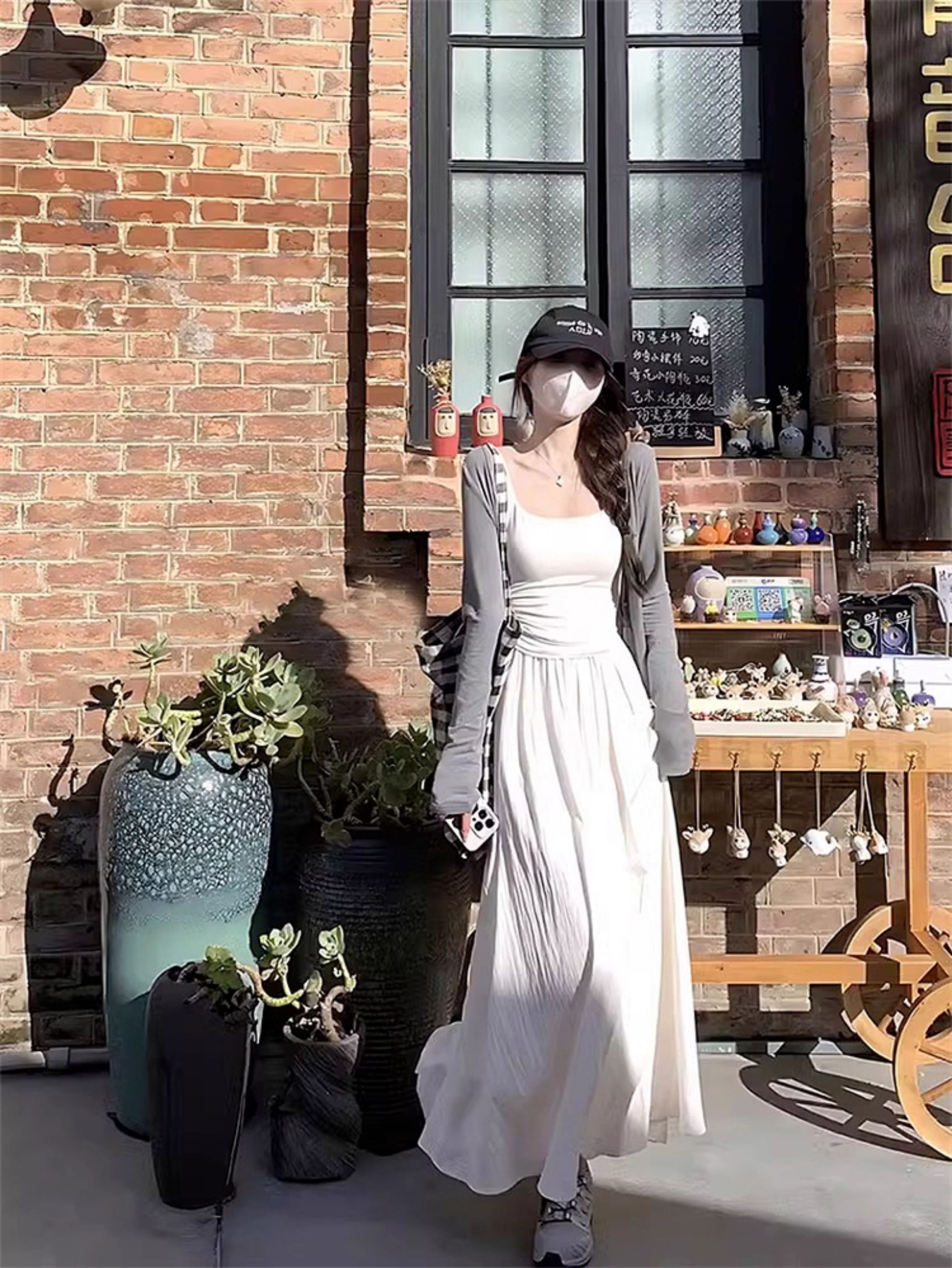 French-Style White Spaghetti Strap Dress for Women, 2025 New Model, Elegant and Sophisticated, Autumn and Winter Outfit Set with Long Skirt Underneath