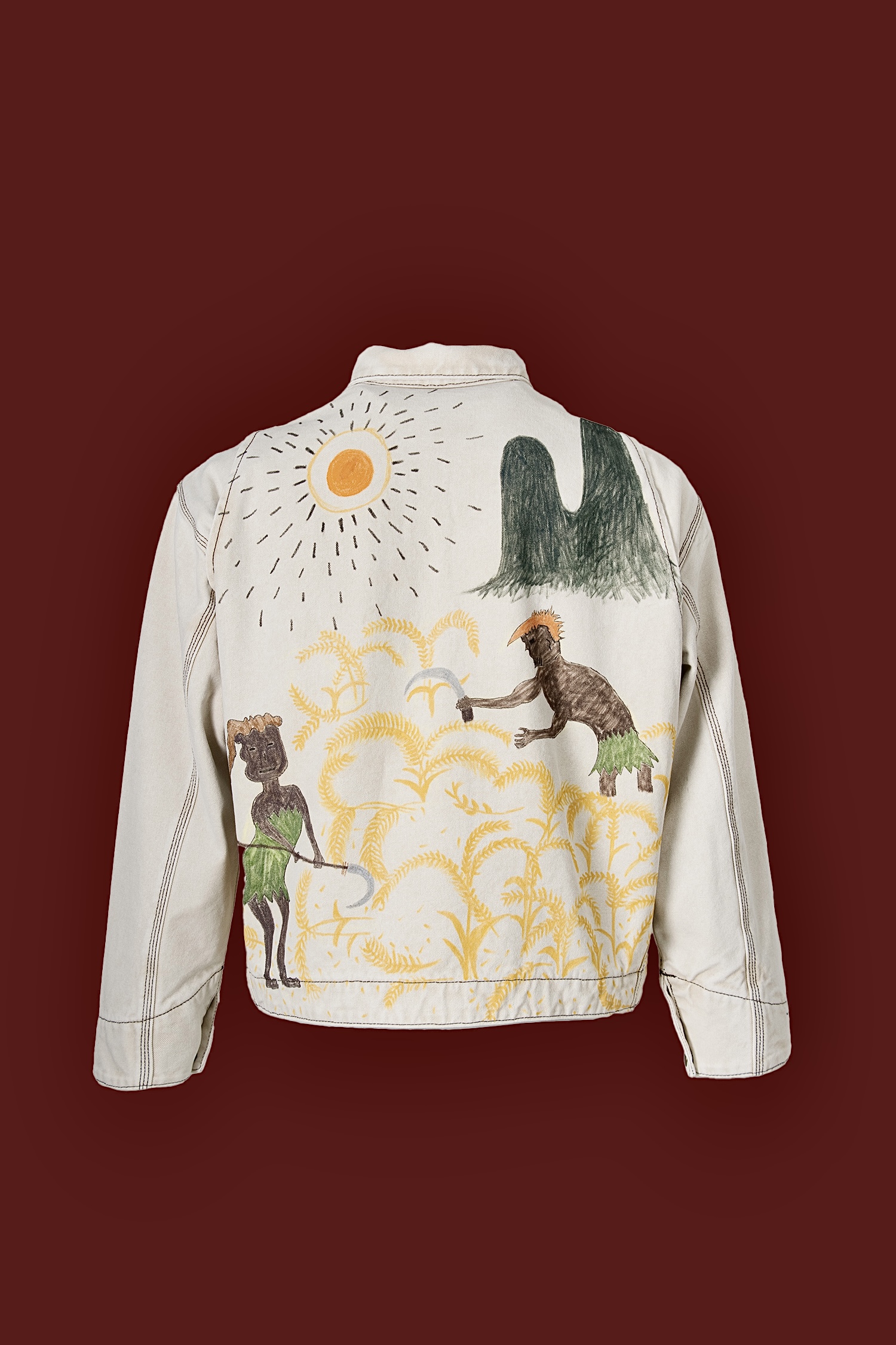 Zwdh-24Fw Heavy-Duty 670g “Agricultural Revolution” Painting Graffiti Denim Jacket