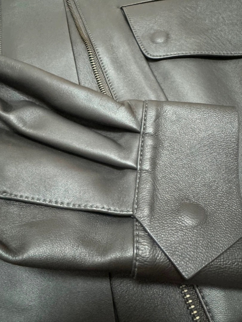 (Online Discount) Row Italian Imported Genuine Sheepskin Small Stand-Up Collar Jacket-Style Leather Coat