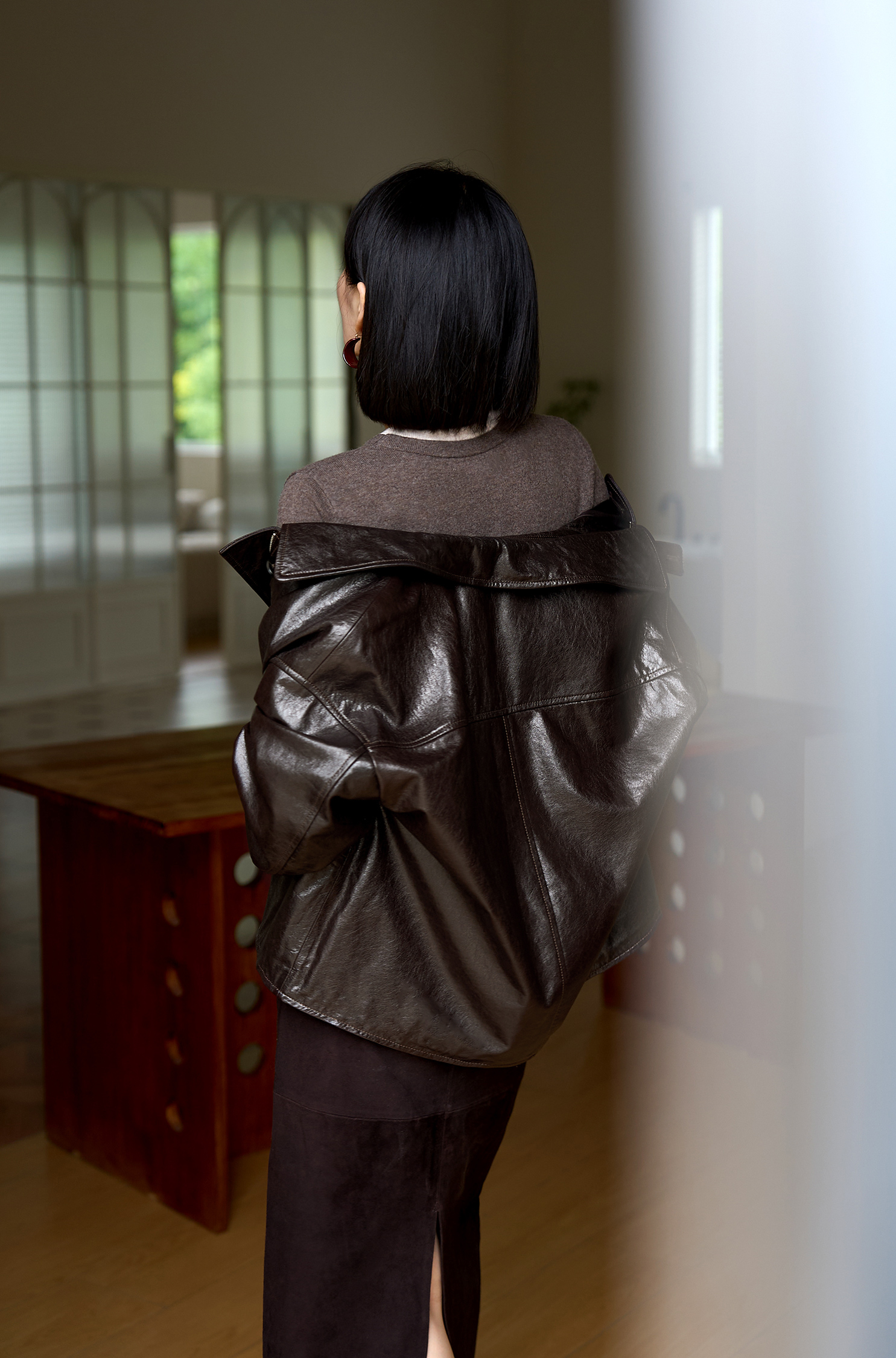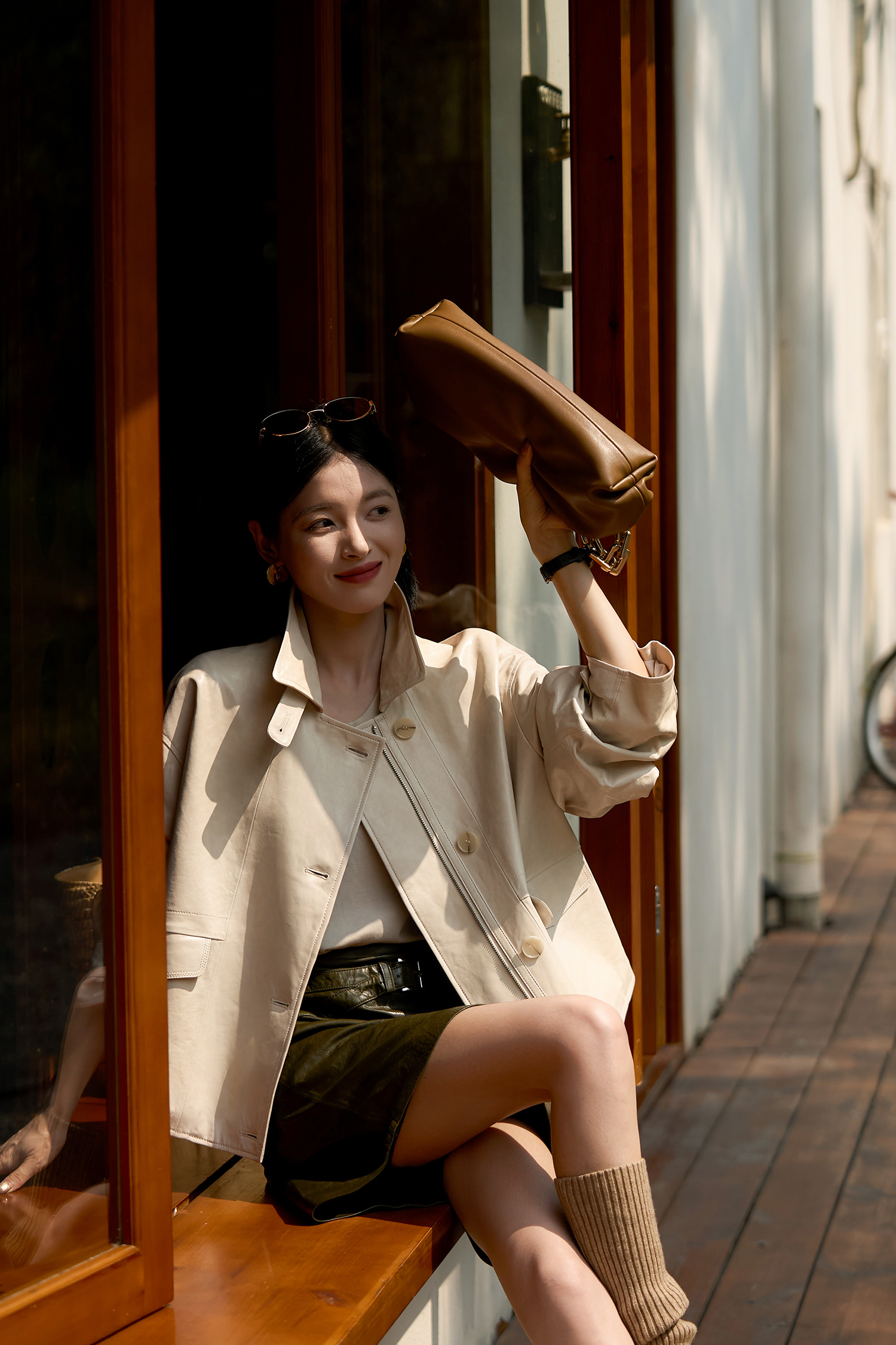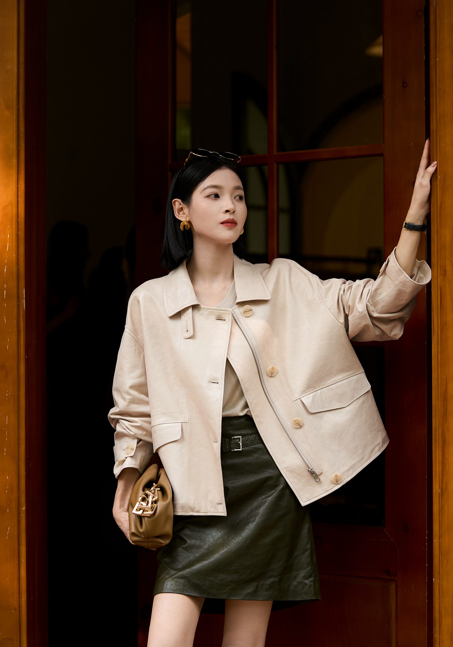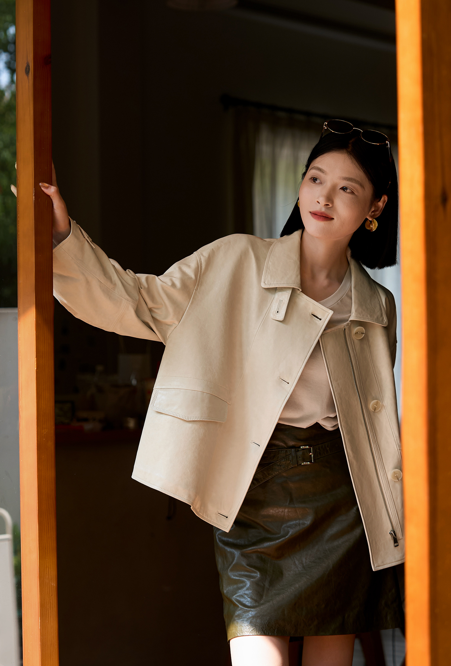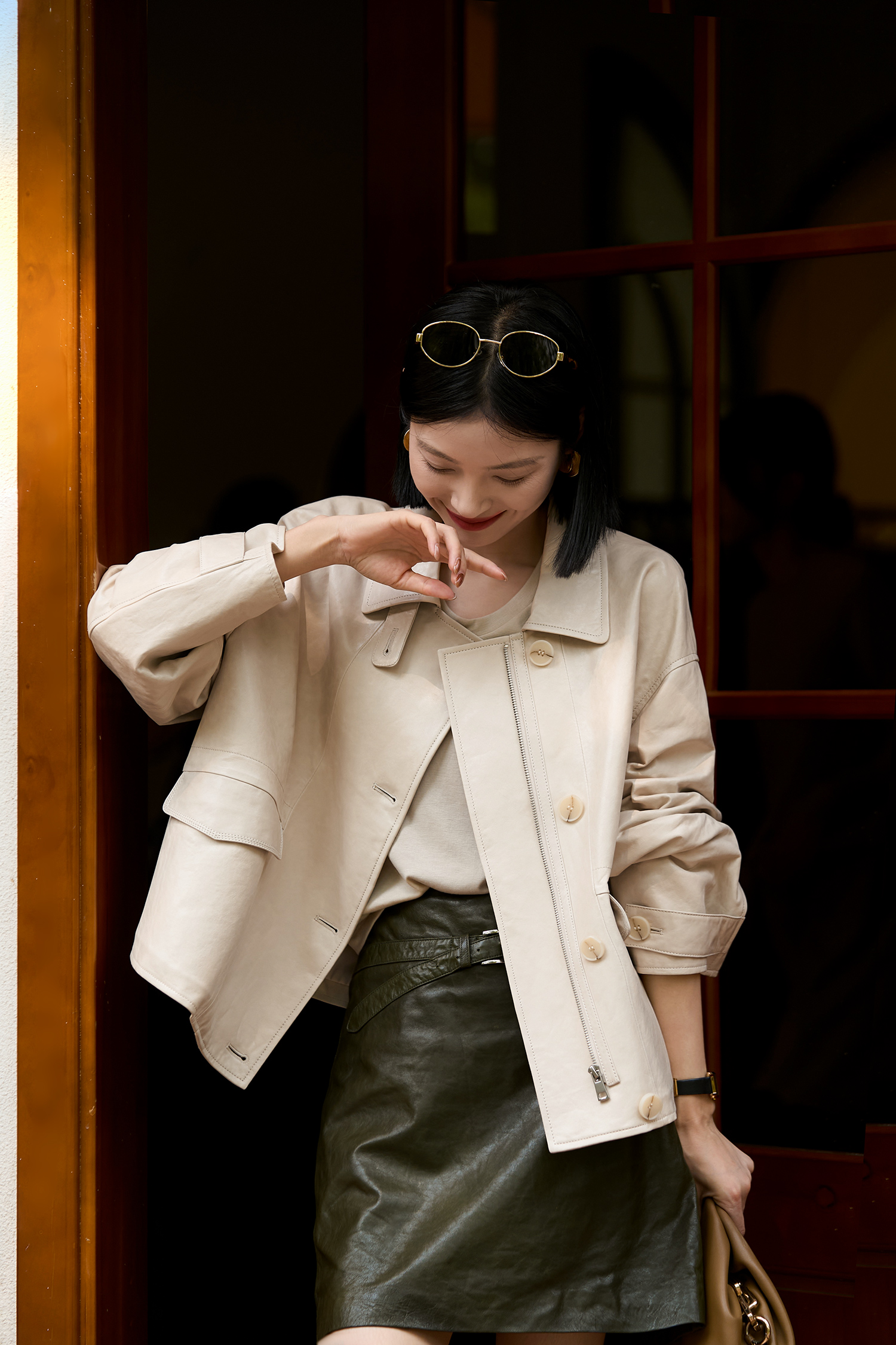 游刃有余的飒爽摩登女性,将皮衣的直率英气为己所用