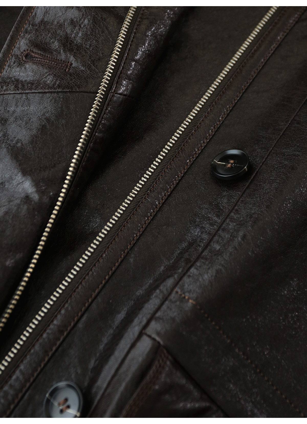 【白岩灰】甄选复古油蜡皮工艺绵羊皮面料