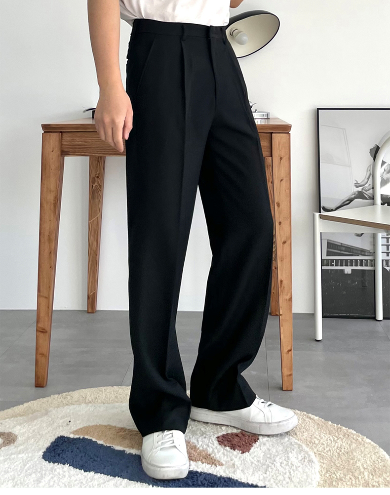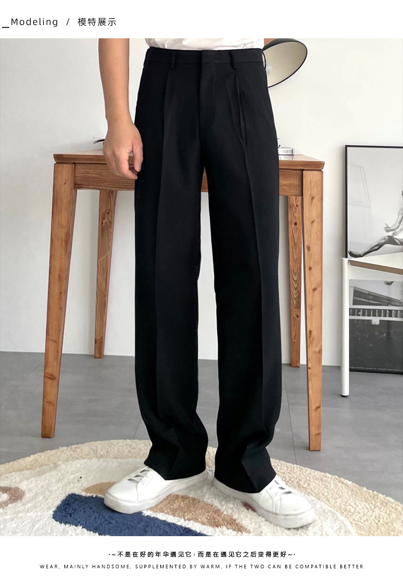 2025 Autumn New Men's Straight-Leg Loose Korean Style Trendy Versatile Flowy Wide-Leg Black Casual Long Pants