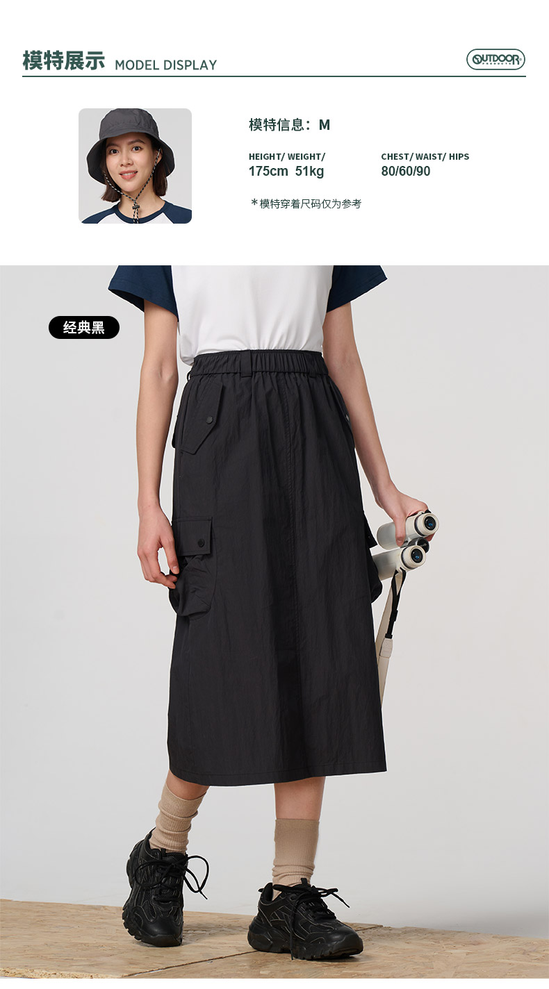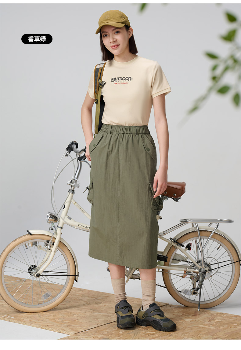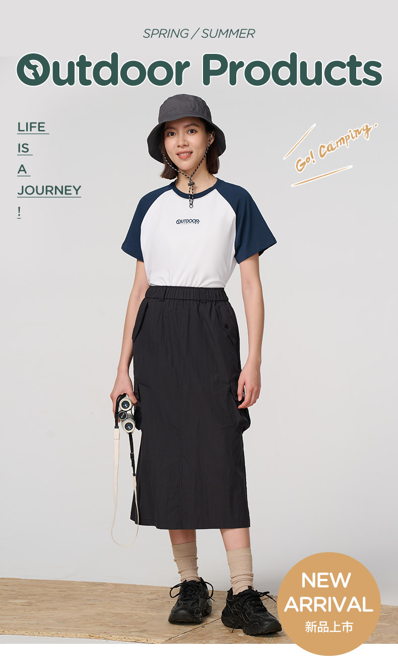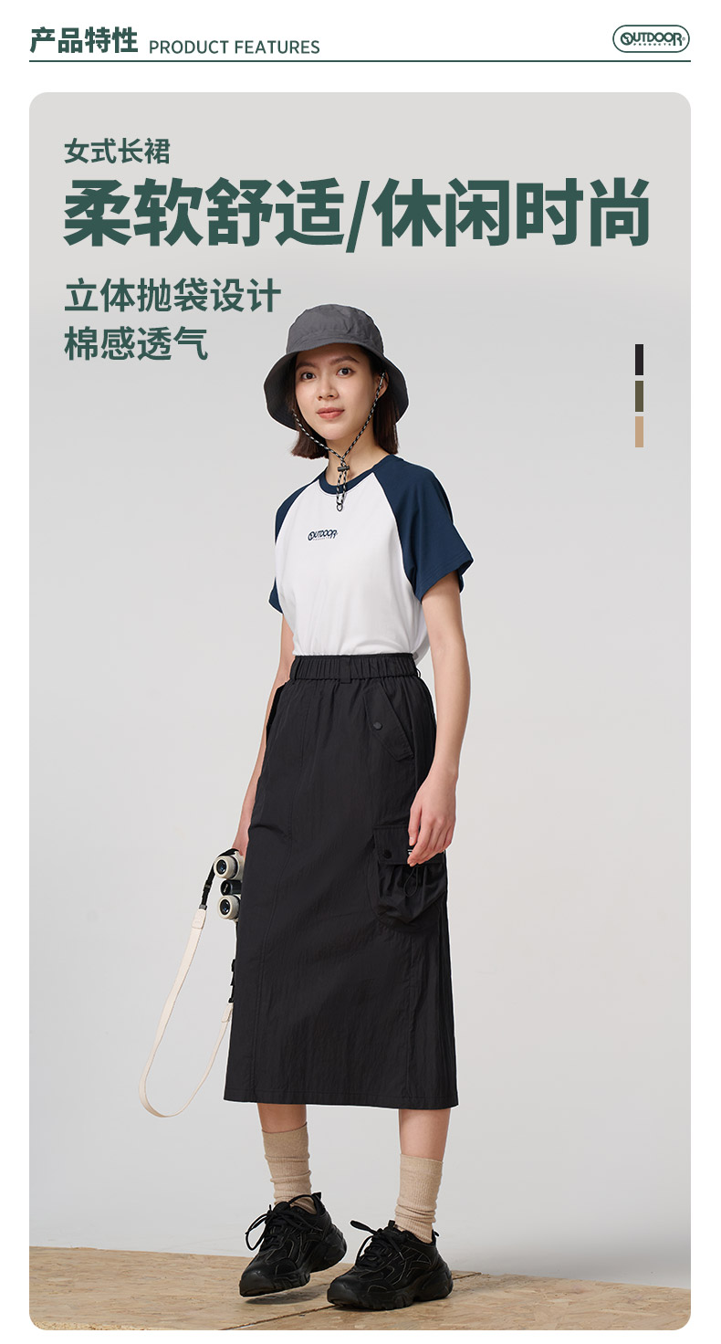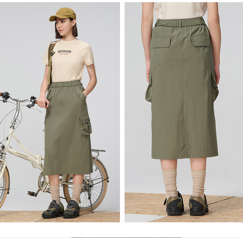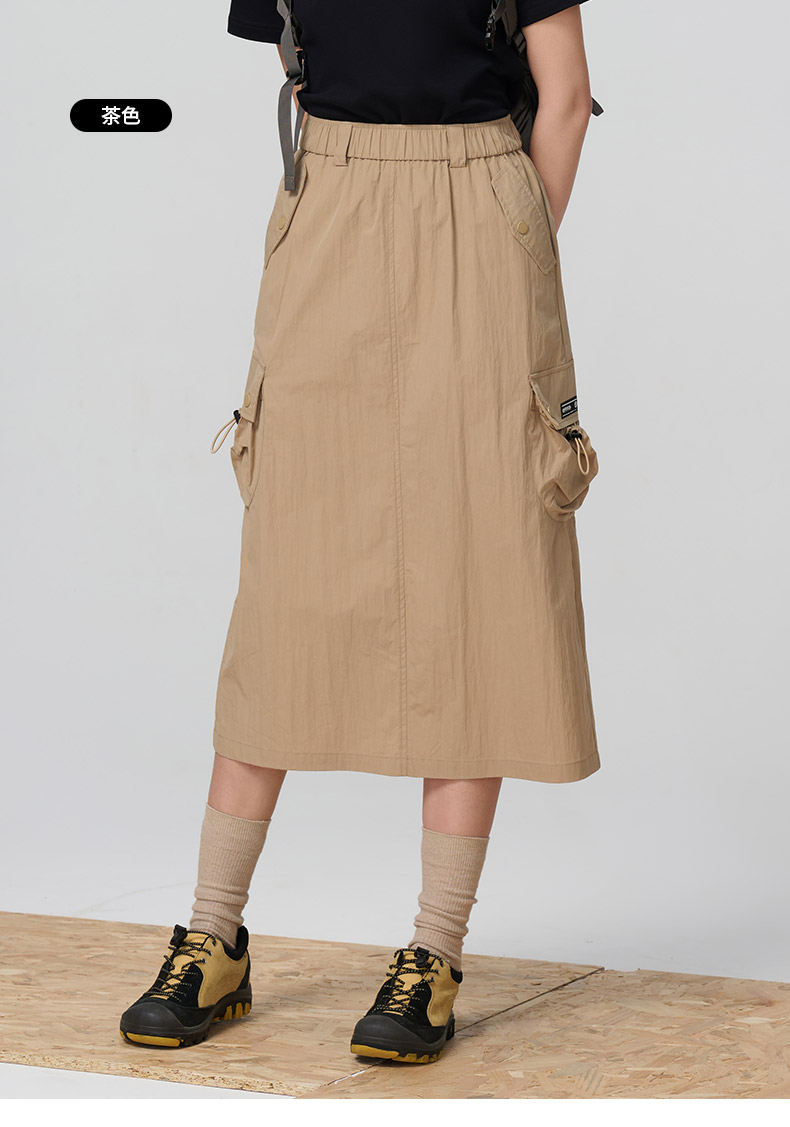 Outdoor Products Women's Spring and Autumn New Long A-Line Skirt with Three-Dimensional Pockets, Casual and Versatile