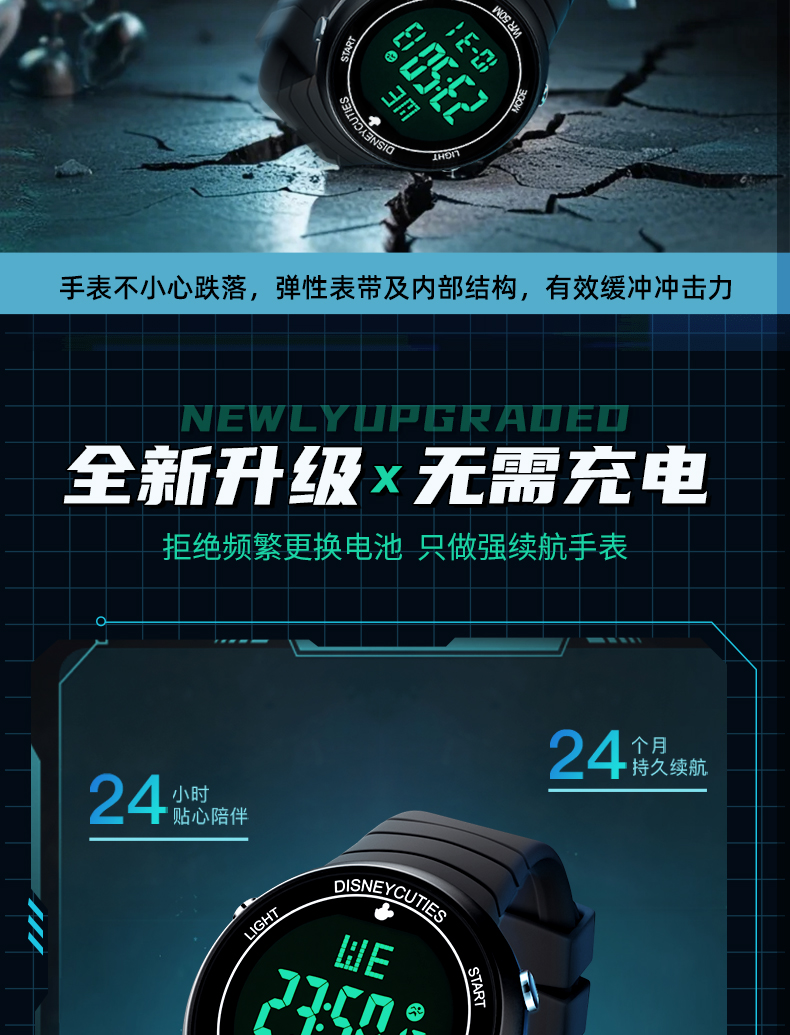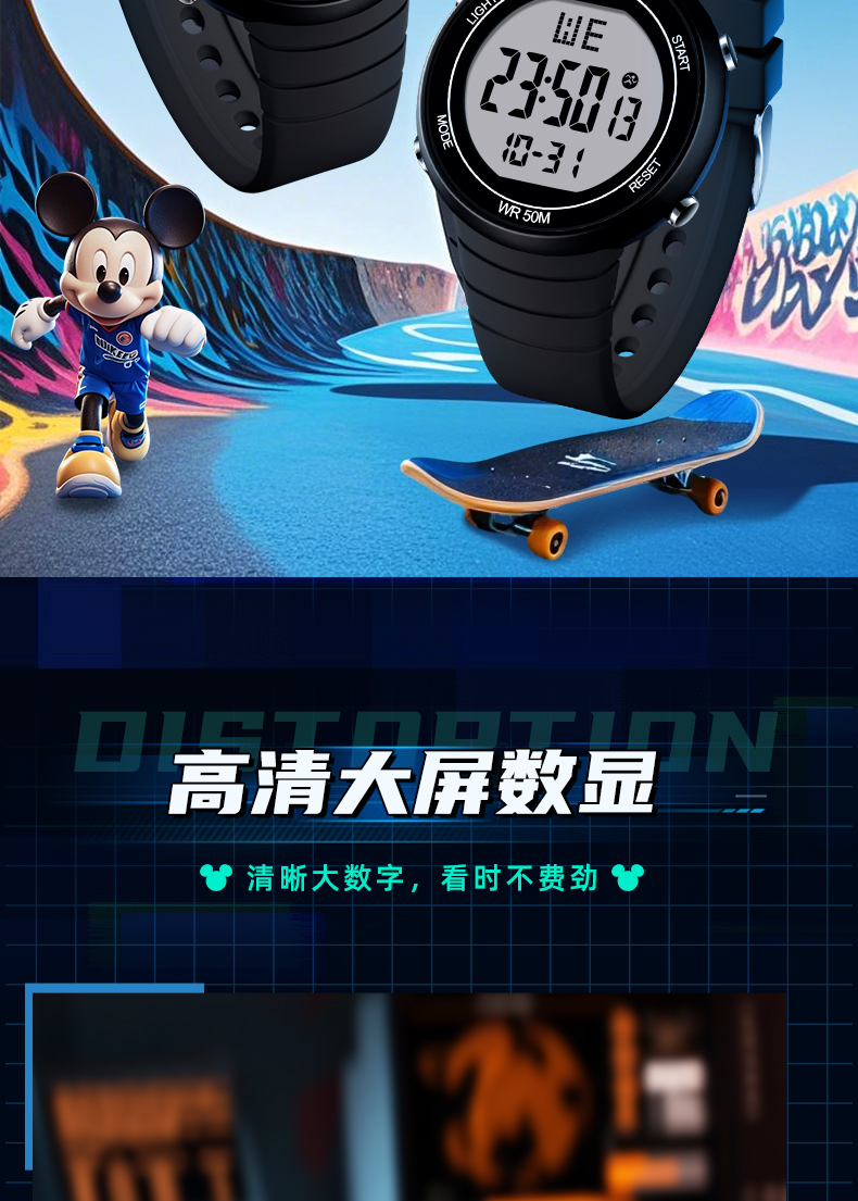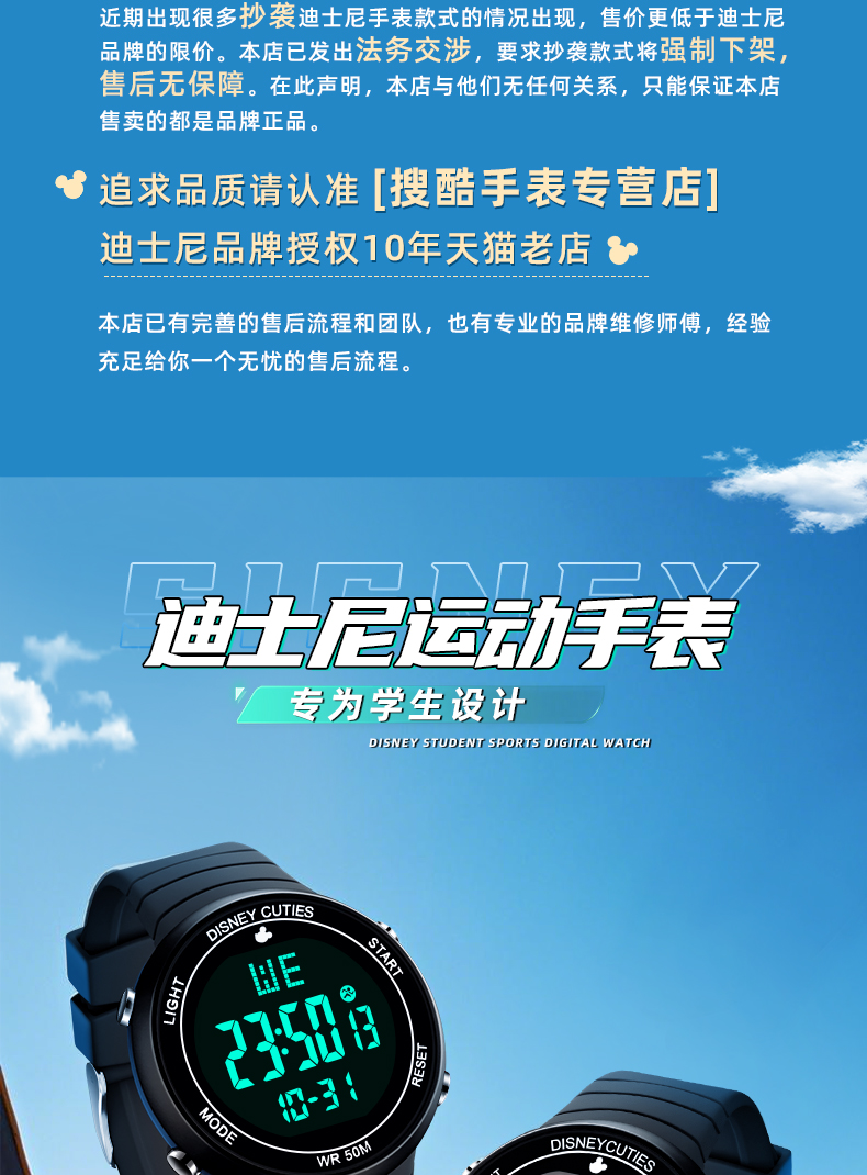 Disney Digital Watch for Men, Suitable for Junior High and High School Boys, Teenagers, Waterproof Alarm Clock, Sports Watch for Children and Boys