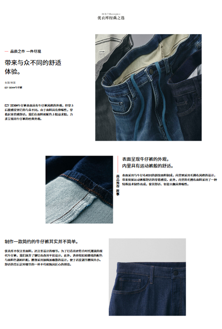 Uniqlo Men's and Women's Clothing Ezy Denim Jeans Washed Product Stretch Pants New Style 479314 484331