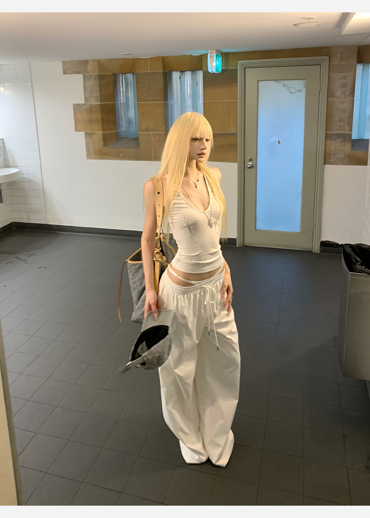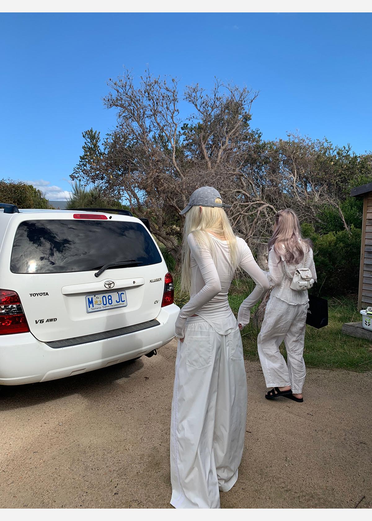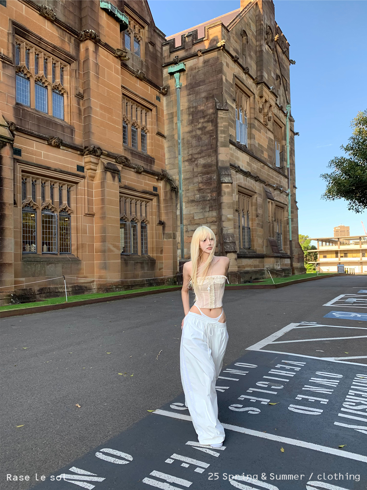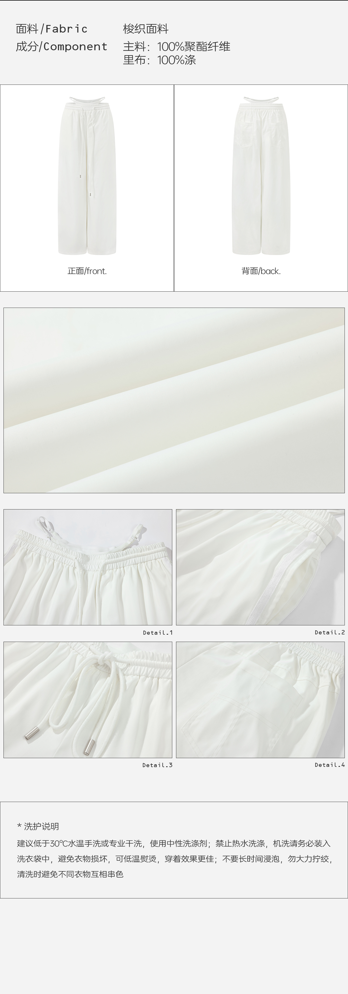 Rase Le Sol Fake Two-Piece Waistband Spliced White Wide-Leg Pants Summer Loose Lazy Floor-Length Straight Casual Pants