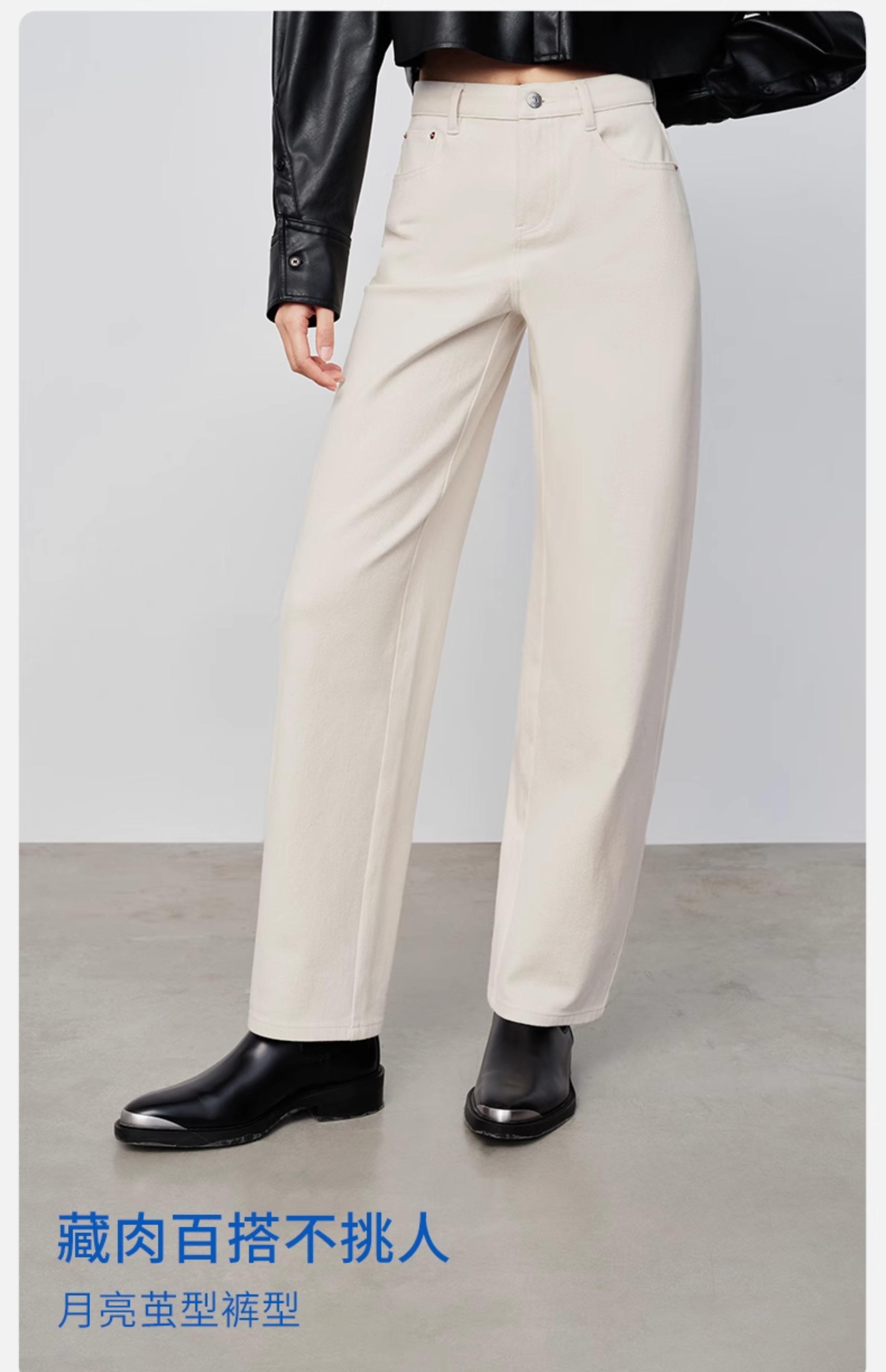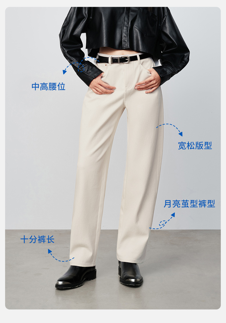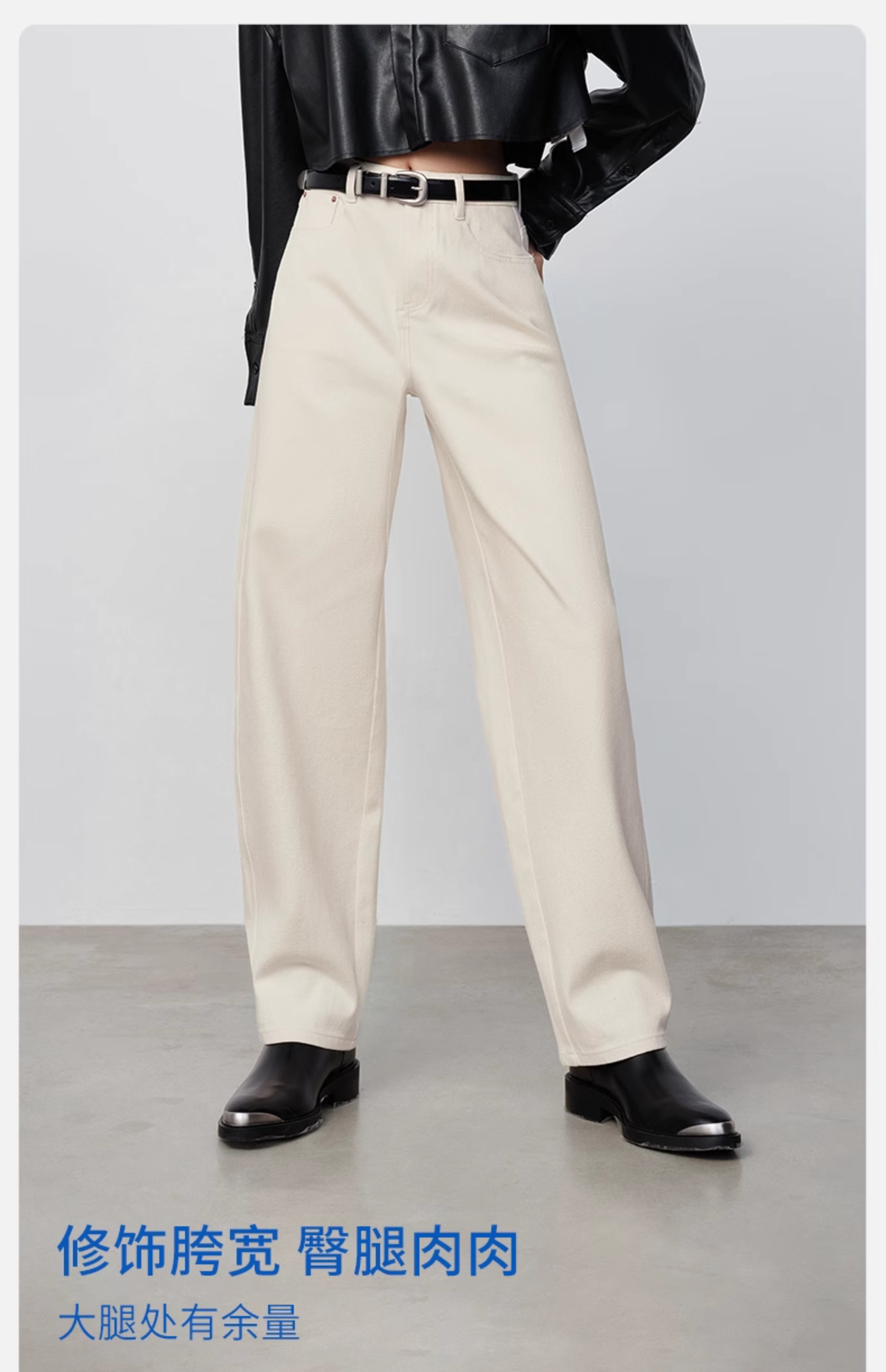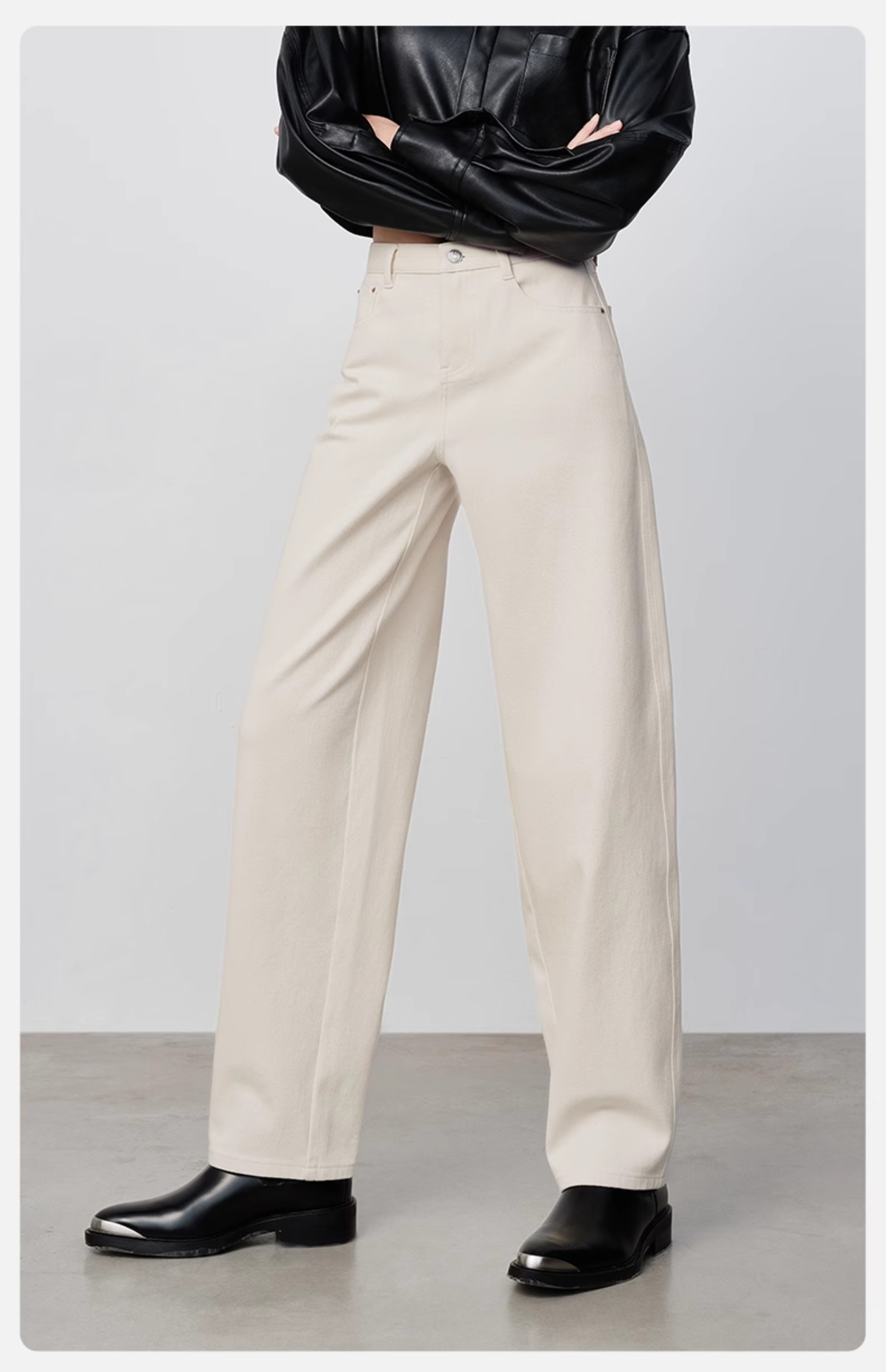 【Very Basic White Pants】Simplepieces Four-Season Loose Fit Sps Jeans for Women, Slimming, Pear-Shaped Body Type