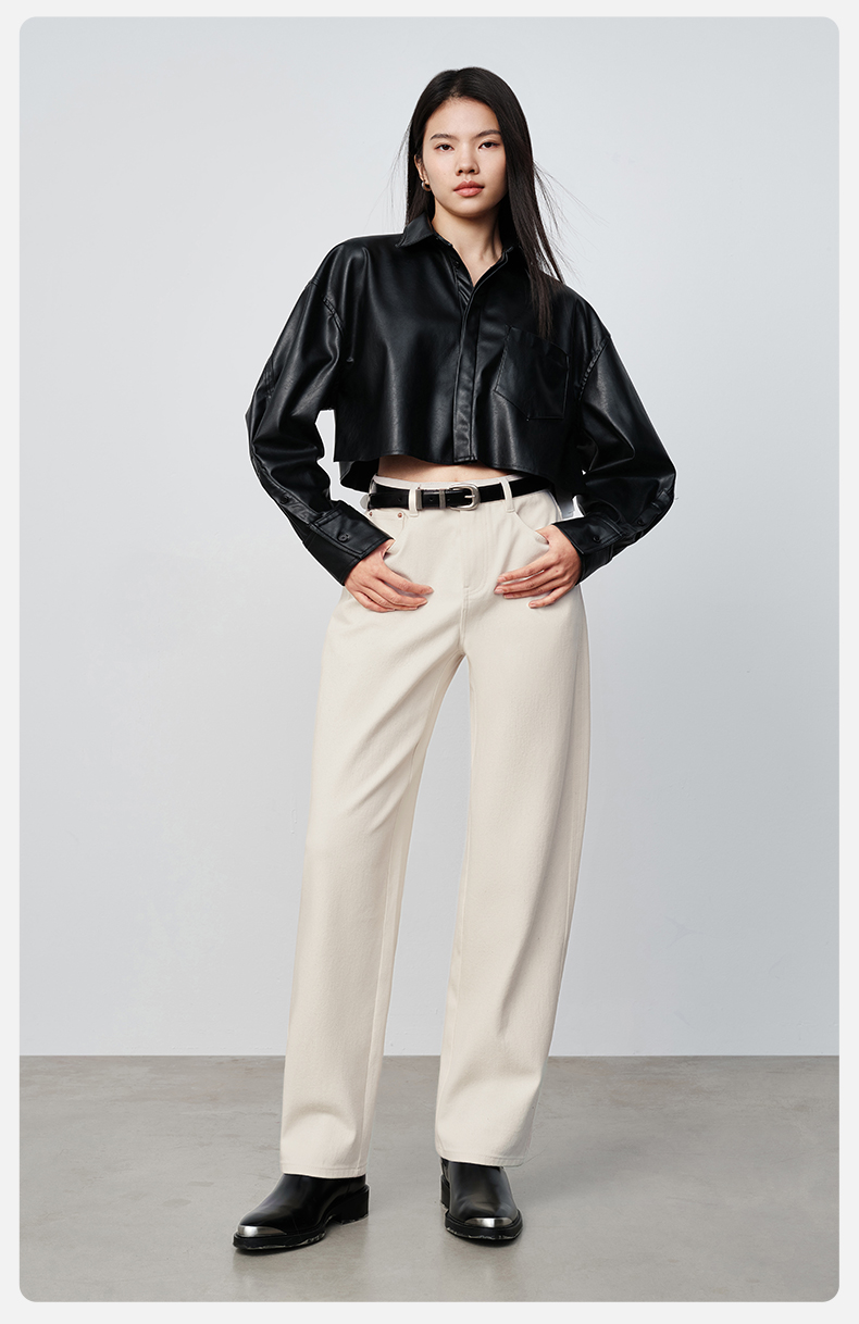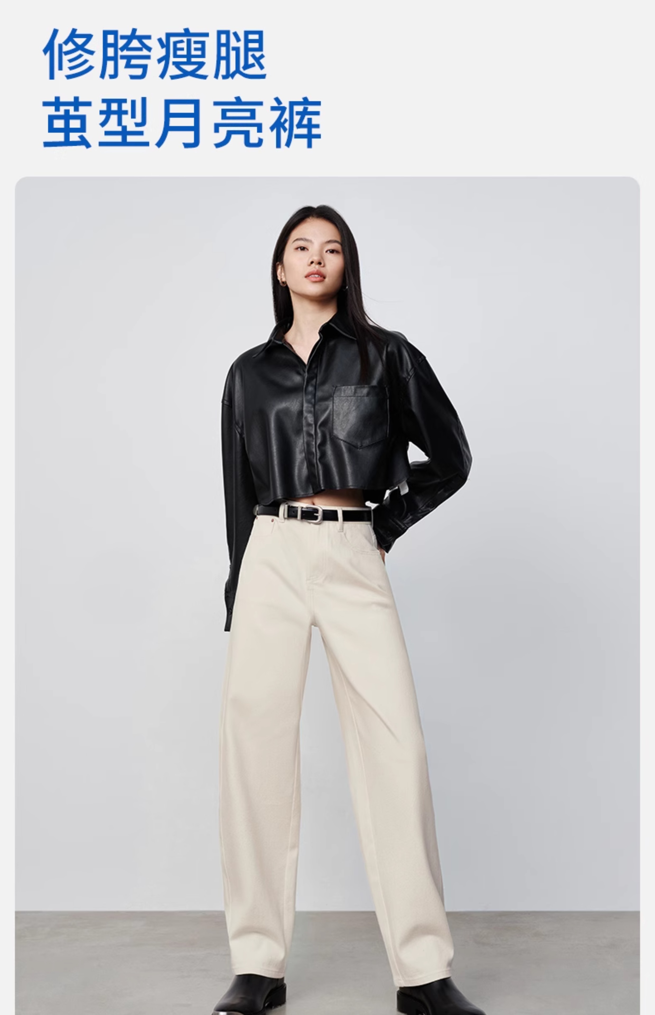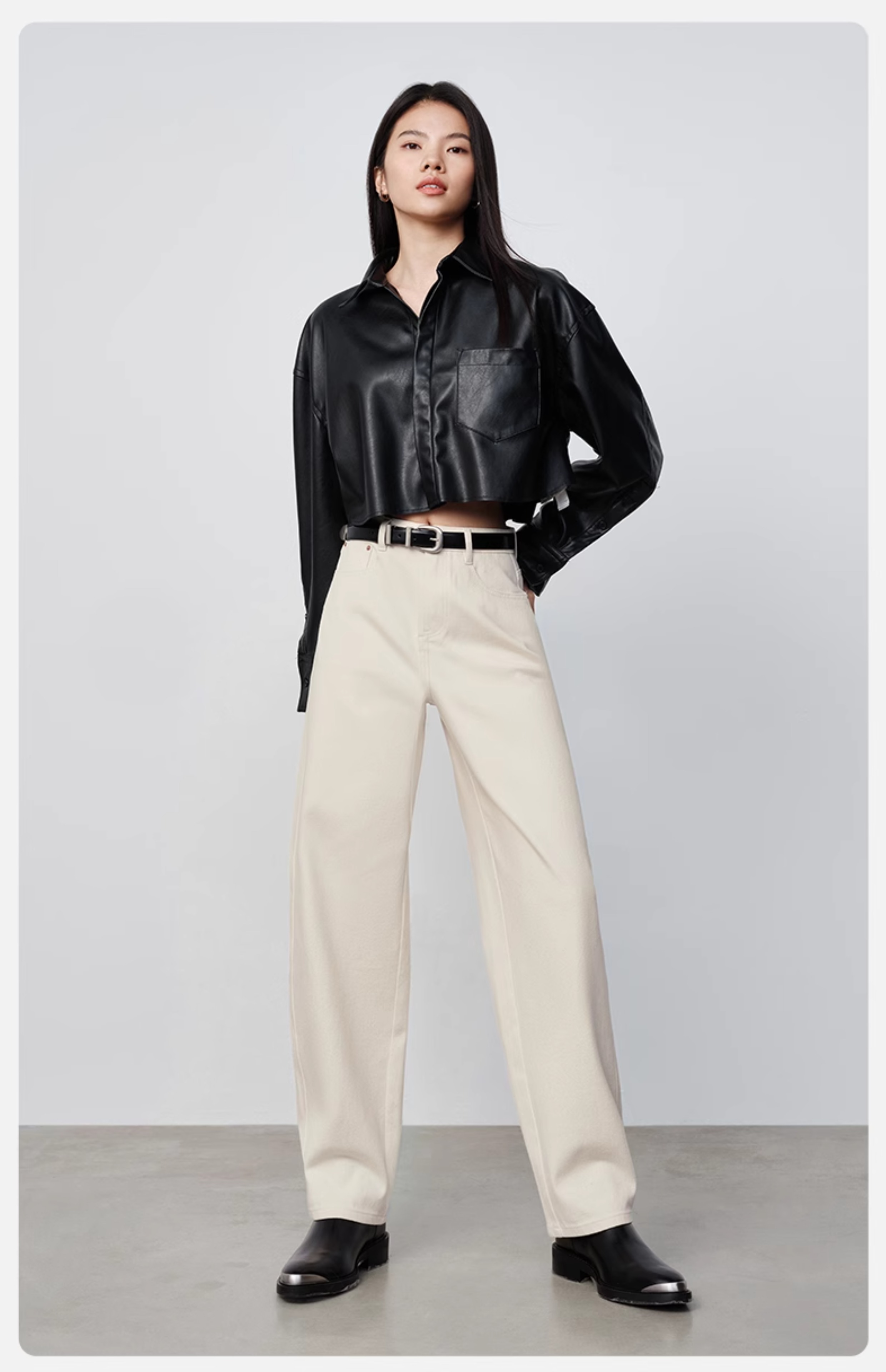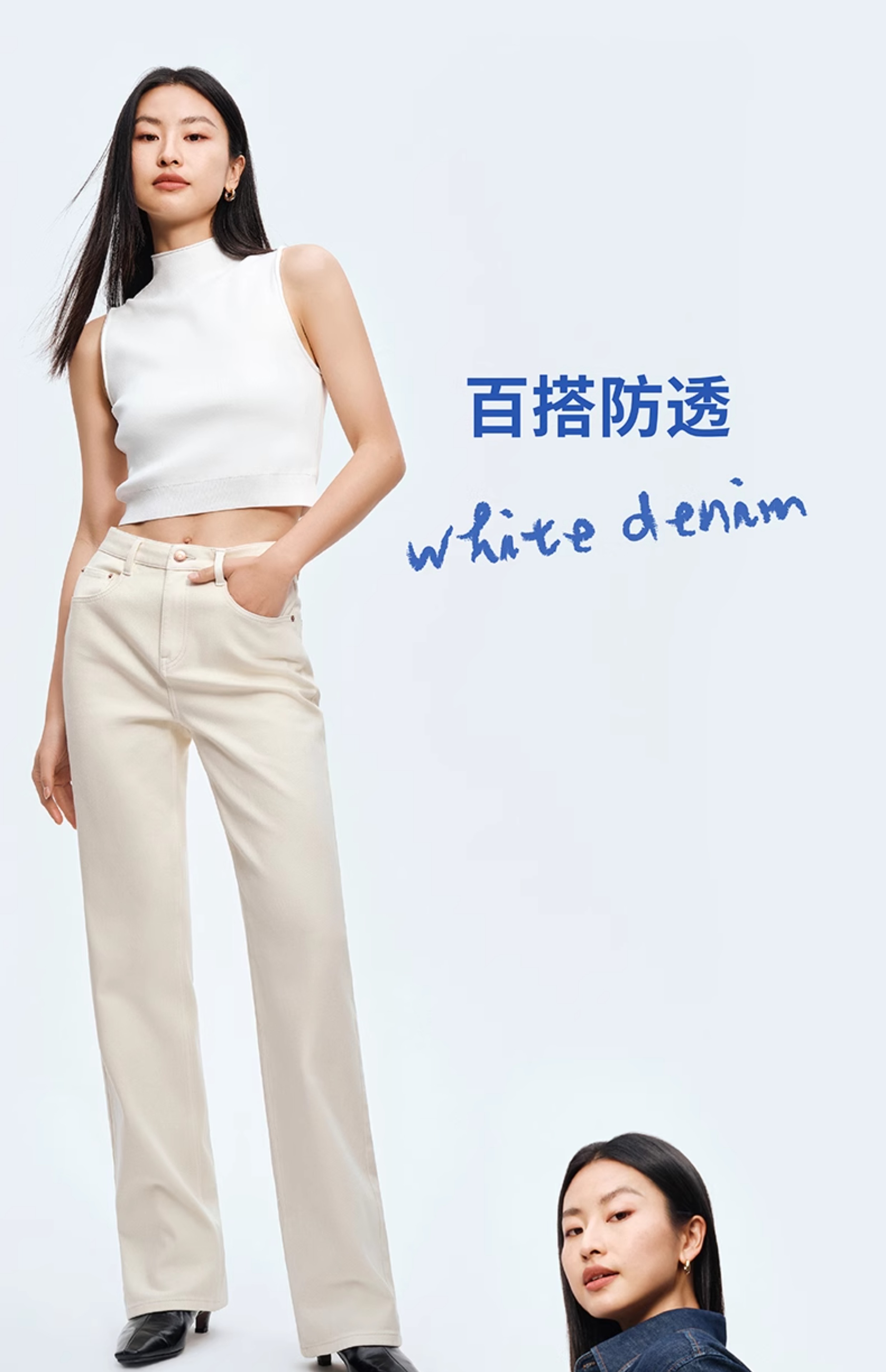 【Very Basic White Pants】Simplepieces Four-Season Loose Fit Sps Jeans for Women, Slimming, Pear-Shaped Body Type