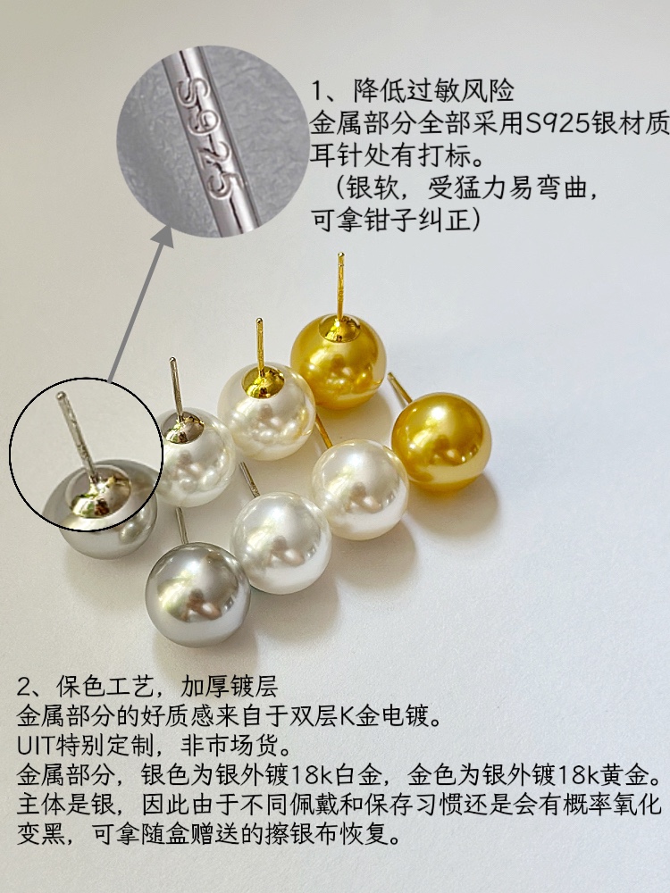 Uit925 Sterling Silver Pearl Earrings, Artificial Australian White Tahitian Platinum Gray Gold Beads, Akoya Genuine Pearl Jewelry