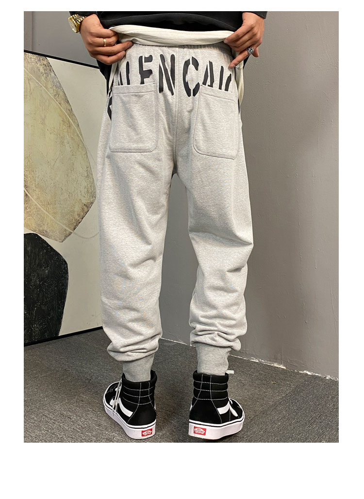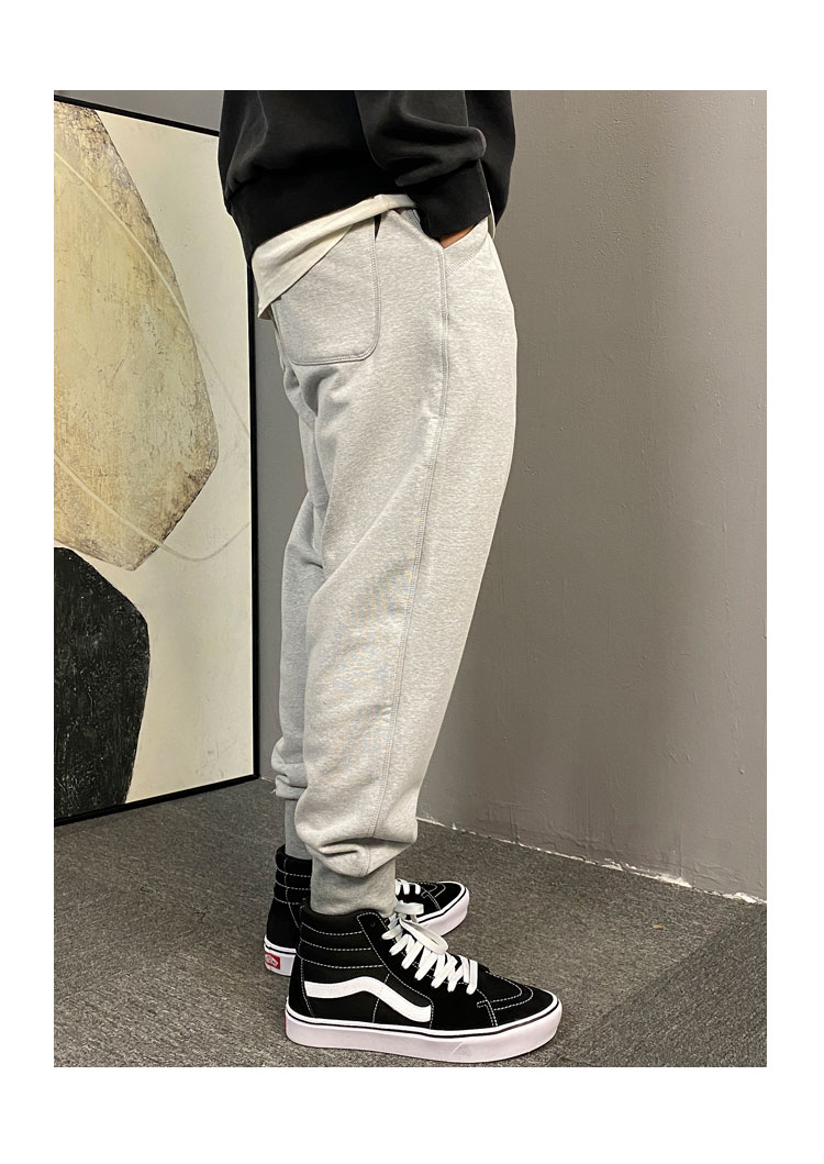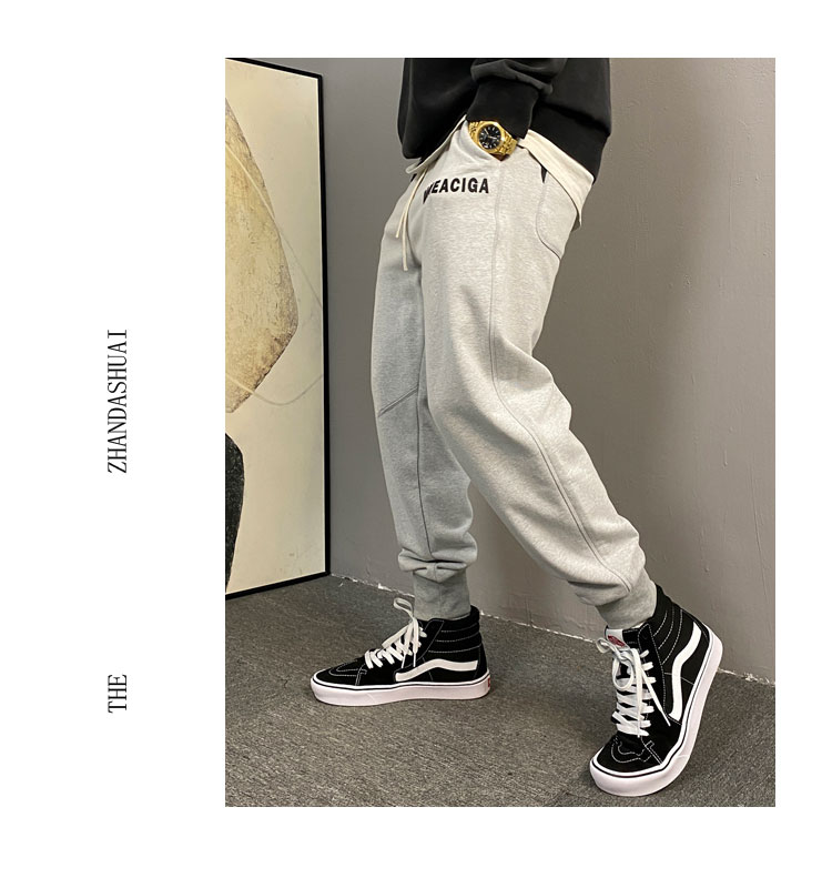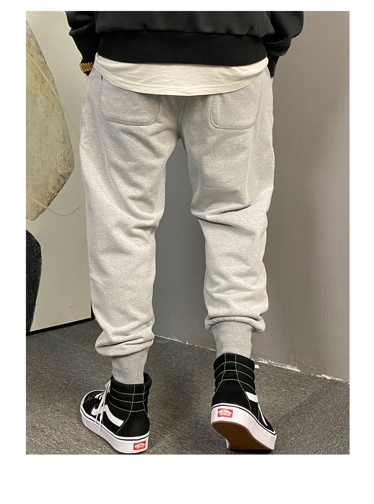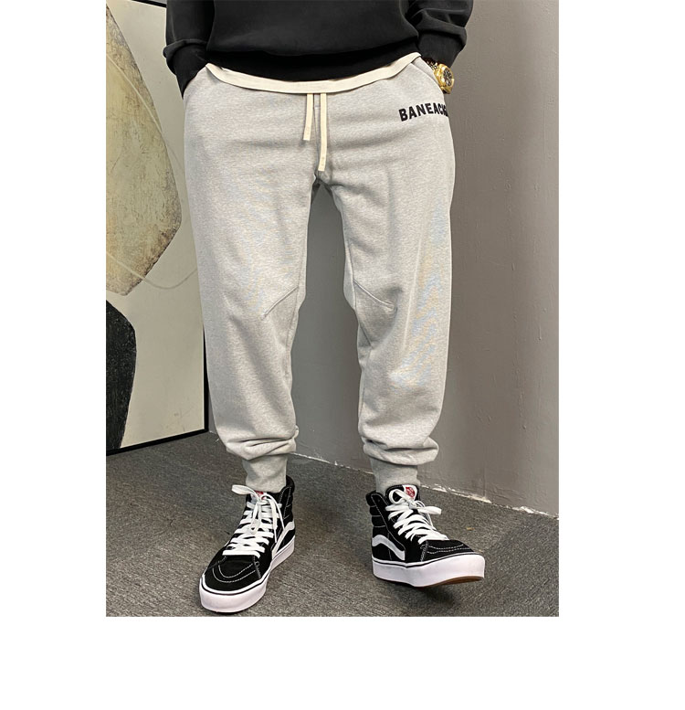 Autumn and Winter American Casual High-End Black Fleece-Lined Knit Sweatpants for Men, Loose Jogger Pants, Trendy Sports Long Pants
