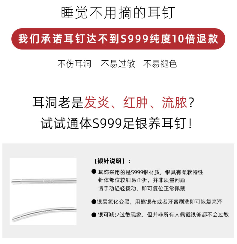 S999 Pure Silver Earrings for Women, Ear Care, 2025 New Popular Style, High-End Earrings, Sleep Without Removing, Ear Bone Studs, Ear Accessories