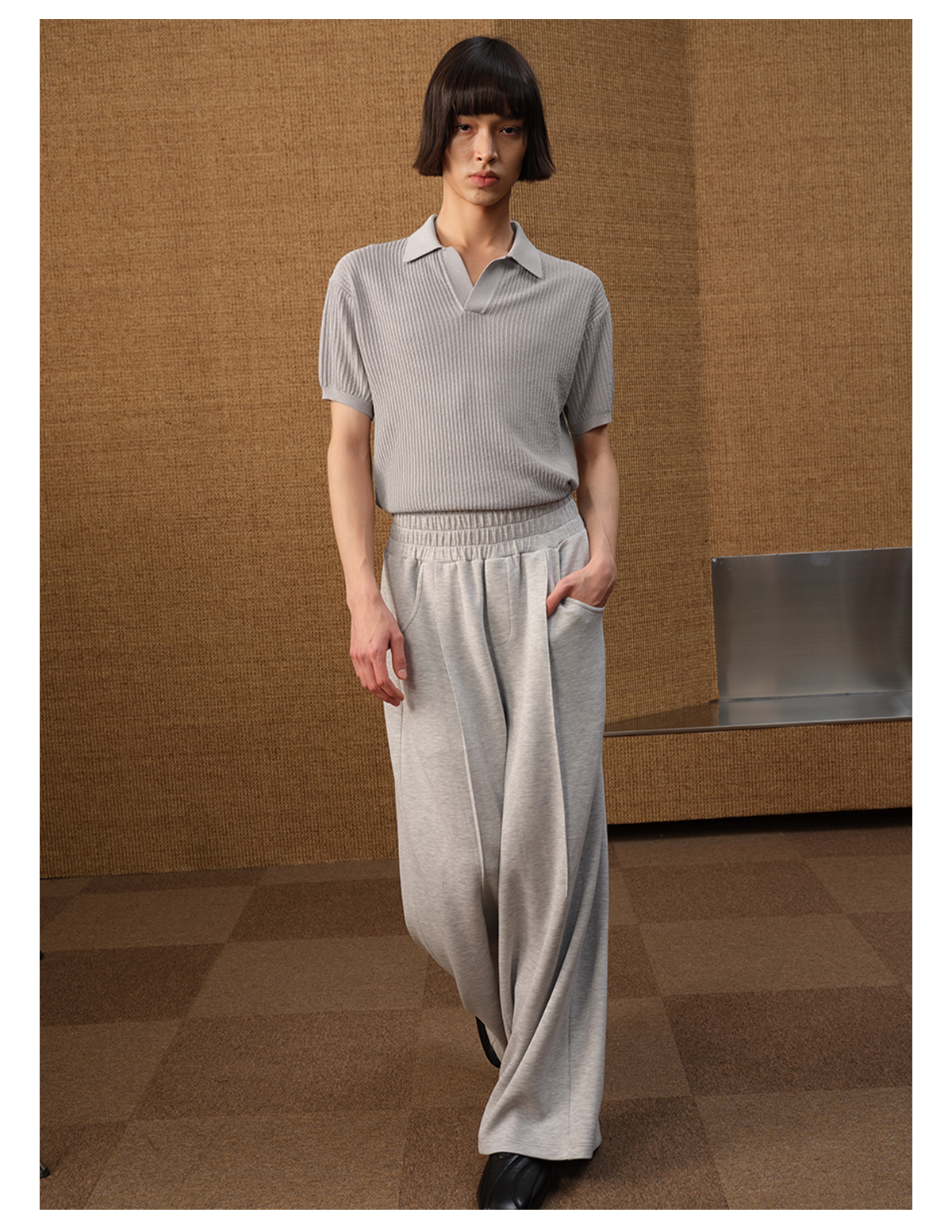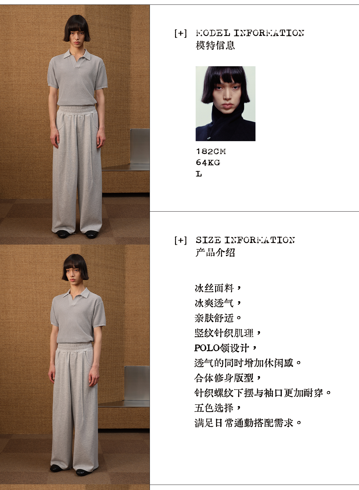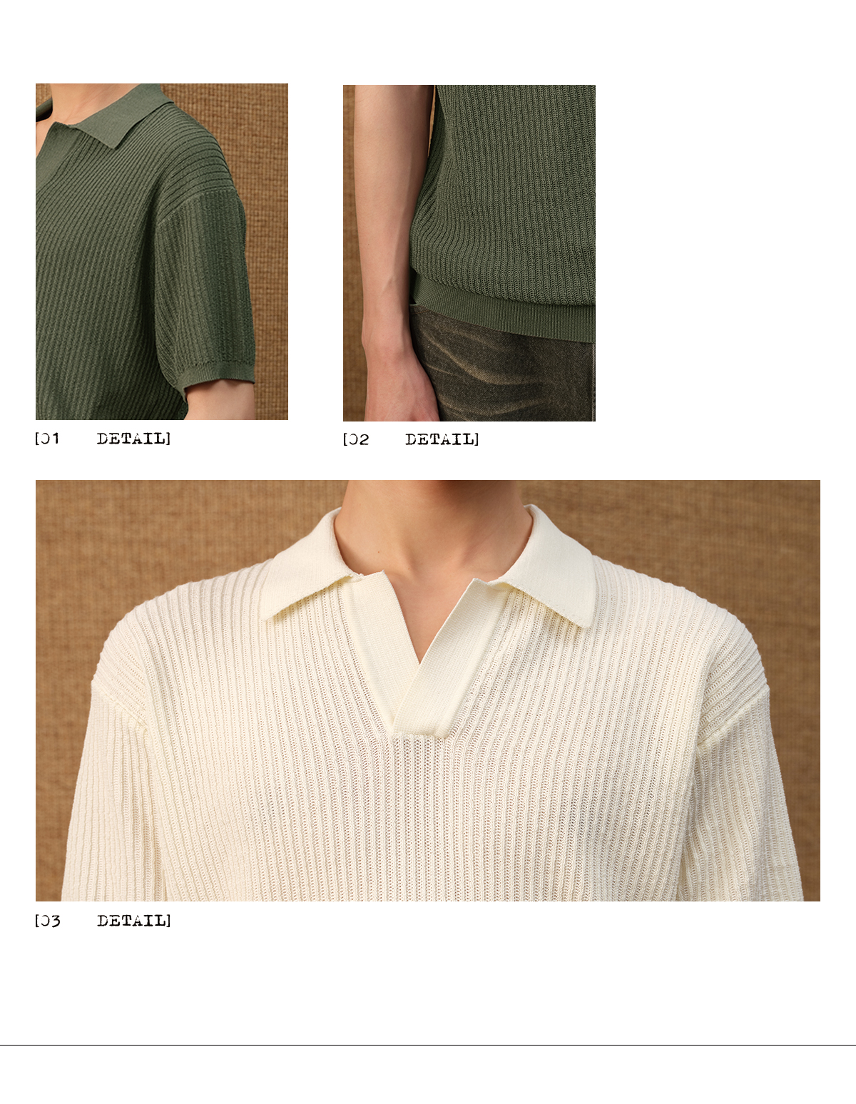Jcaesar Tee Polo Collar Ice Silk Knit Short-Sleeve Vertical Stripe Texture Fitted Slim Fit Ribbed Hem and Cuffs