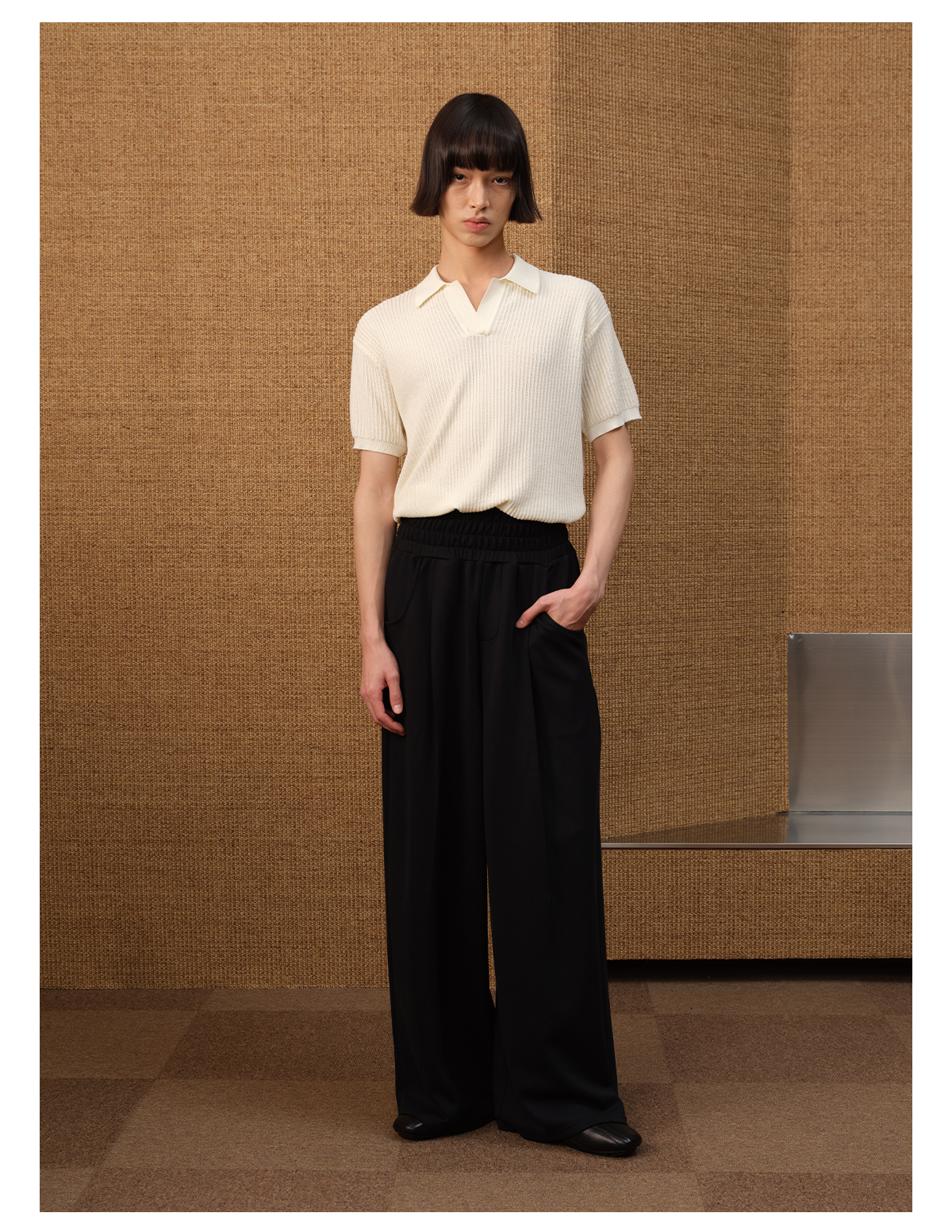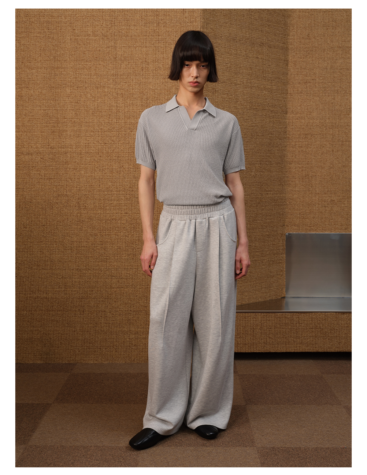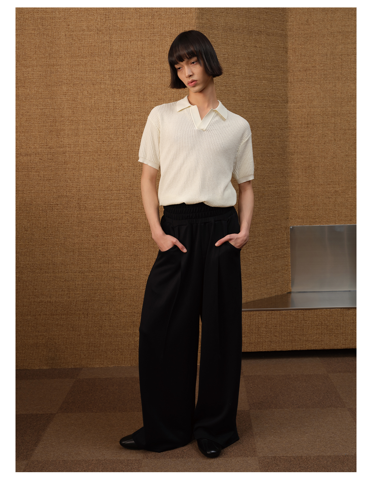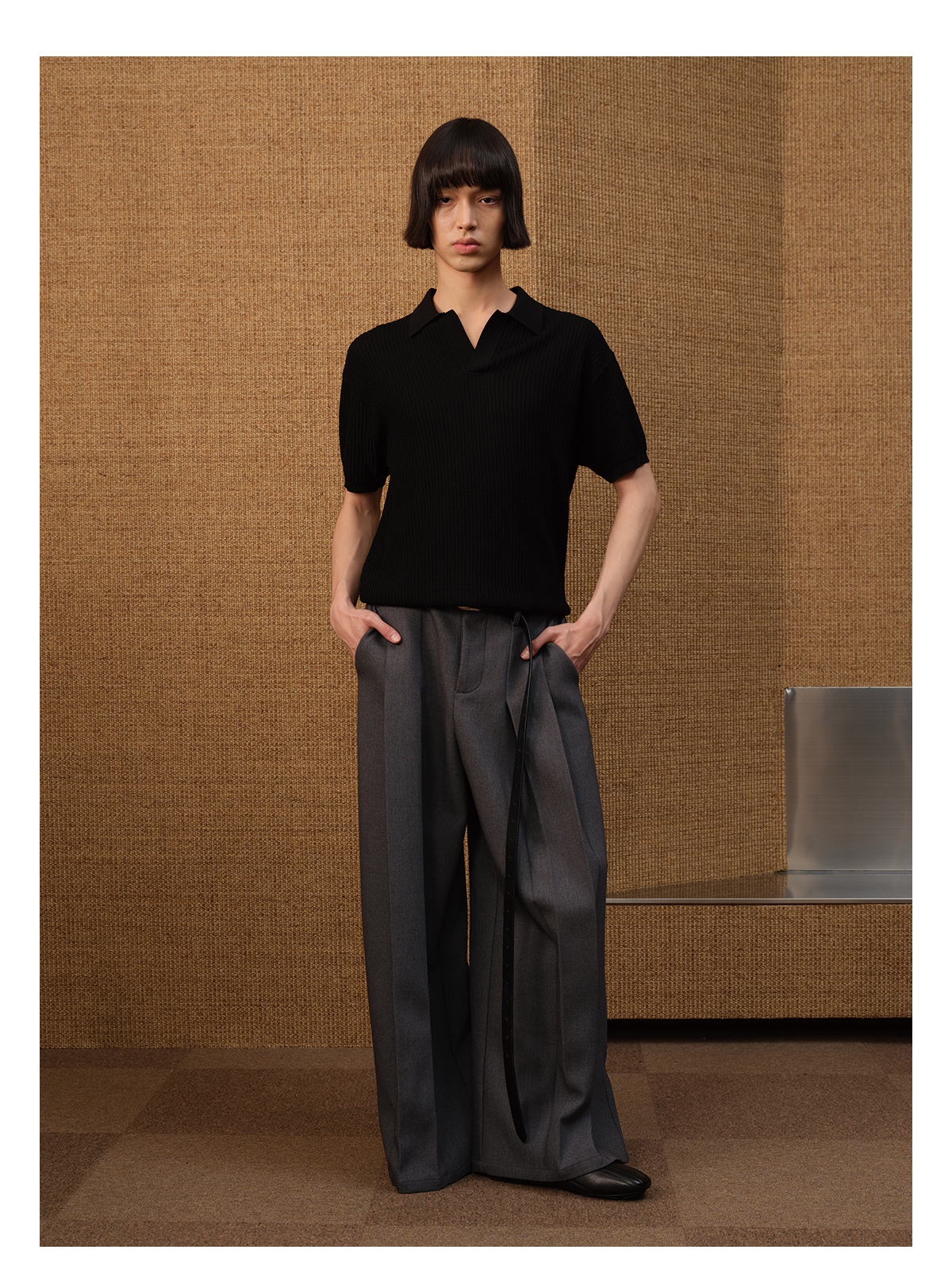 Jcaesar Tee Polo Collar Ice Silk Knit Short-Sleeve Vertical Stripe Texture Fitted Slim Fit Ribbed Hem and Cuffs
