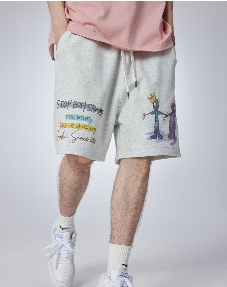 Guuka Gray Heavyweight Shorts for Men, New Summer Mid-Length Pants, Youth American-Style Five-Point Pants, Loose-Fitting Sports Pants