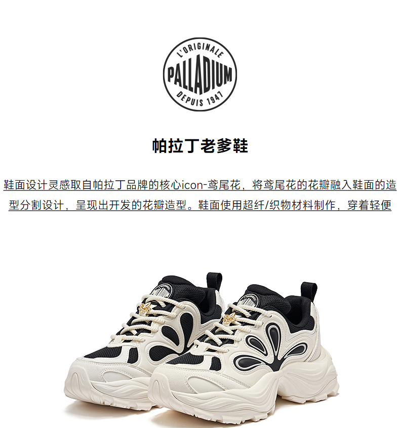 Palladium Thick-Soled Dad Shoes for Women, Height-Increasing, Breathable, Retro Casual Petal Shoes, Men's Shoes