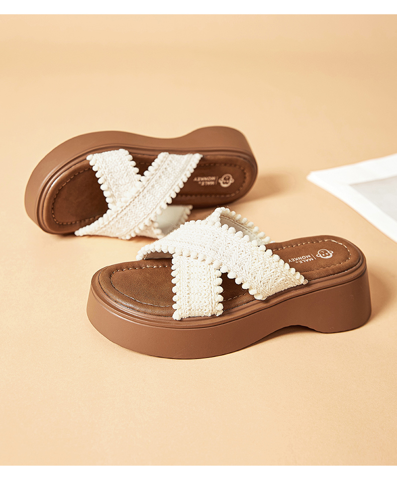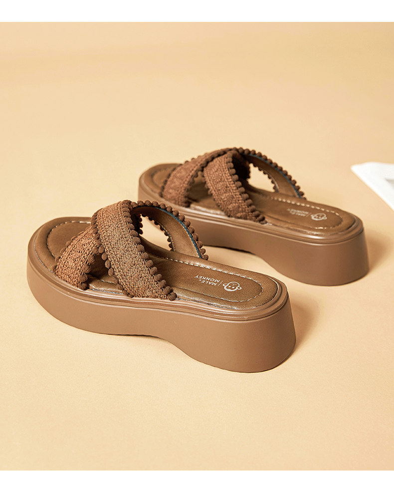Women's Summer New Thick-Soled Cross-Strap Sandals for Outdoor Wear, Beach, Petite Height-Increasing, Retro Casual Sandals