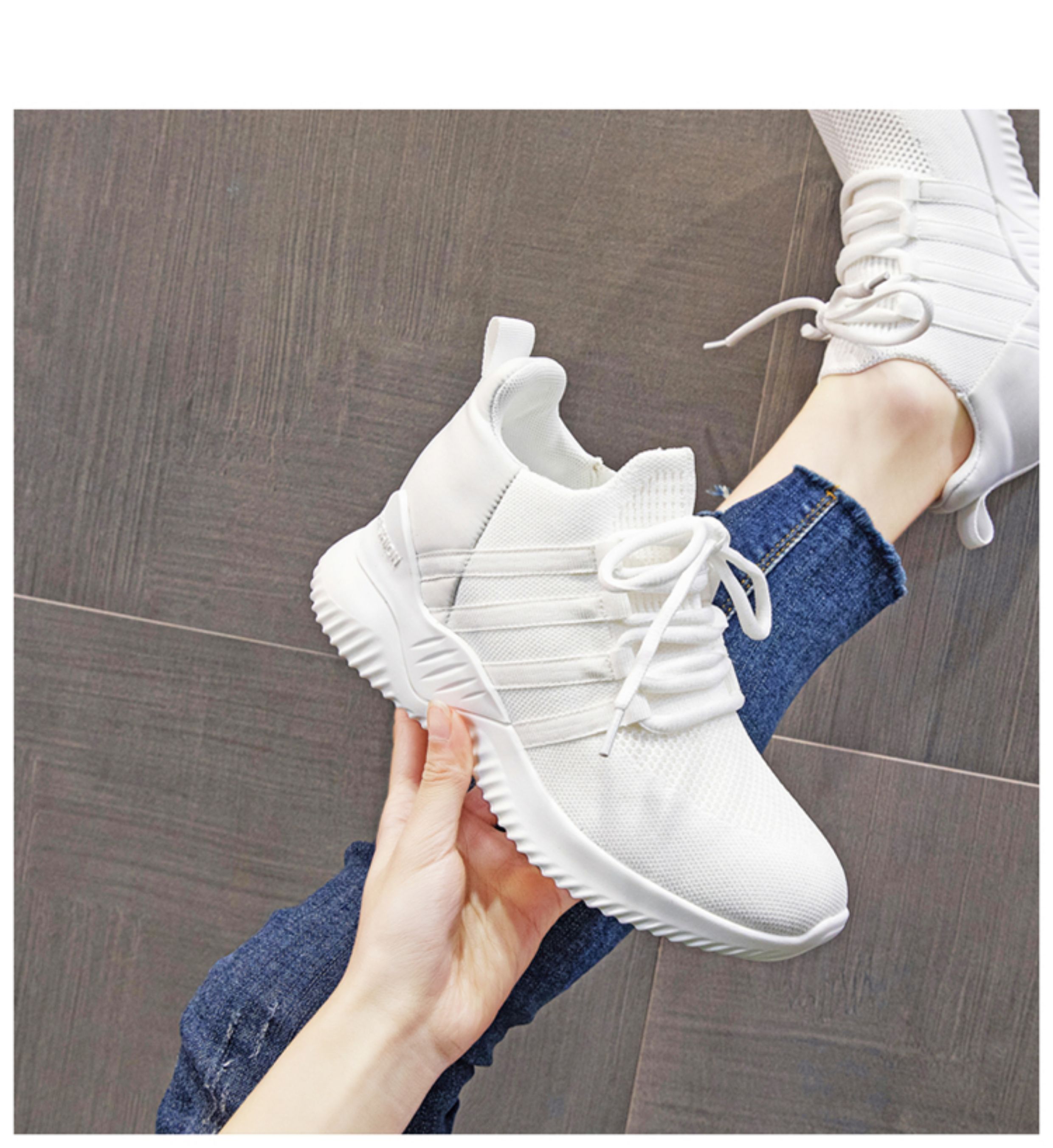Hong Kong Style Height-Increasing White Sneakers for Women 2025 Spring and Autumn New Mesh Breathable Versatile Lightweight Sports Casual Running Shoes