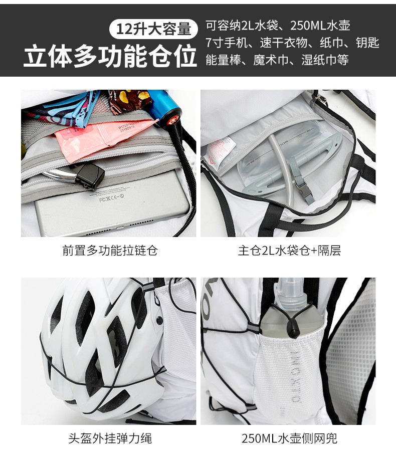 12L Cycling Backpack, Marathon Cross-Country Running Bag, Men's and Women's Outdoor Quick-Drying Mountaineering Hiking Bag, Water Bag, Sports Bag