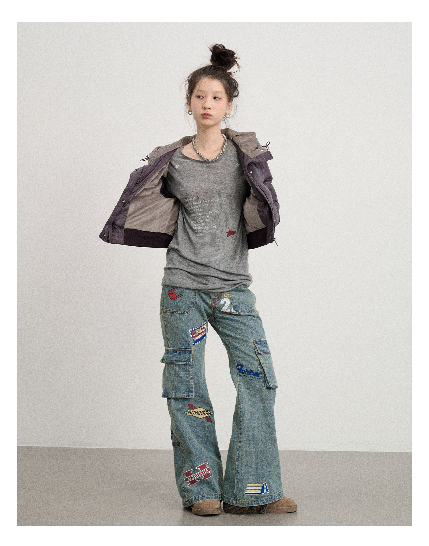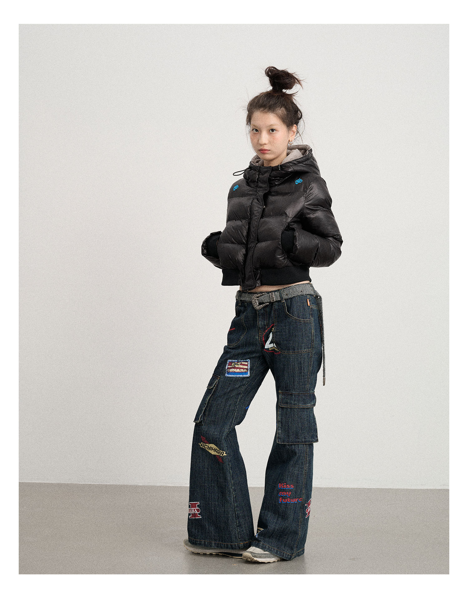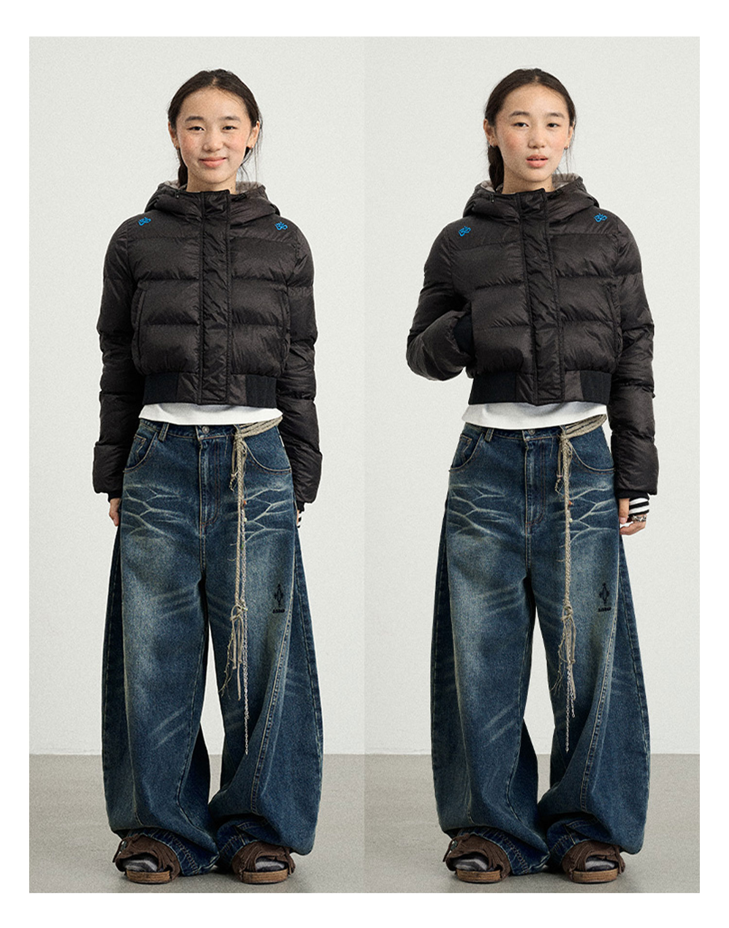 Achihara【Double Shoulder Embroidery】Winter Jacket 2025 New Short Black Winter Cotton Coat Om Cotton Clothing for Women