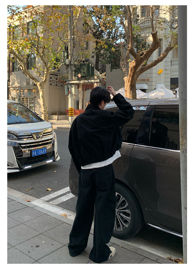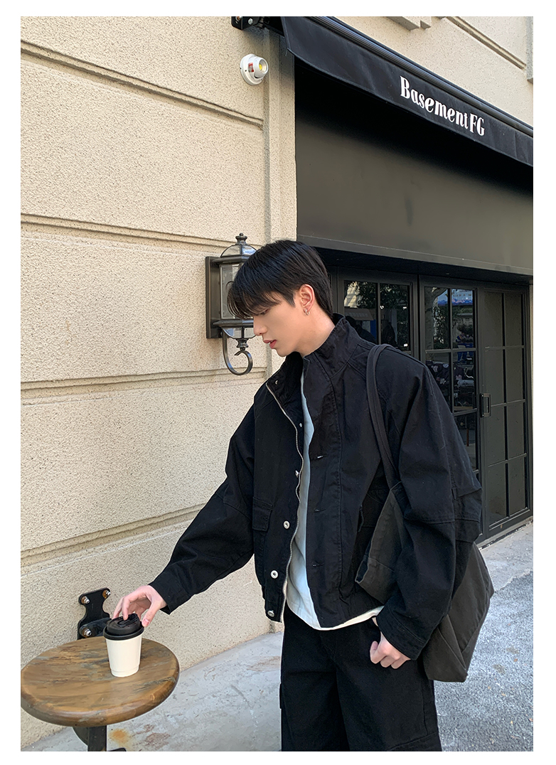 Onelyc1Ns Stand-Up Collar Large Pocket Workwear Casual Suit for Men, Spring Stylish Loose Jacket with Wide-Leg Scimitar Pants