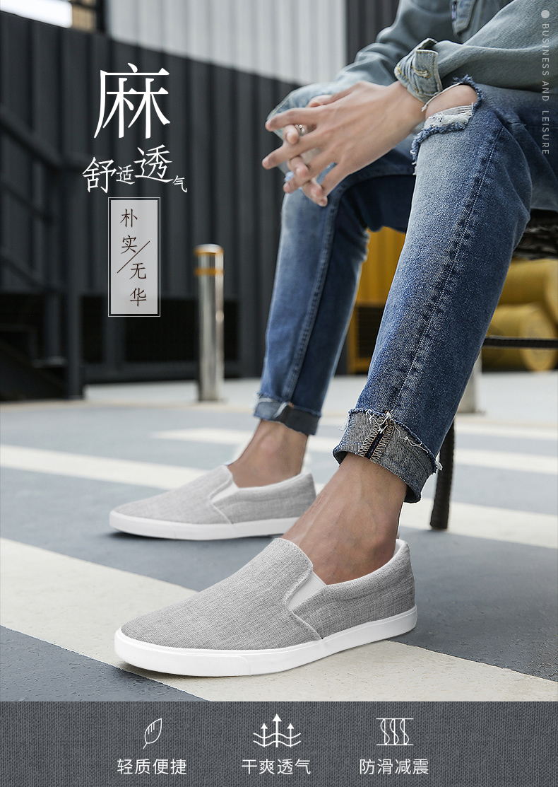 Men's Canvas Shoes, Slip-On Flat Shoes, Casual Linen Breathable Old Beijing Cloth Shoes, Men's Summer Shoes for Driving