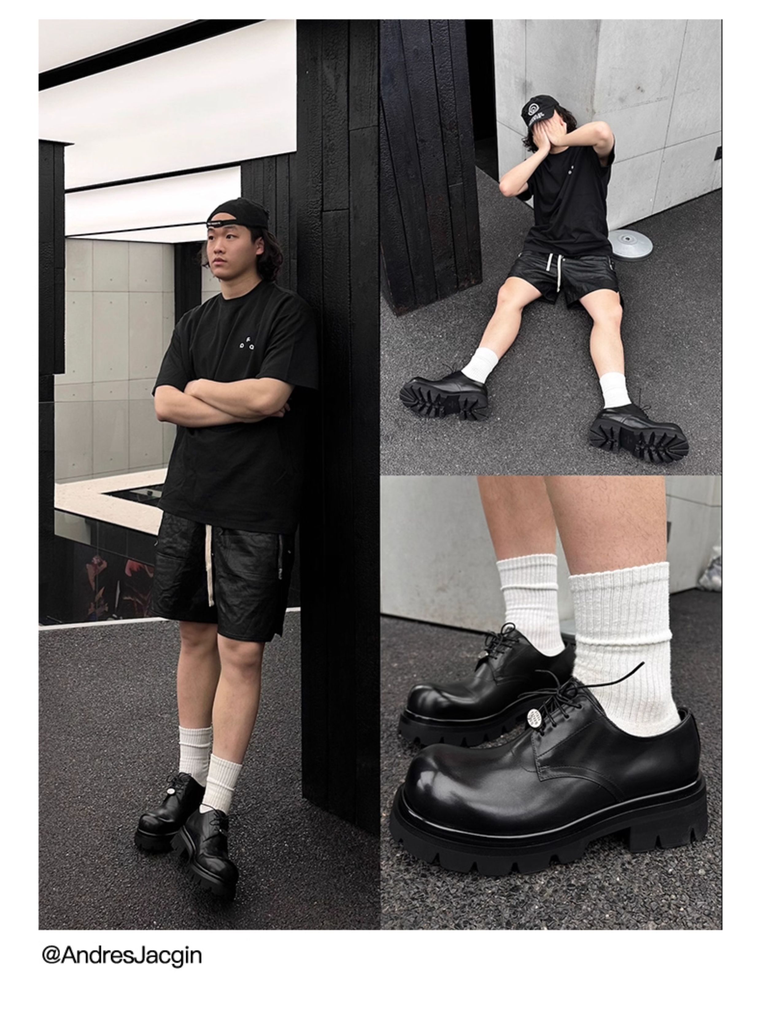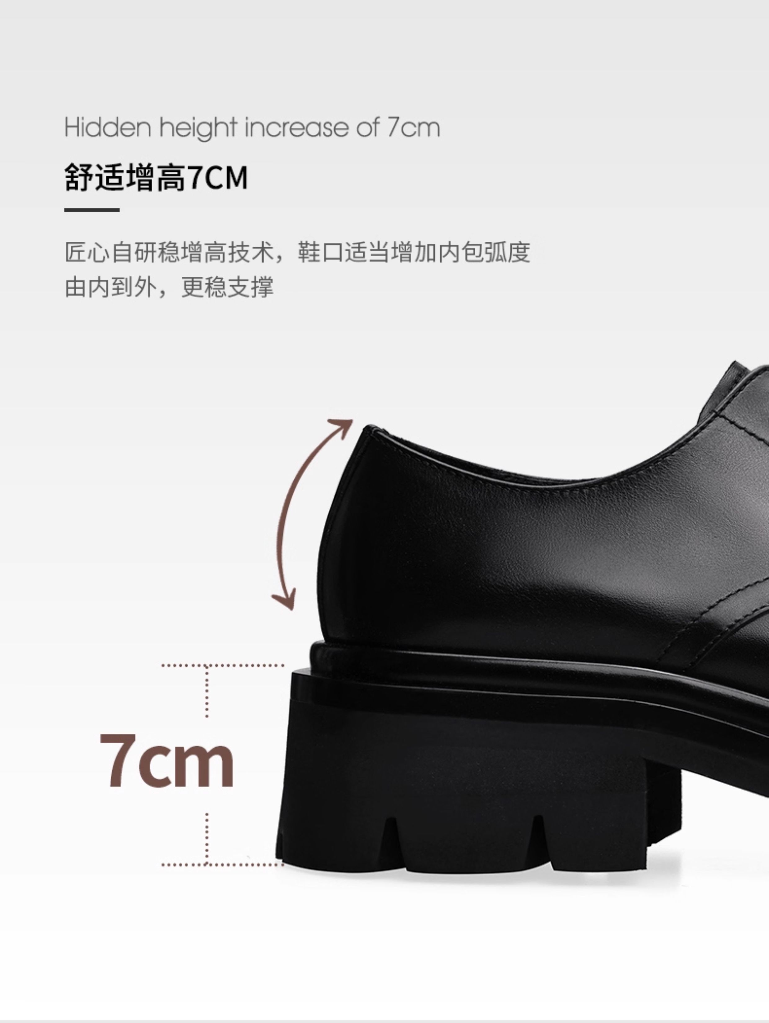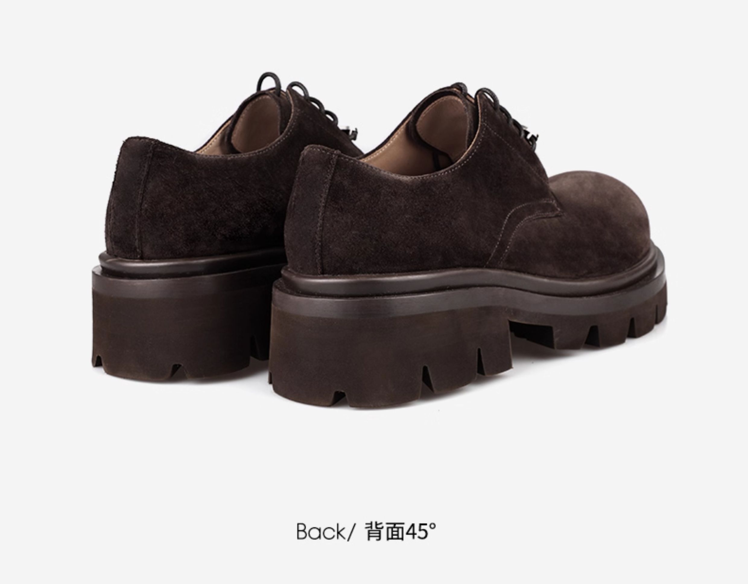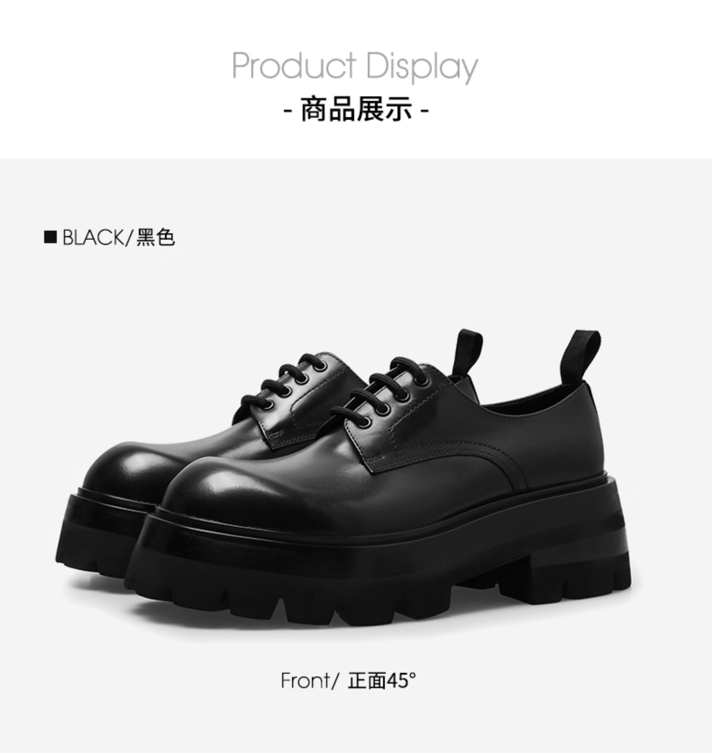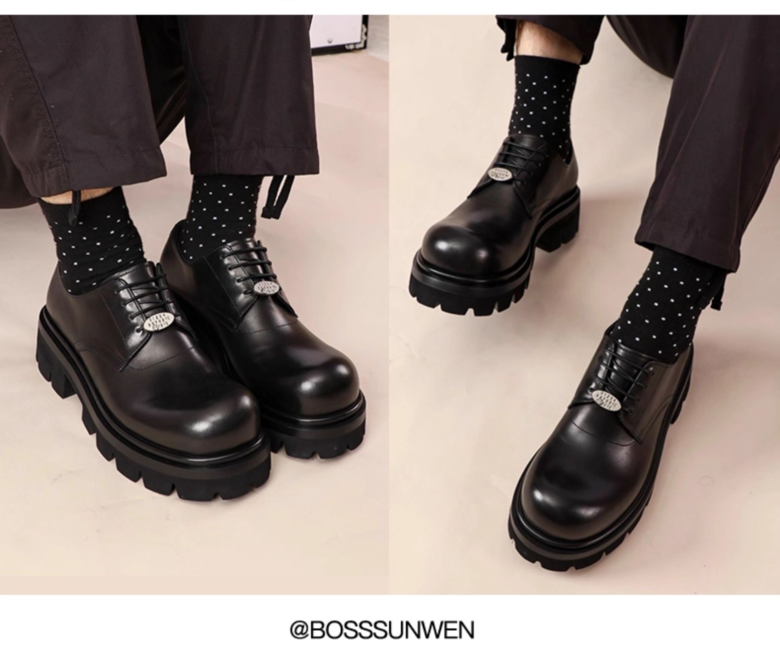 [Same Style as Wang Jiaer/Zhou Shen] Bosssunwen Autumn and Winter Derby Shoes Men's Leather Shoes Trendy Height-Increasing Big-Toe Shoes