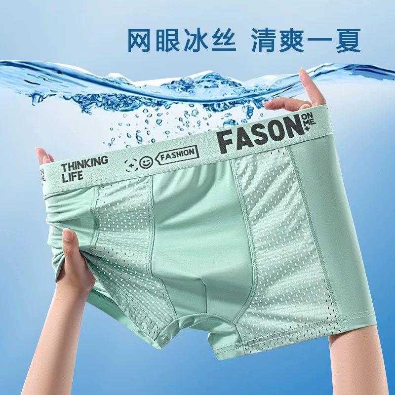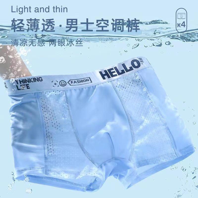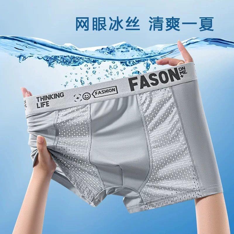 Ice Silk Cooling Boxer Briefs Graphene Antibacterial Hollow Breathable Sports Shorts Comfortable Soft Boxer Shorts