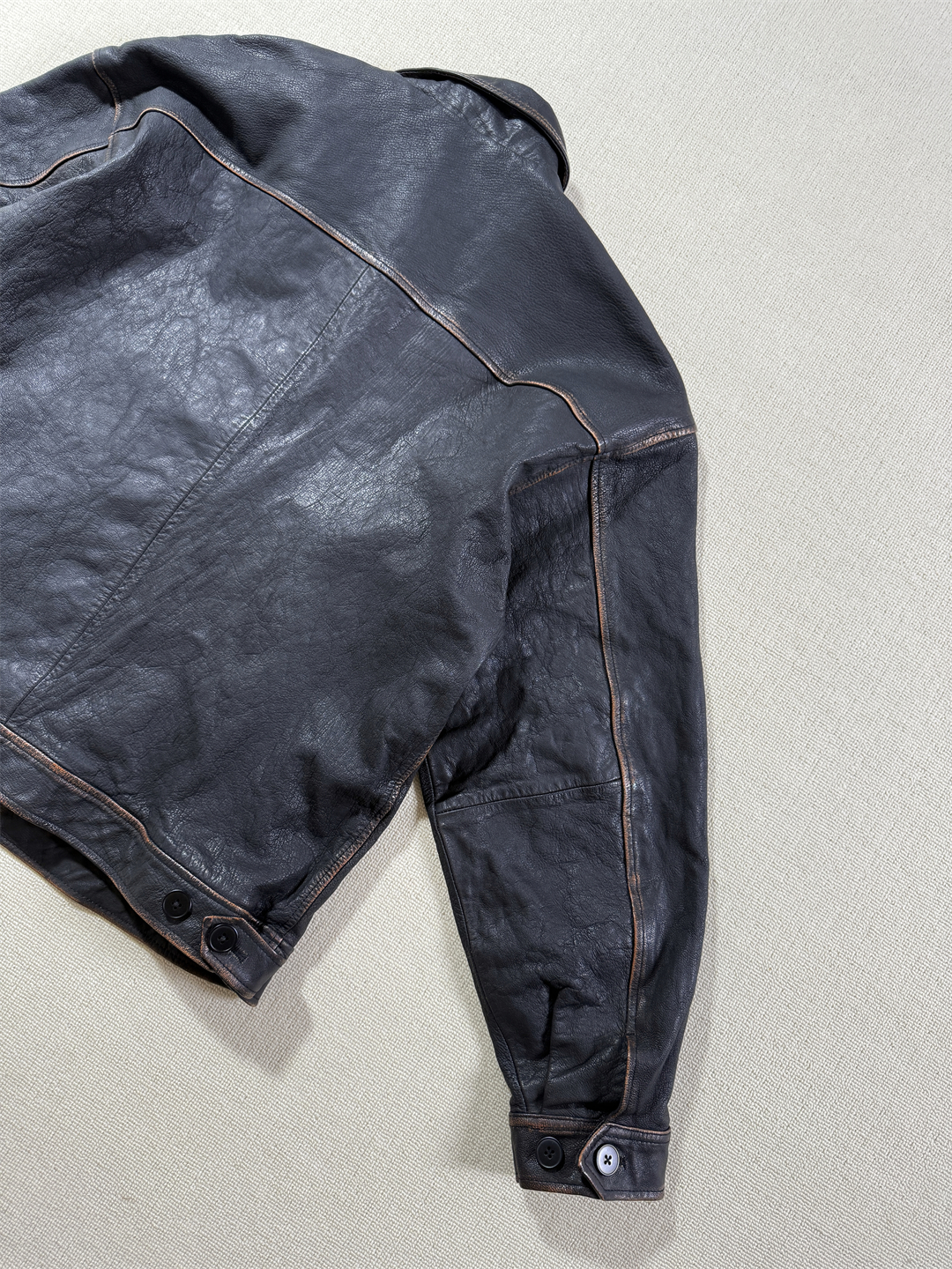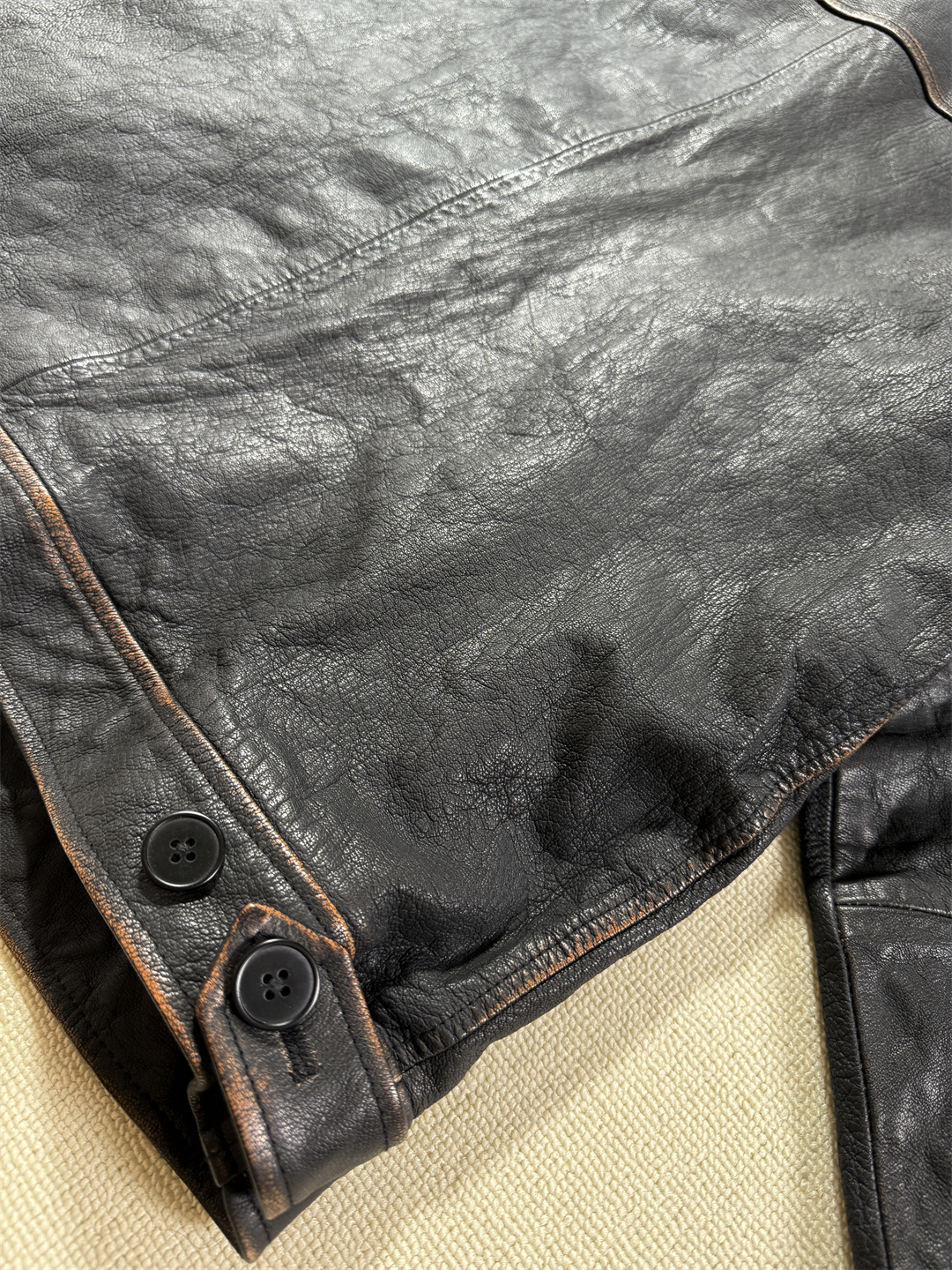 Japanese Order Bms 24Aw Used Zip Leather Jkt Vintage Distressed Vegetable-Tanned Sheepskin Zipper Leather Jacket