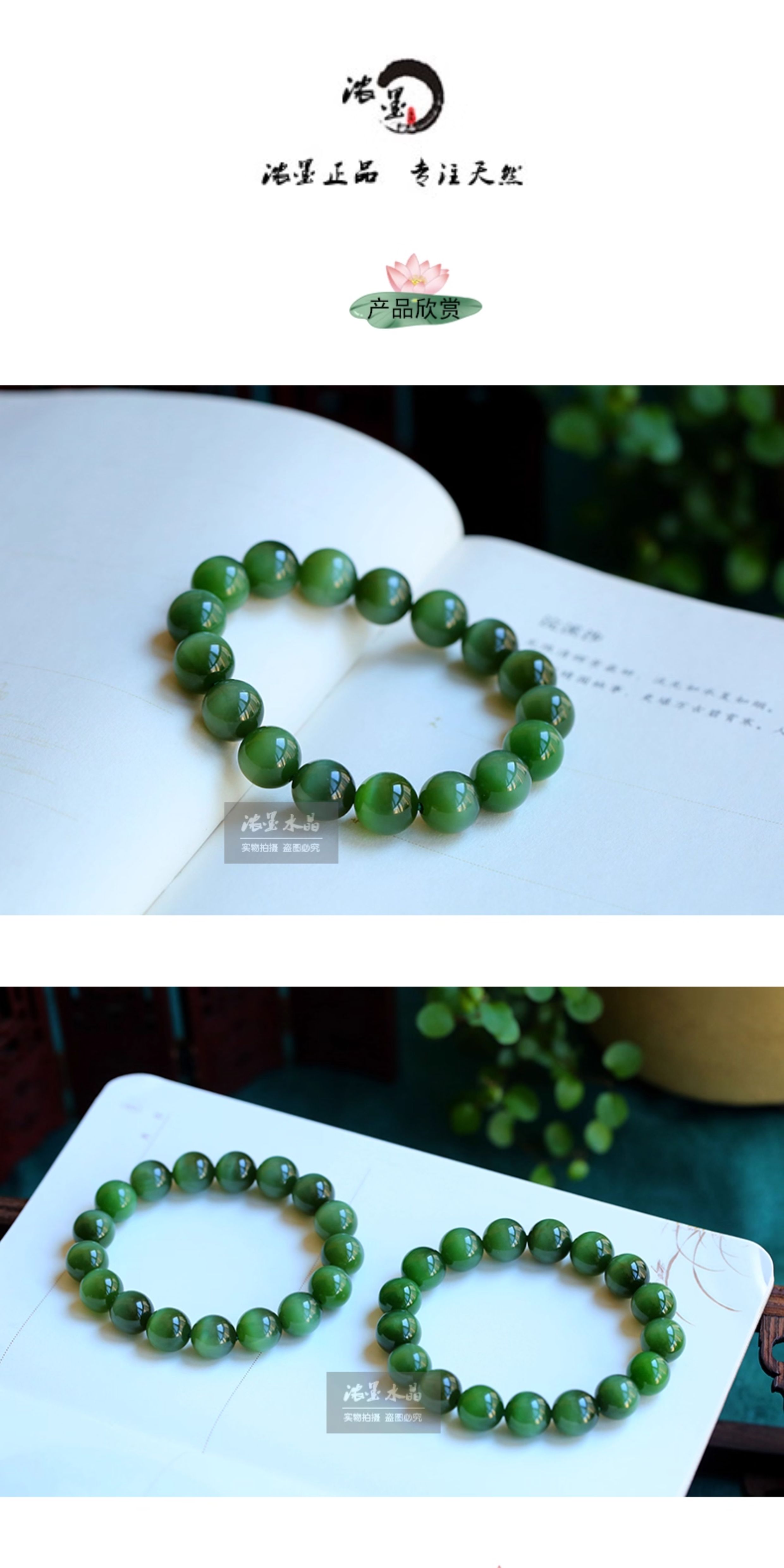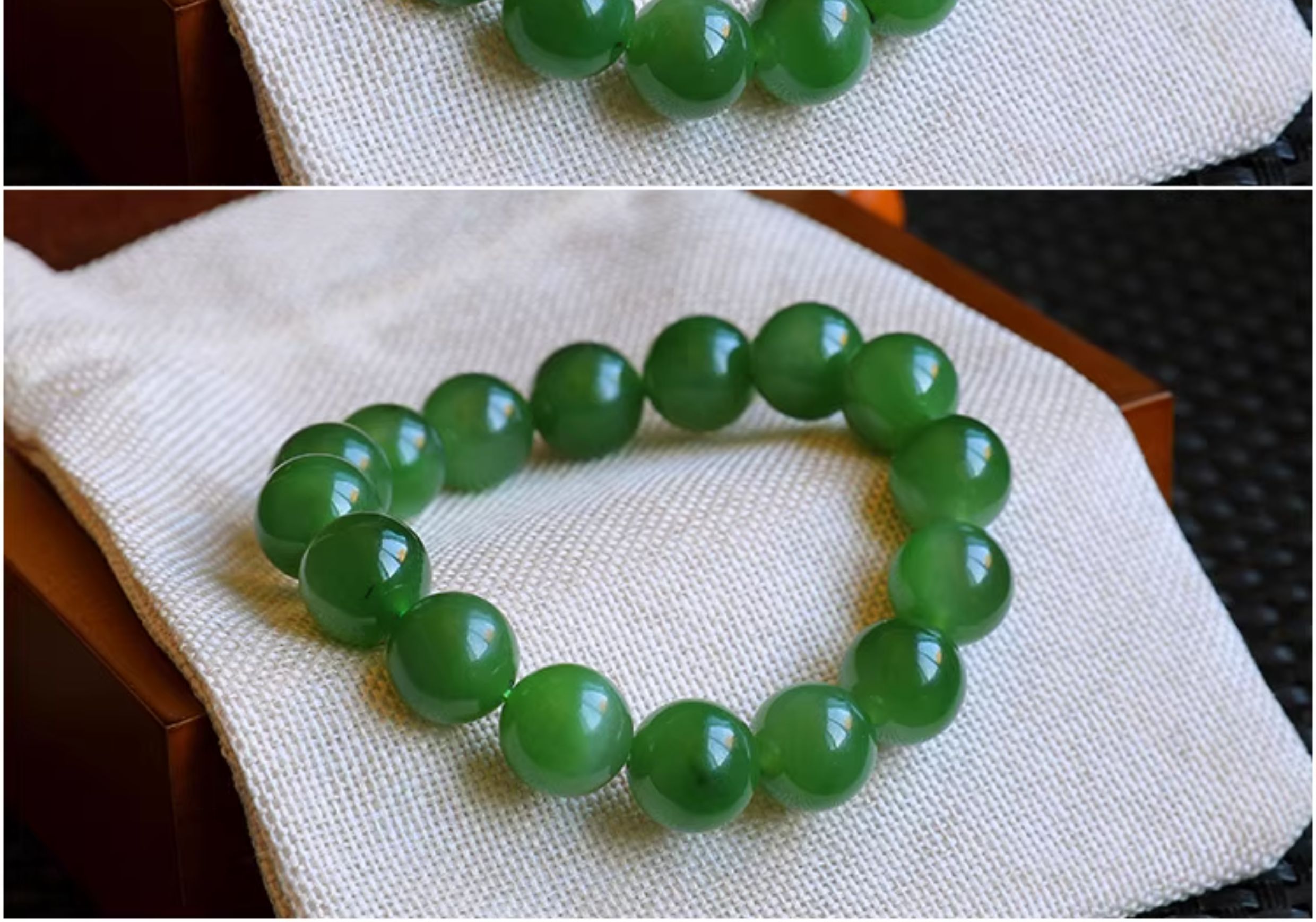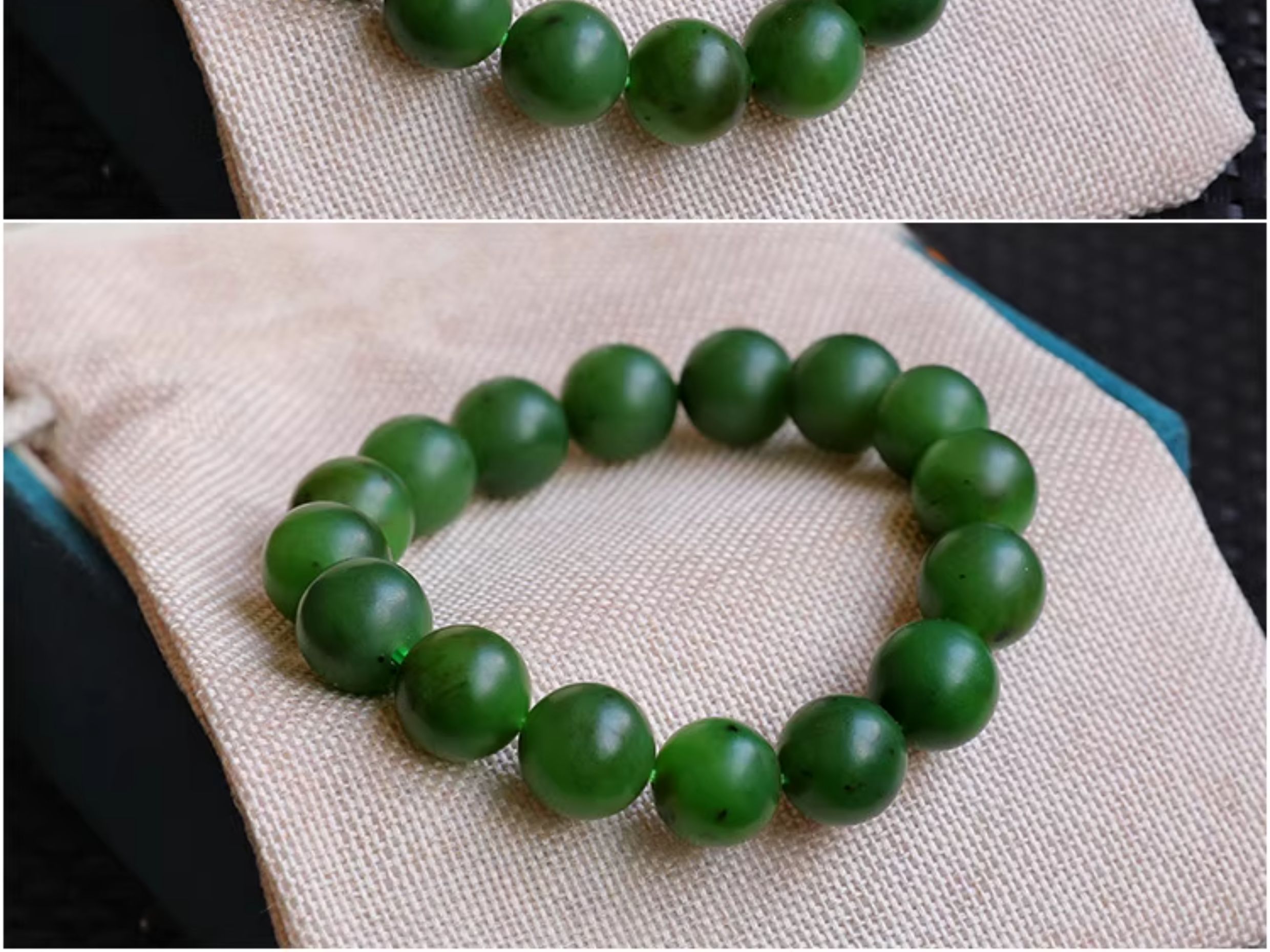 Intense Ink Natural Jade Bracelet, Hetian Jade Bracelet, Russian Spinach Green Cat's Eye Green Crystal for Men and Women